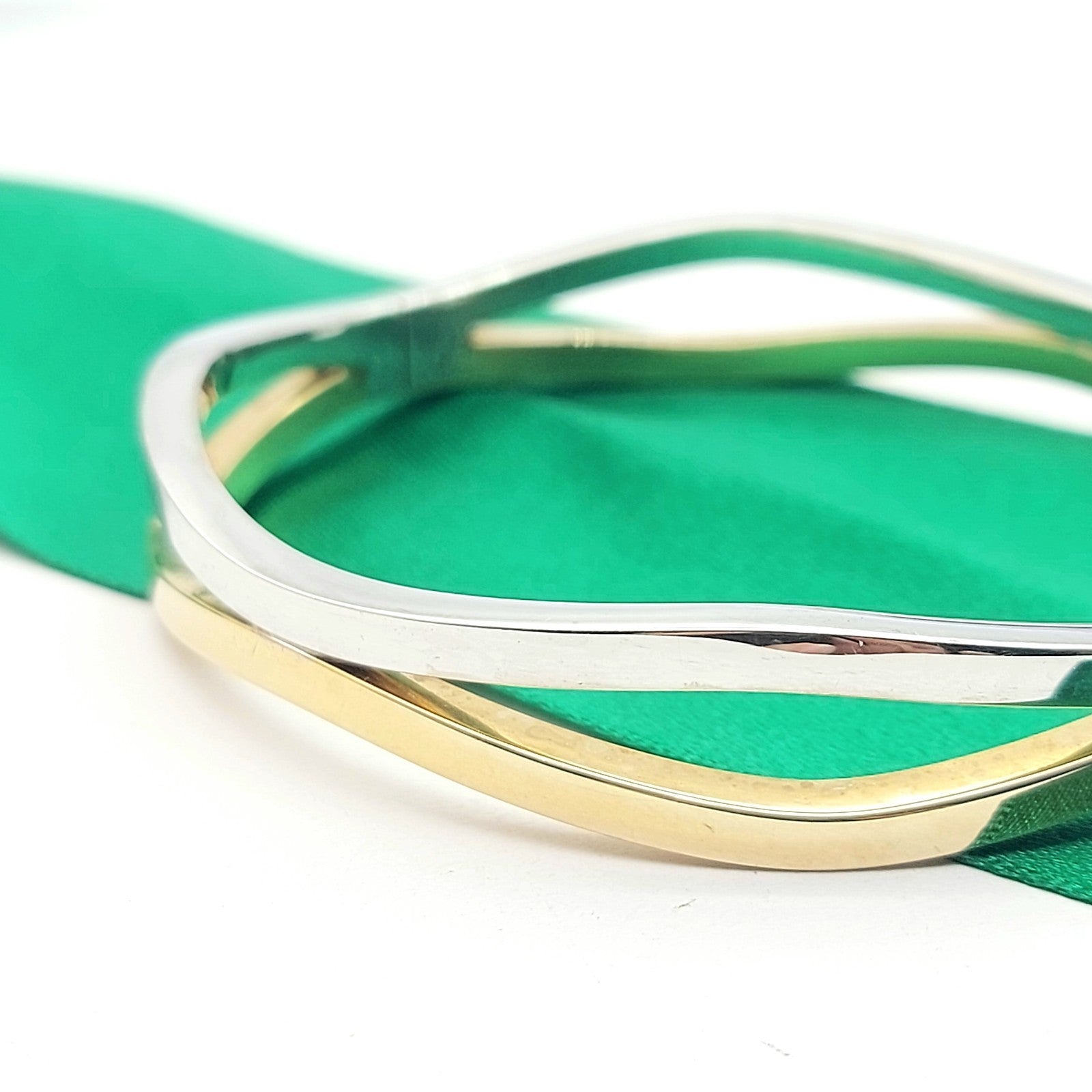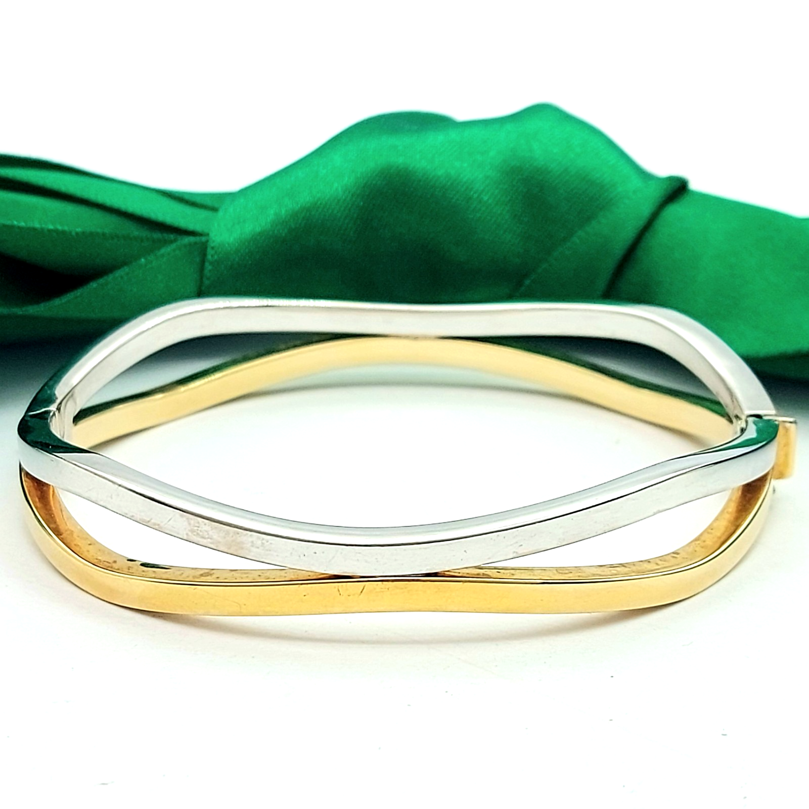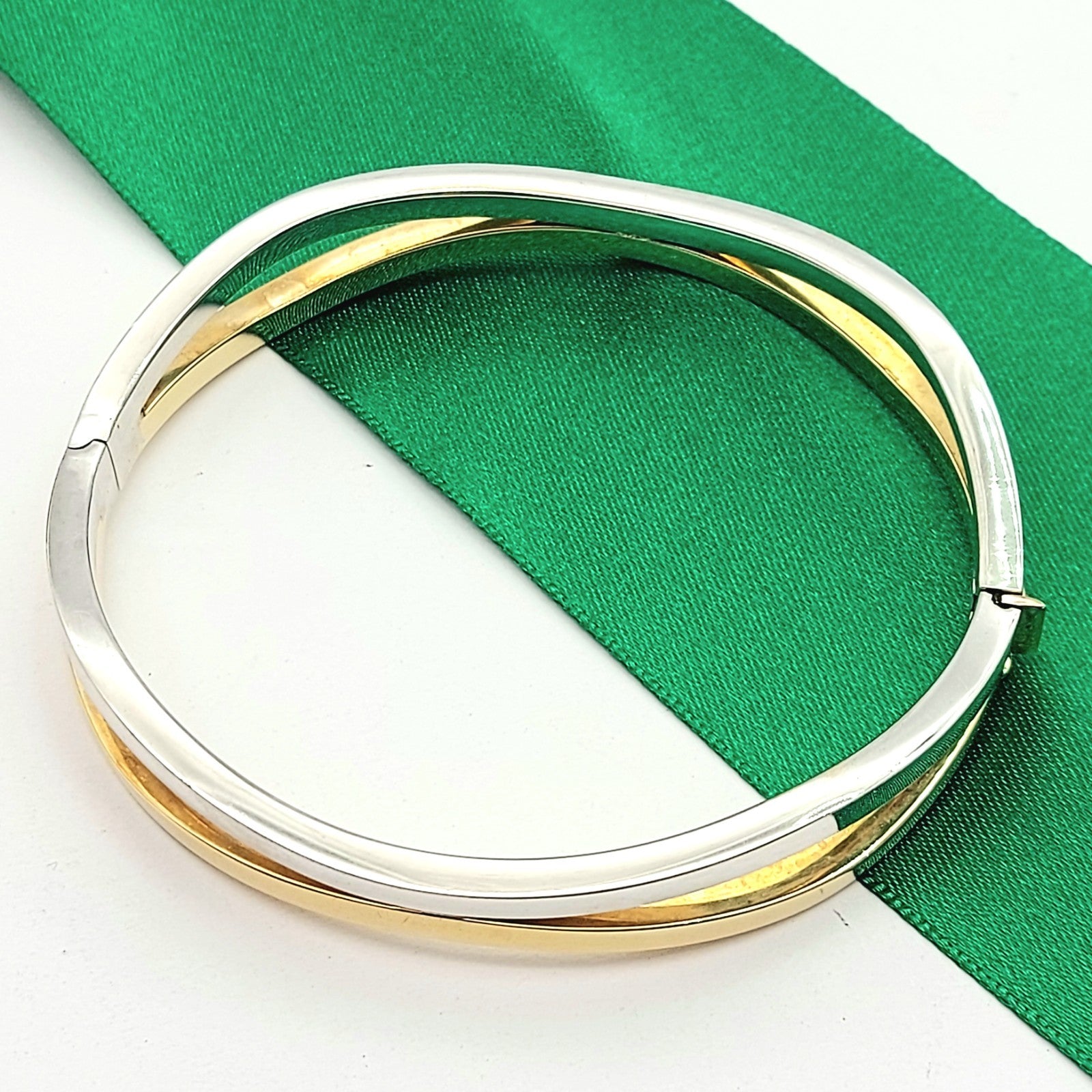 Ladies Two-Tone Gold 9ct (375, 9K) Rare Double Strand Wavy Oval Bangle