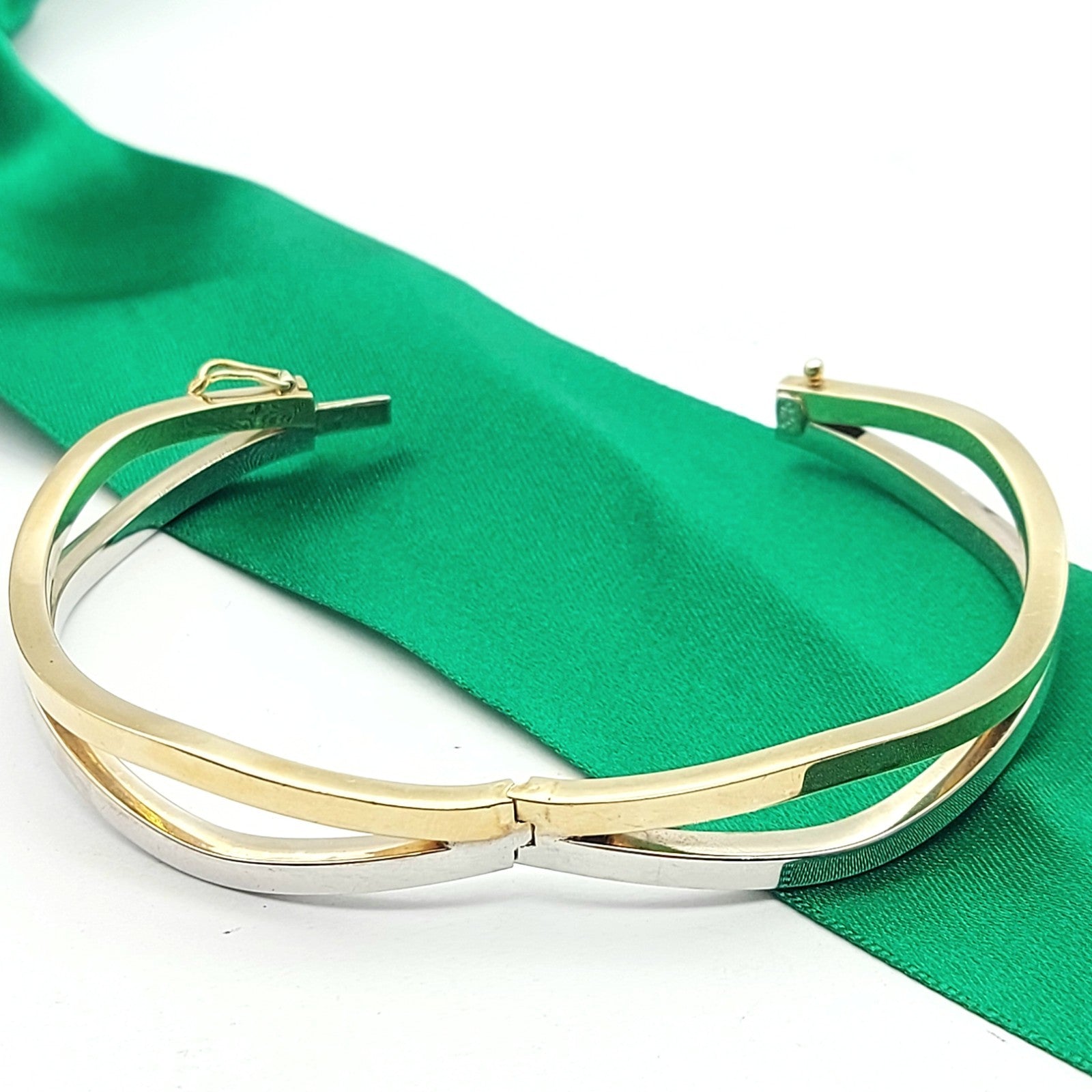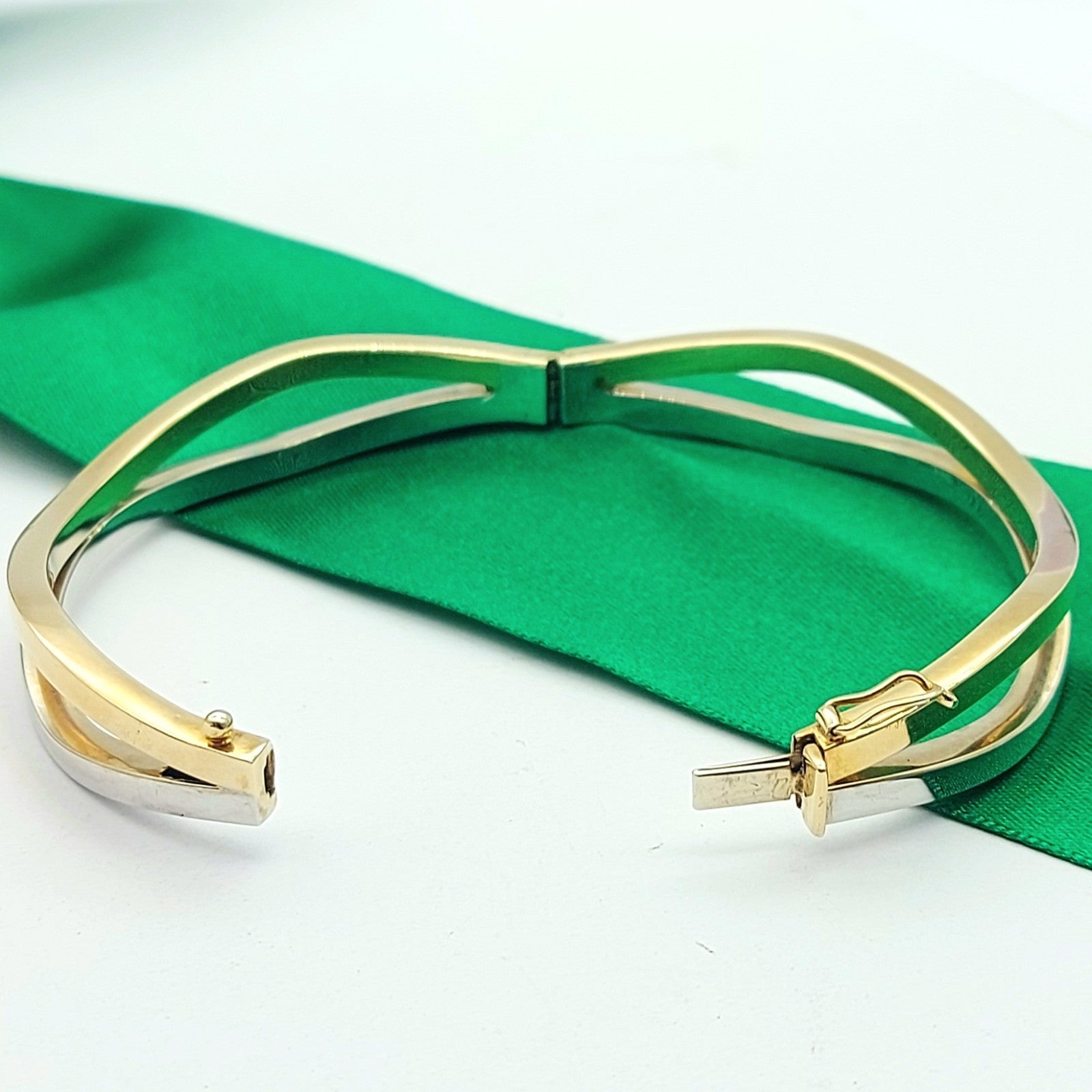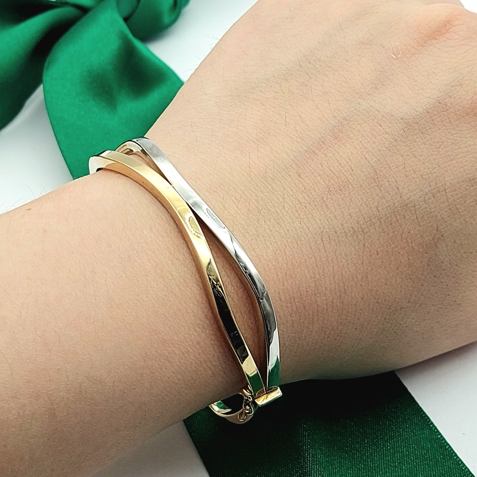 Ladies Two-Tone Gold 9ct (375, 9K) Rare Double Strand Wavy Oval Bangle