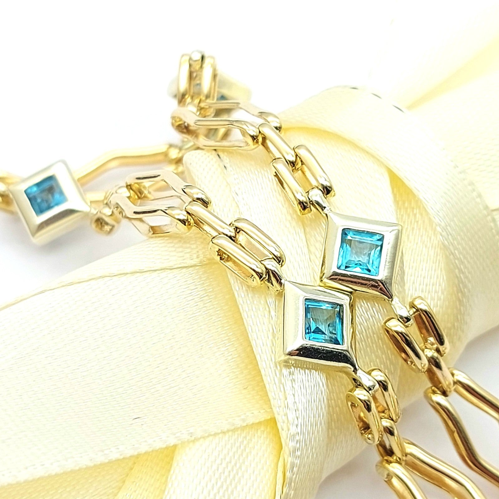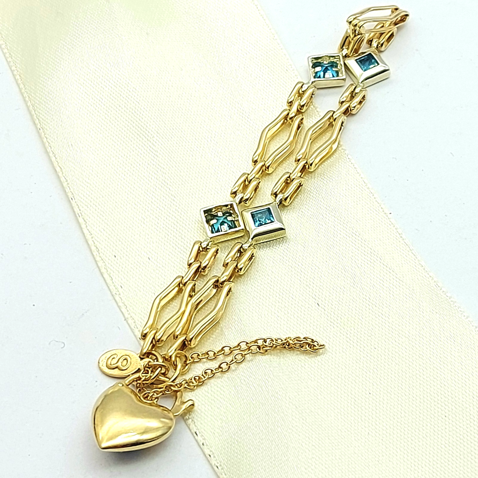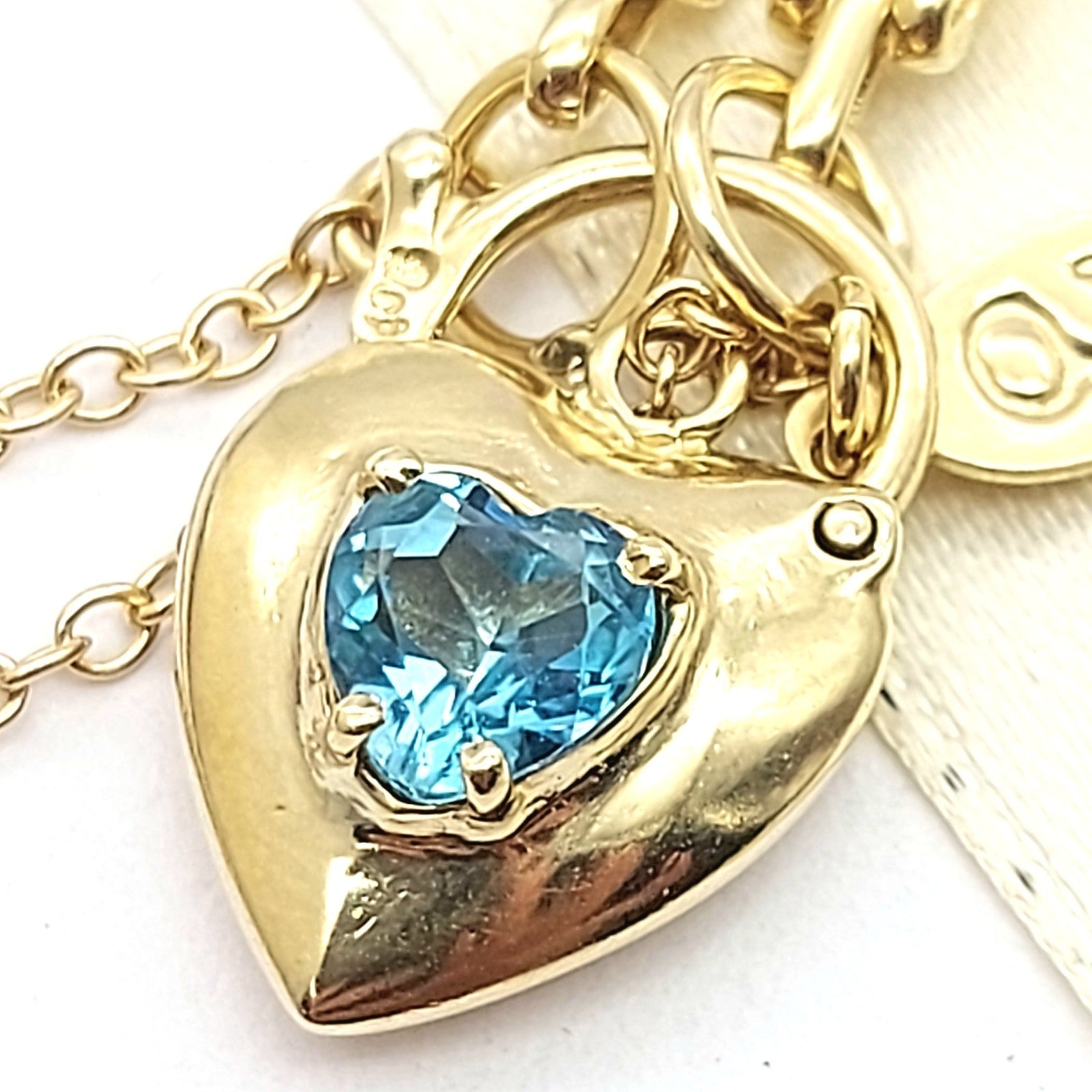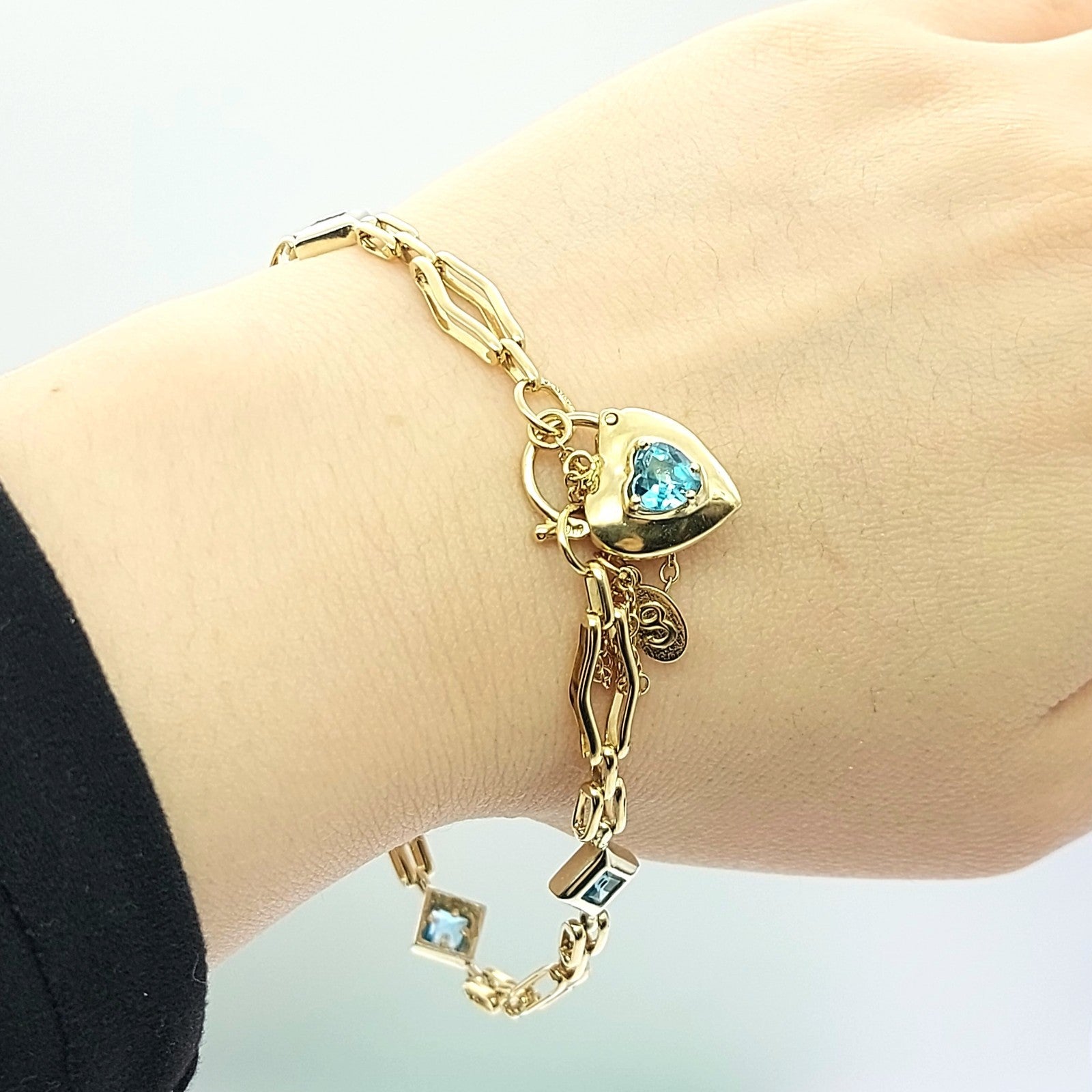 Ladies Yellow Gold 9ct (375,9K) Natural Blue Topaz Heart Padlock Square Gate Bracelet