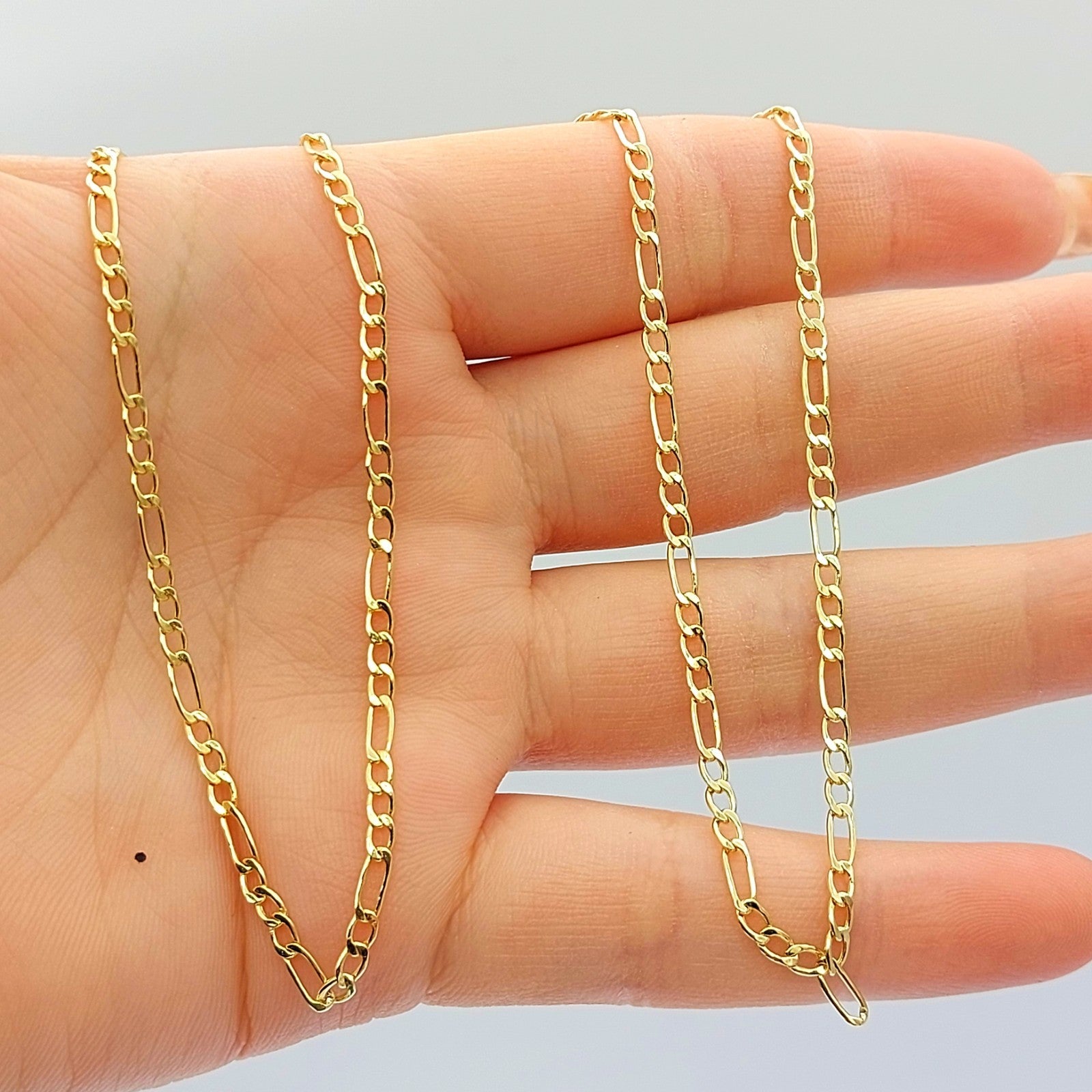 Figaro Italian Yellow Gold 9ct (375, 9k) High Quality Dainty Chain Necklace