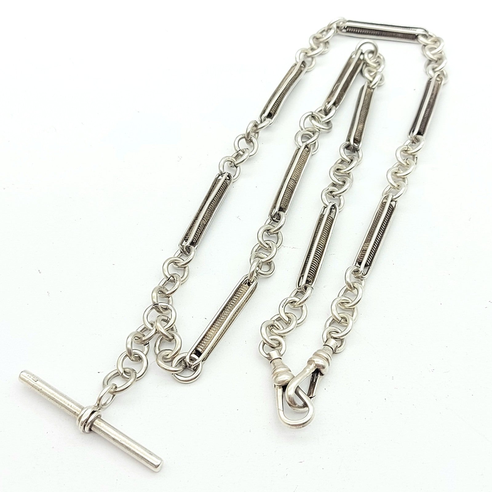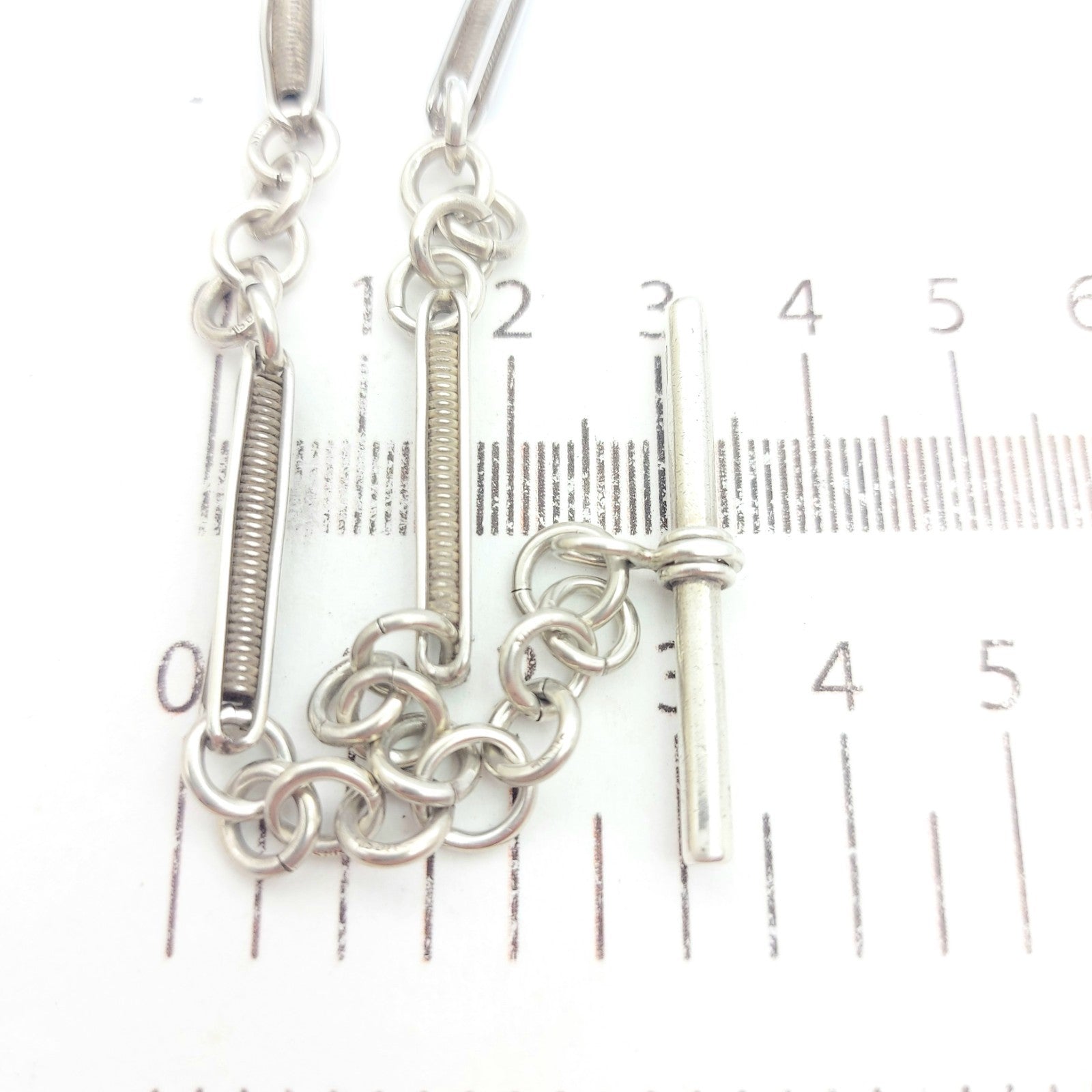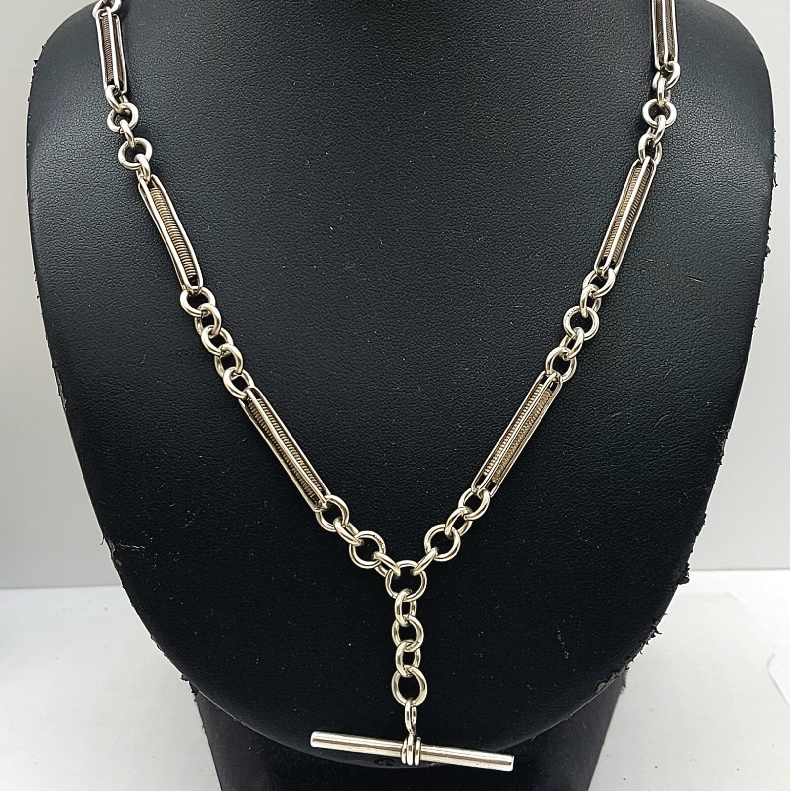 Solid Antique Sterling Silver (925) Unique Coil Link & T-Bar Chain Necklace