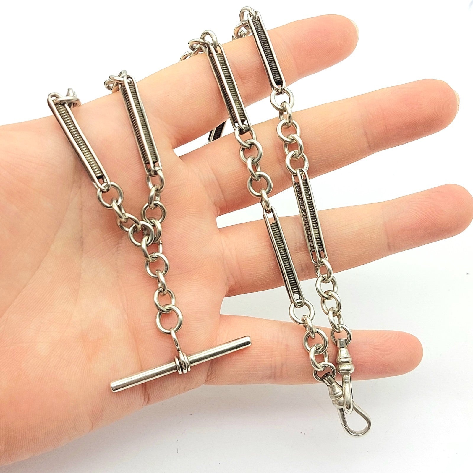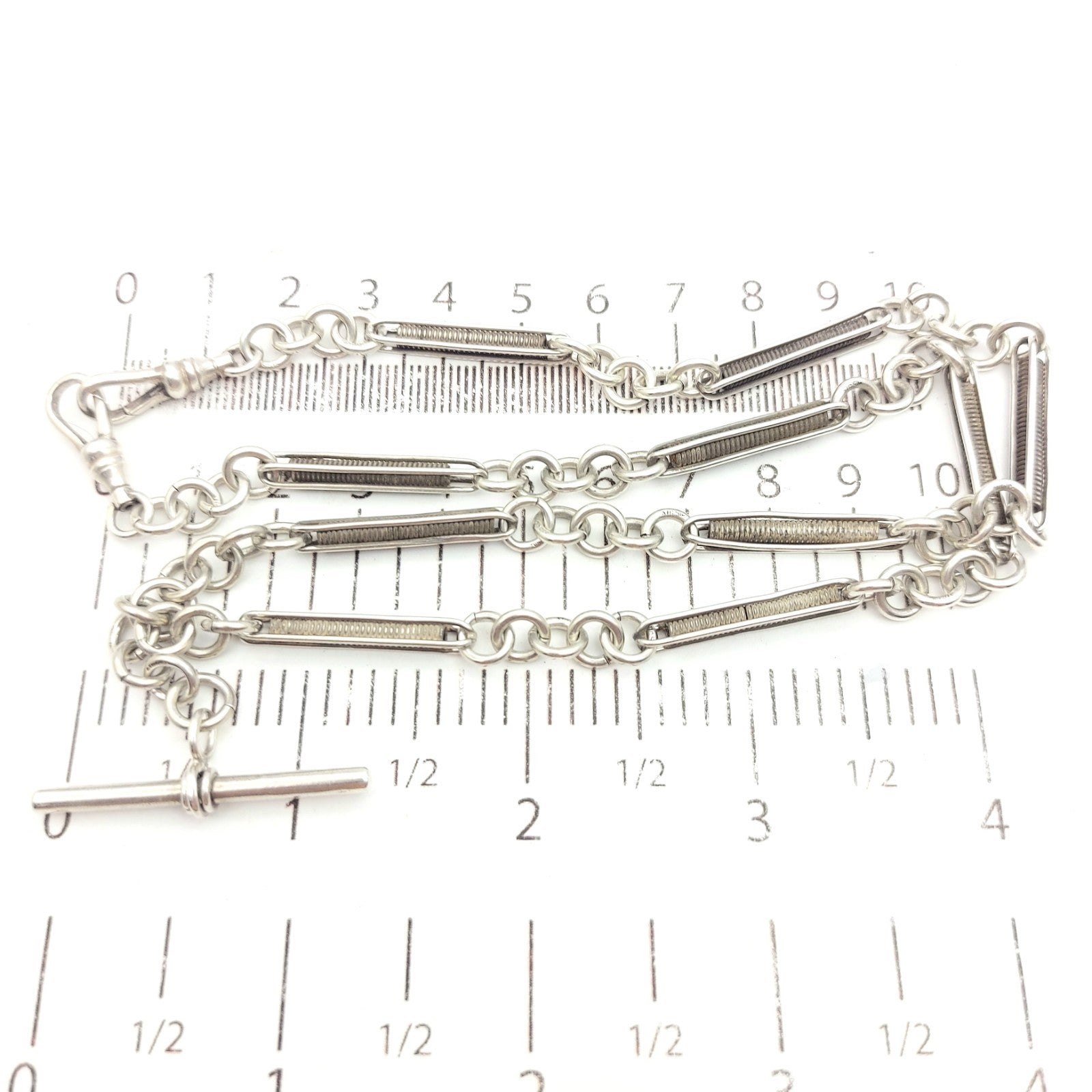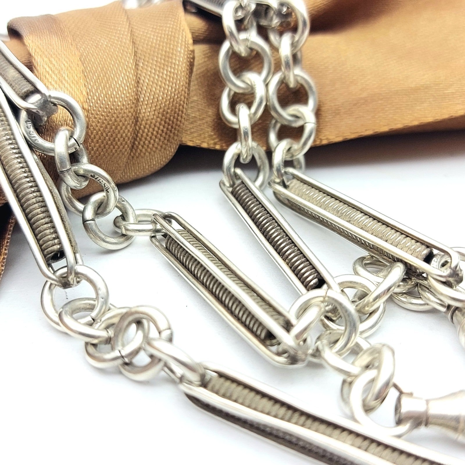 Solid Antique Sterling Silver (925) Unique Coil Link & T-Bar Chain Necklace