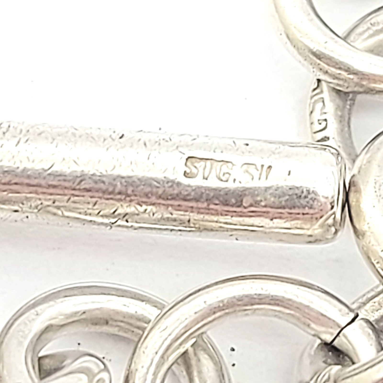 The chain is hallmarked ‘Sterling Silver’ indicating the purity of silver.