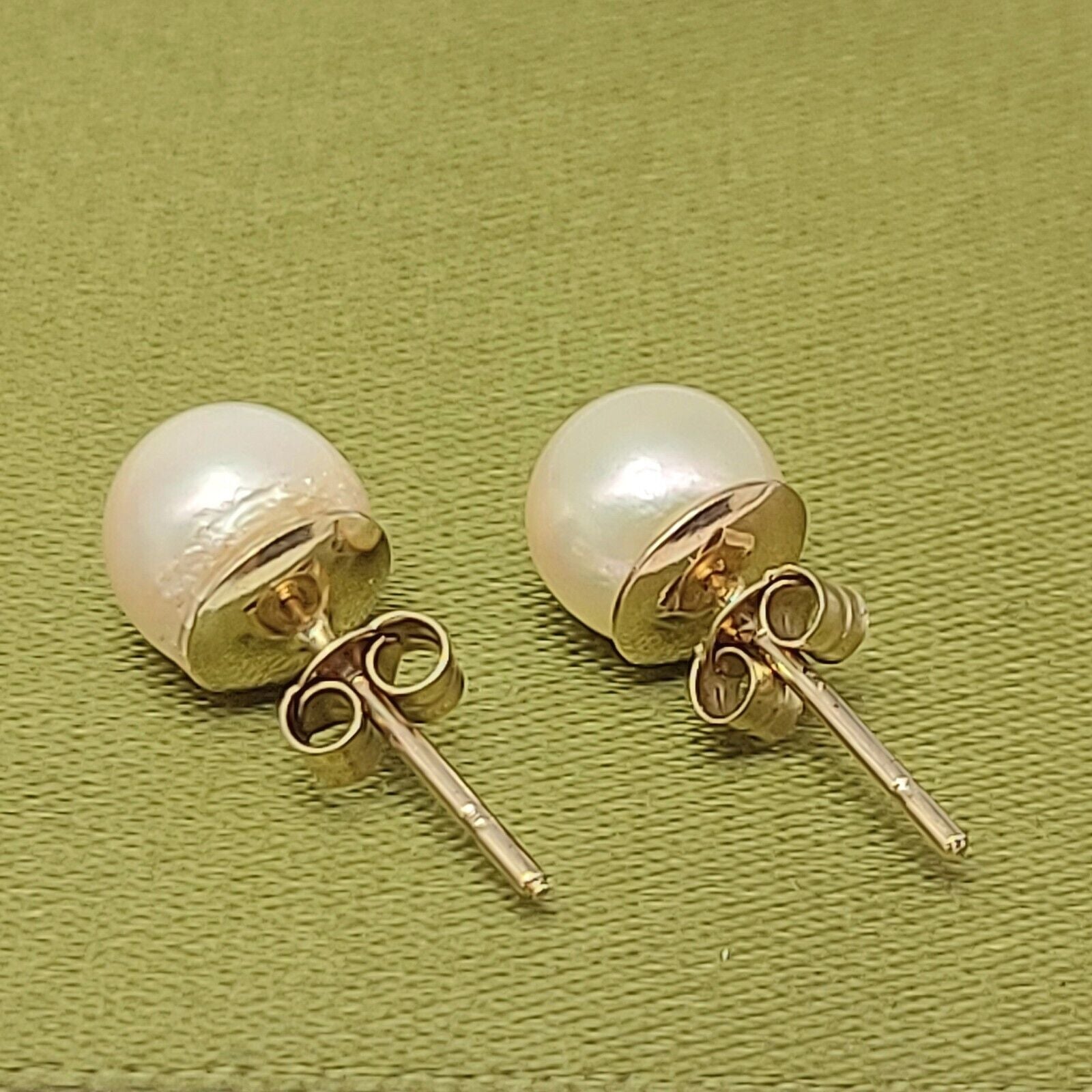 Ladies Earrings Yellow Gold 9ct (375,9k) Handmade Solitaire Natural Pearls Studs
