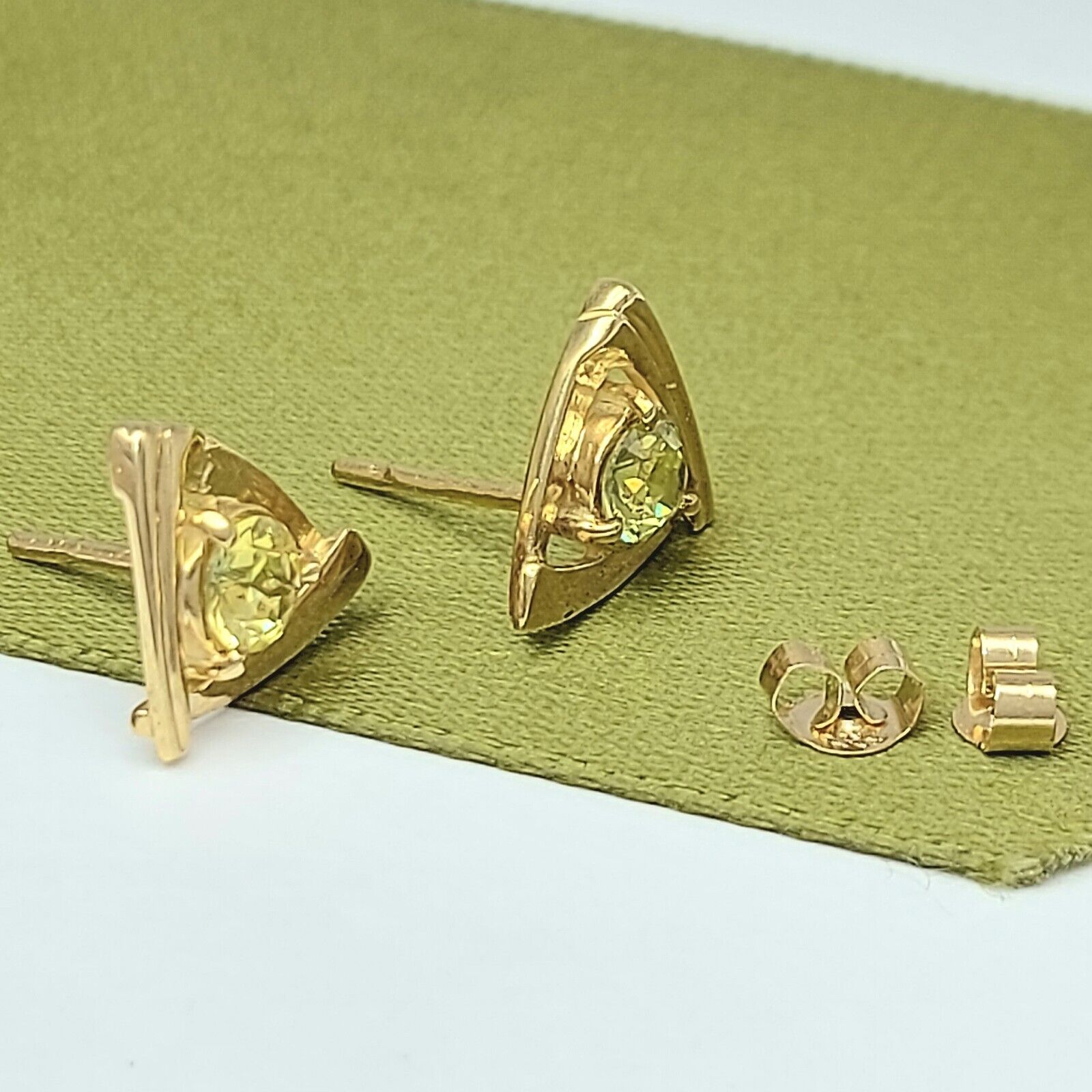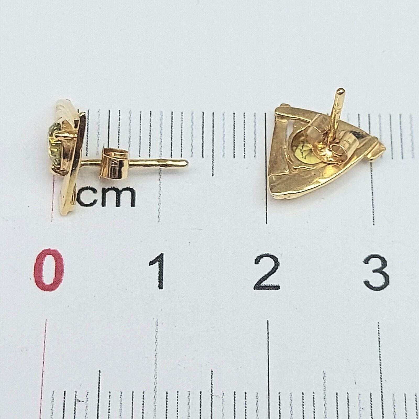 Ladies Earrings Yellow Gold 9ct (375,9k) Solid Natural Peridot Triangle Studs