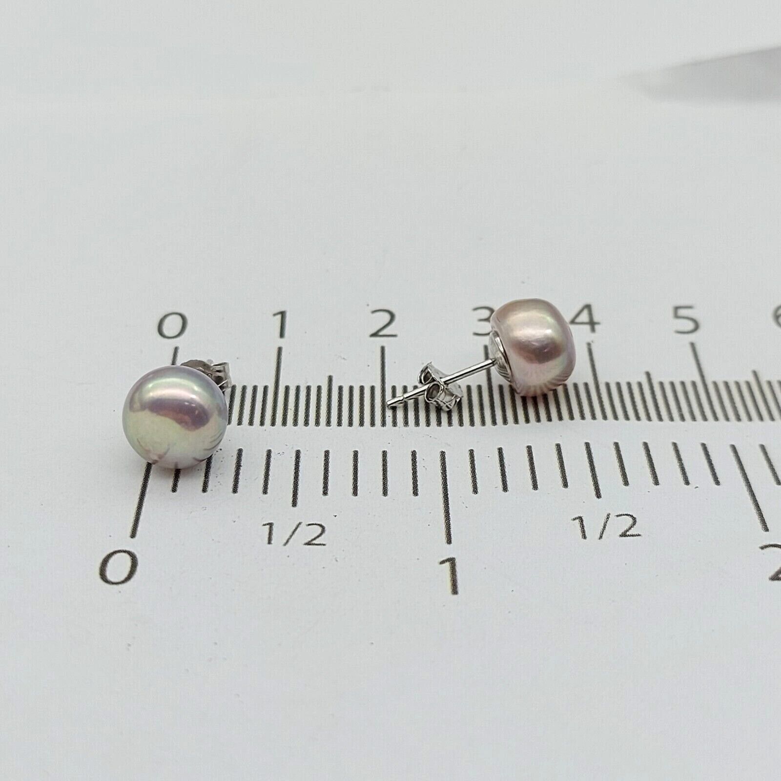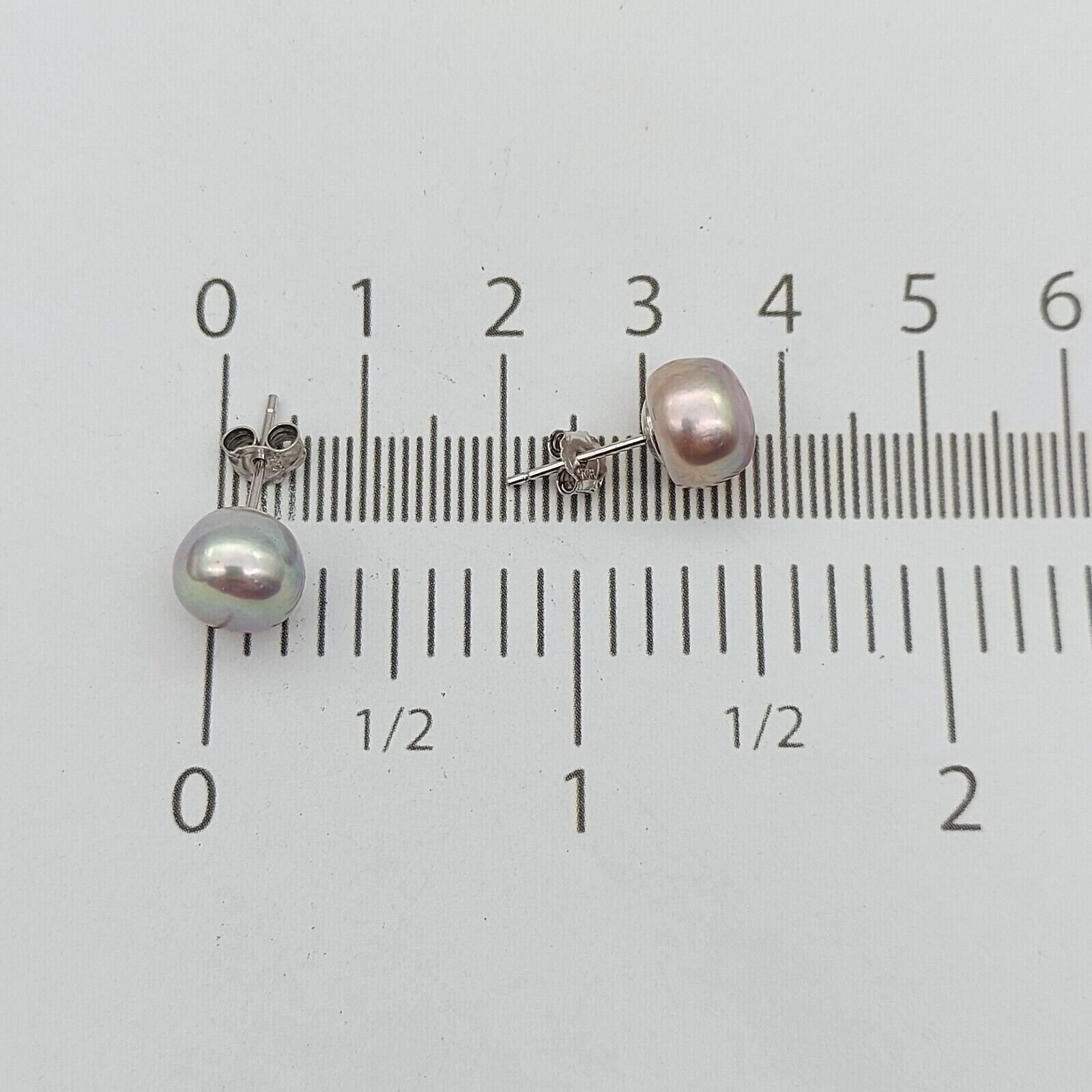 Ladies Silver (925) Silver Round Purple Pearl Stud Earrings