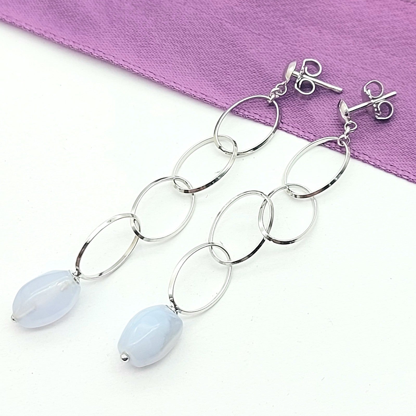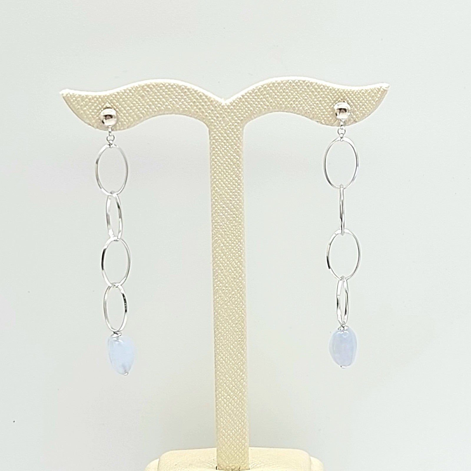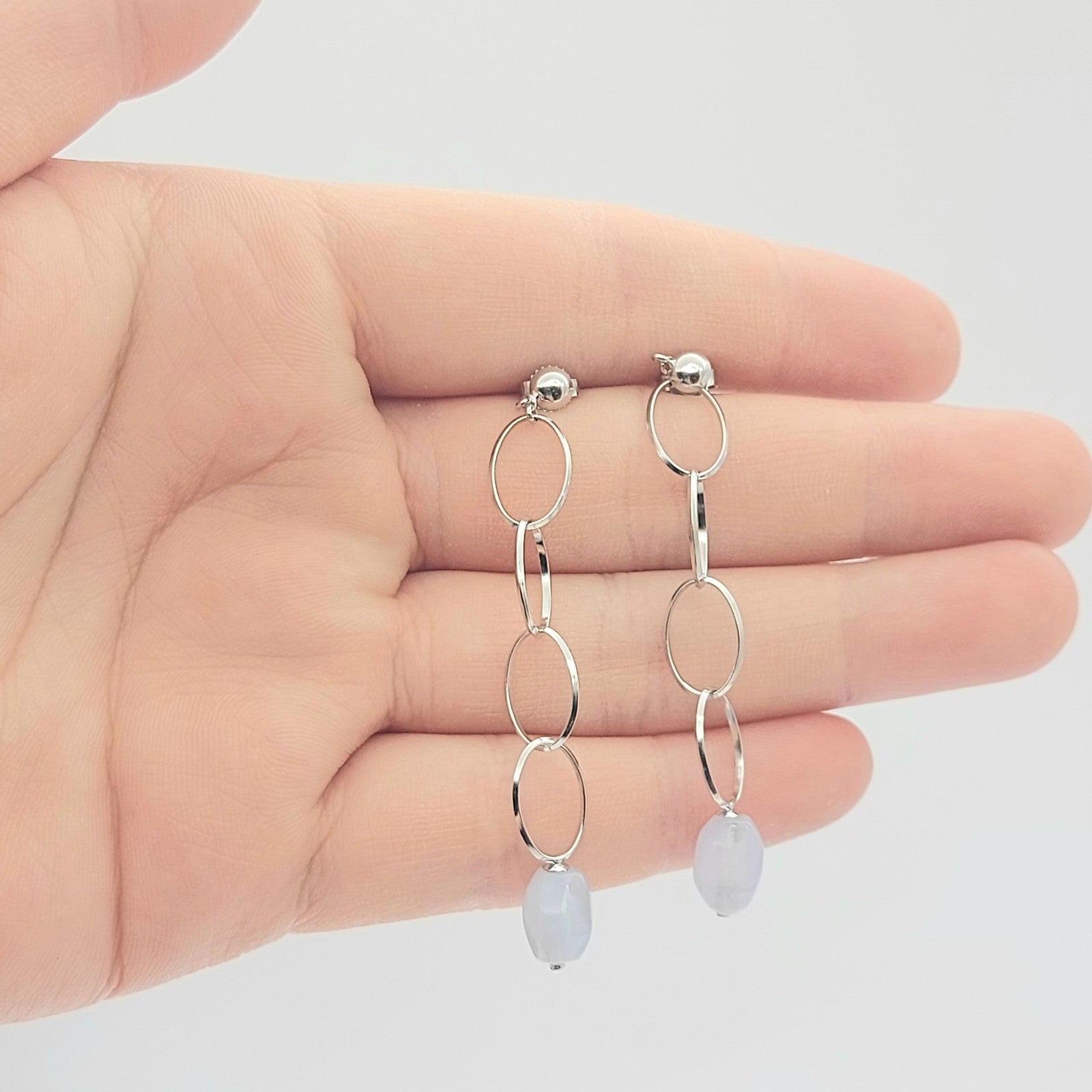 Ladies White Gold 18ct (750,18K) Blue Chalcedony Cable link Drop/Dangle Earrings