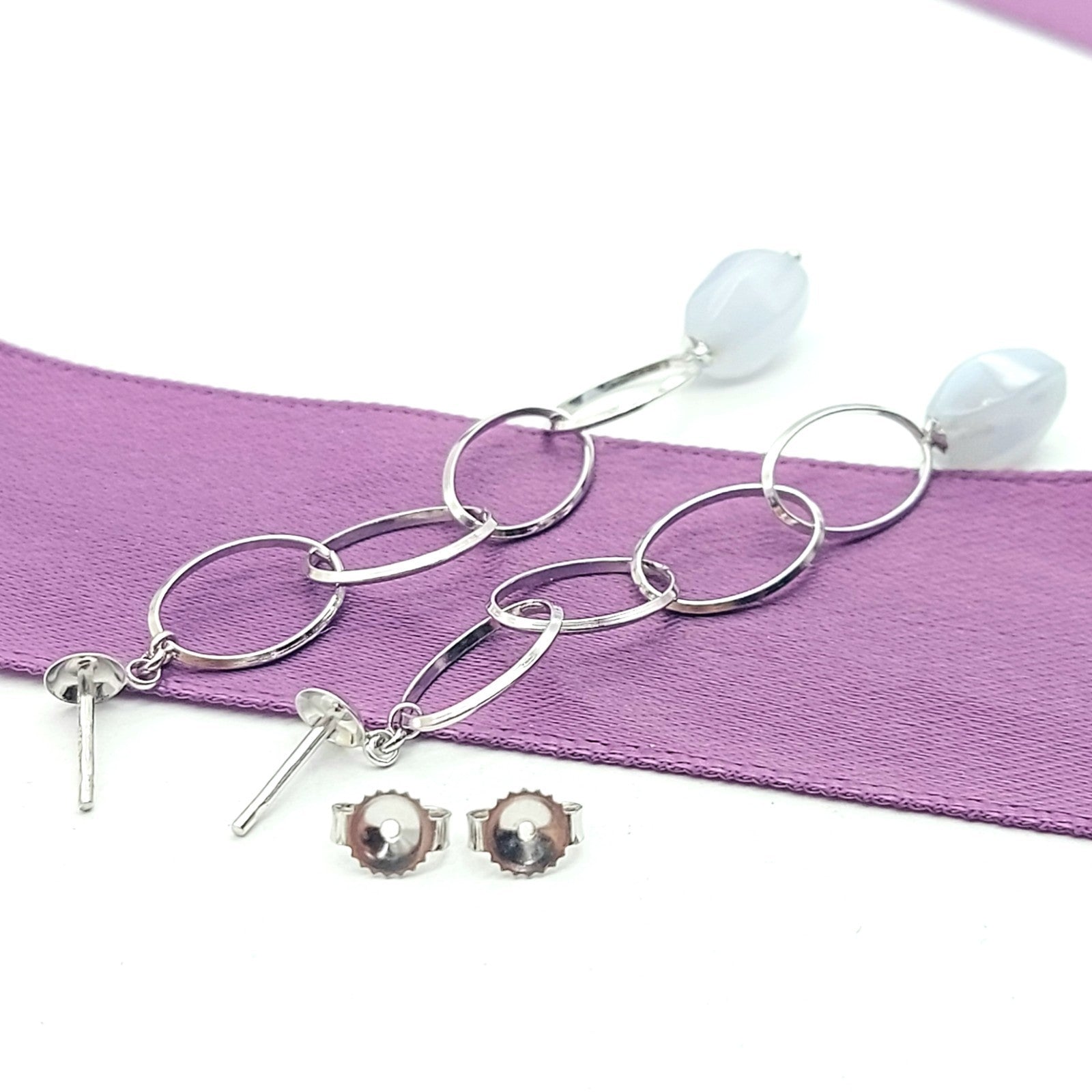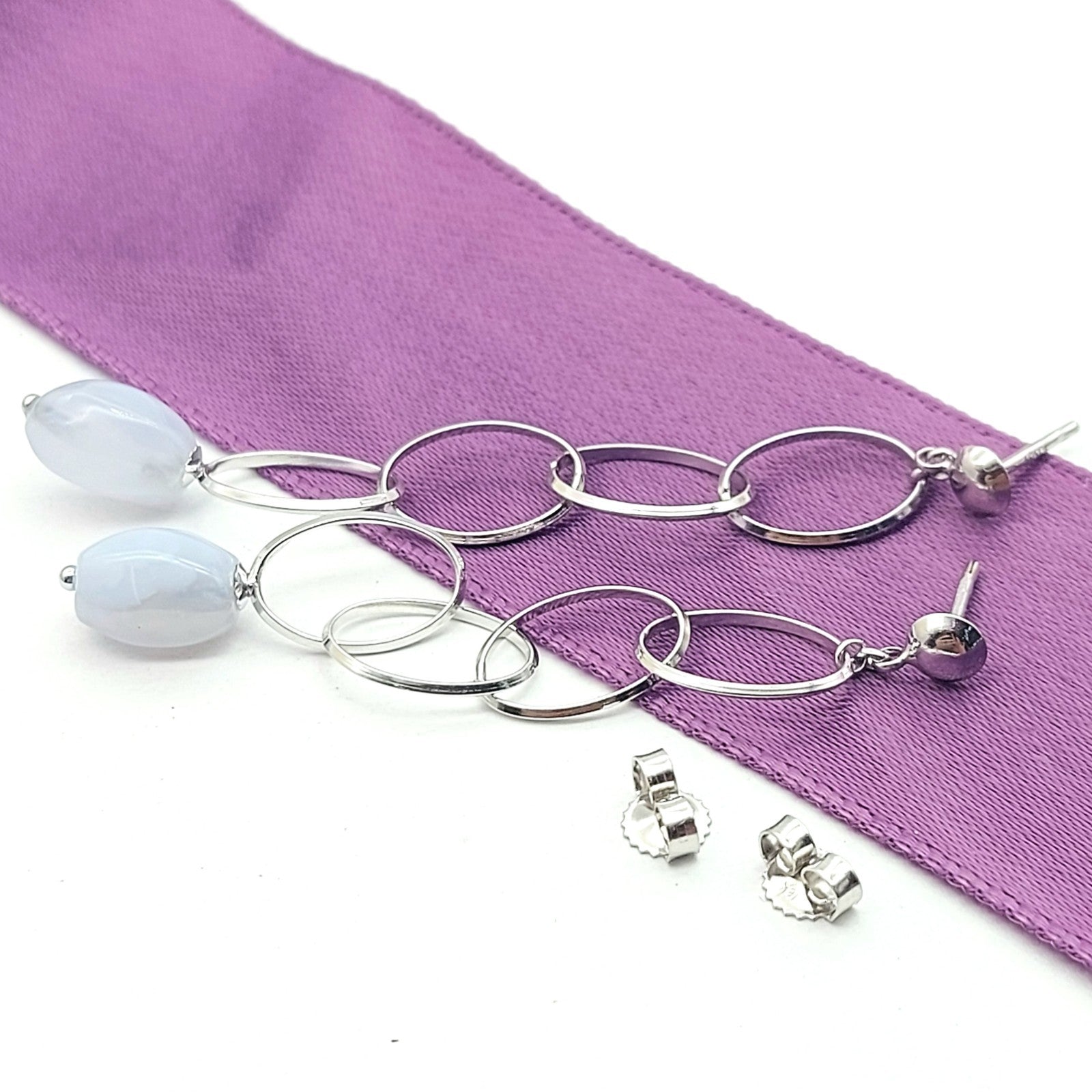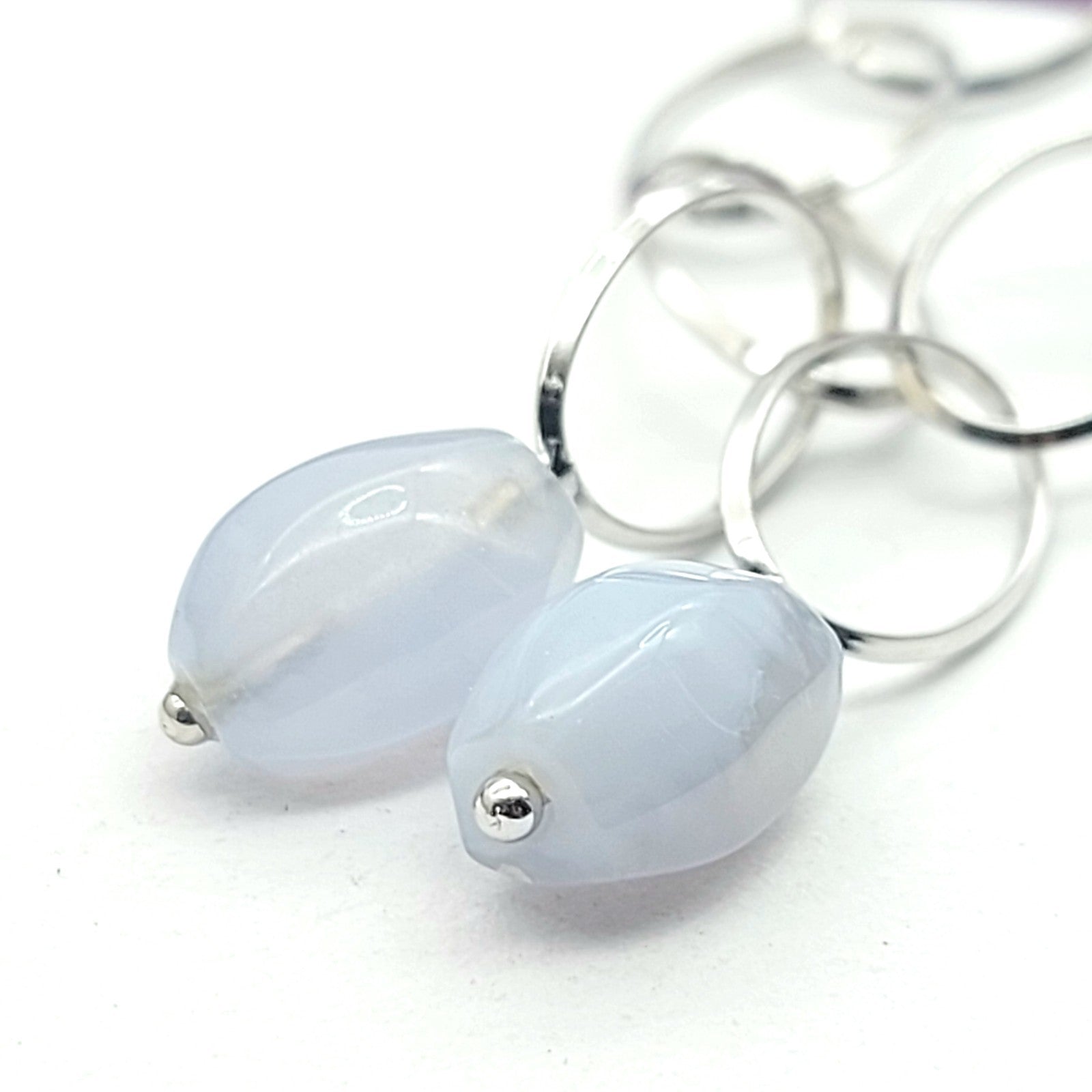 Ladies White Gold 18ct (750,18K) Blue Chalcedony Cable link Drop/Dangle Earrings