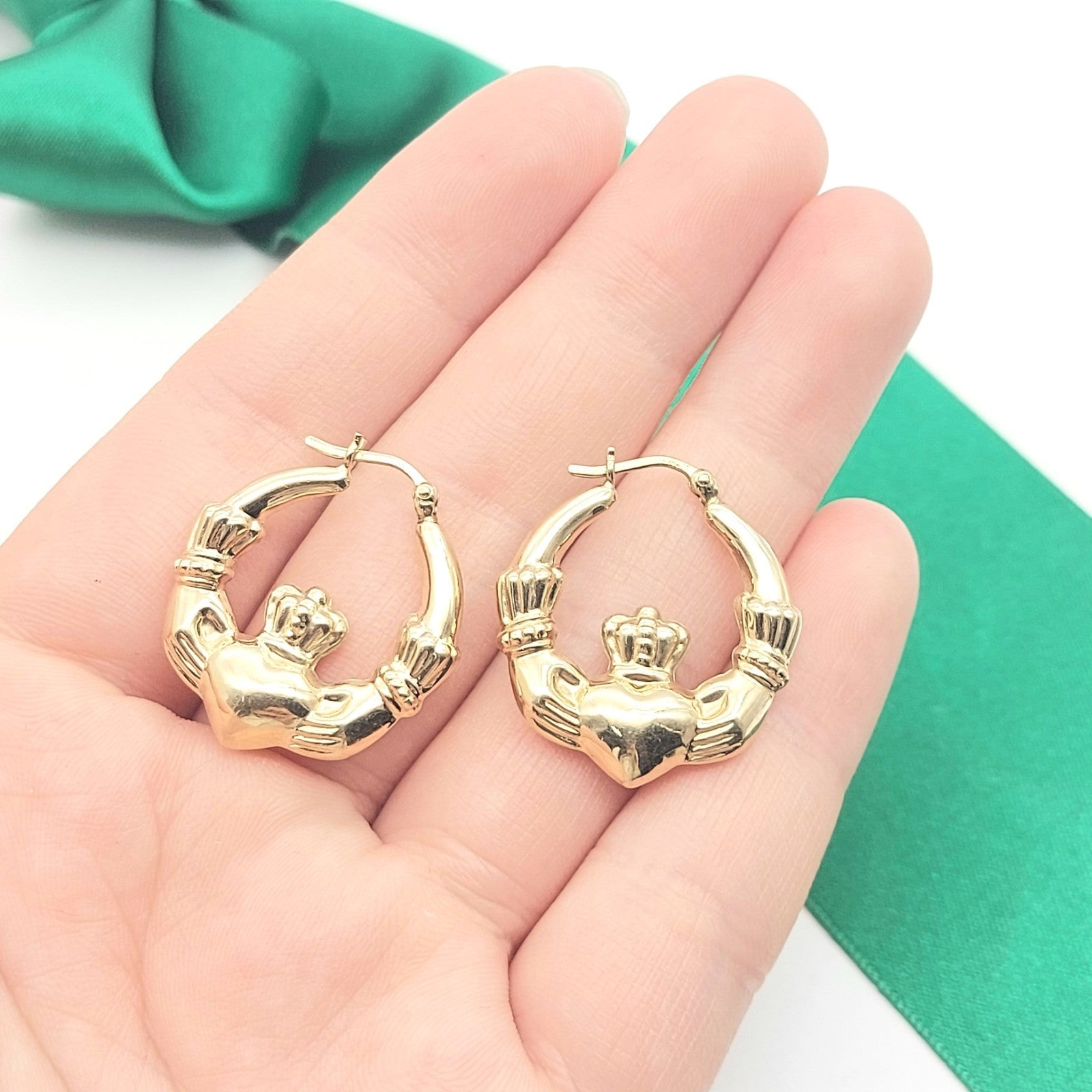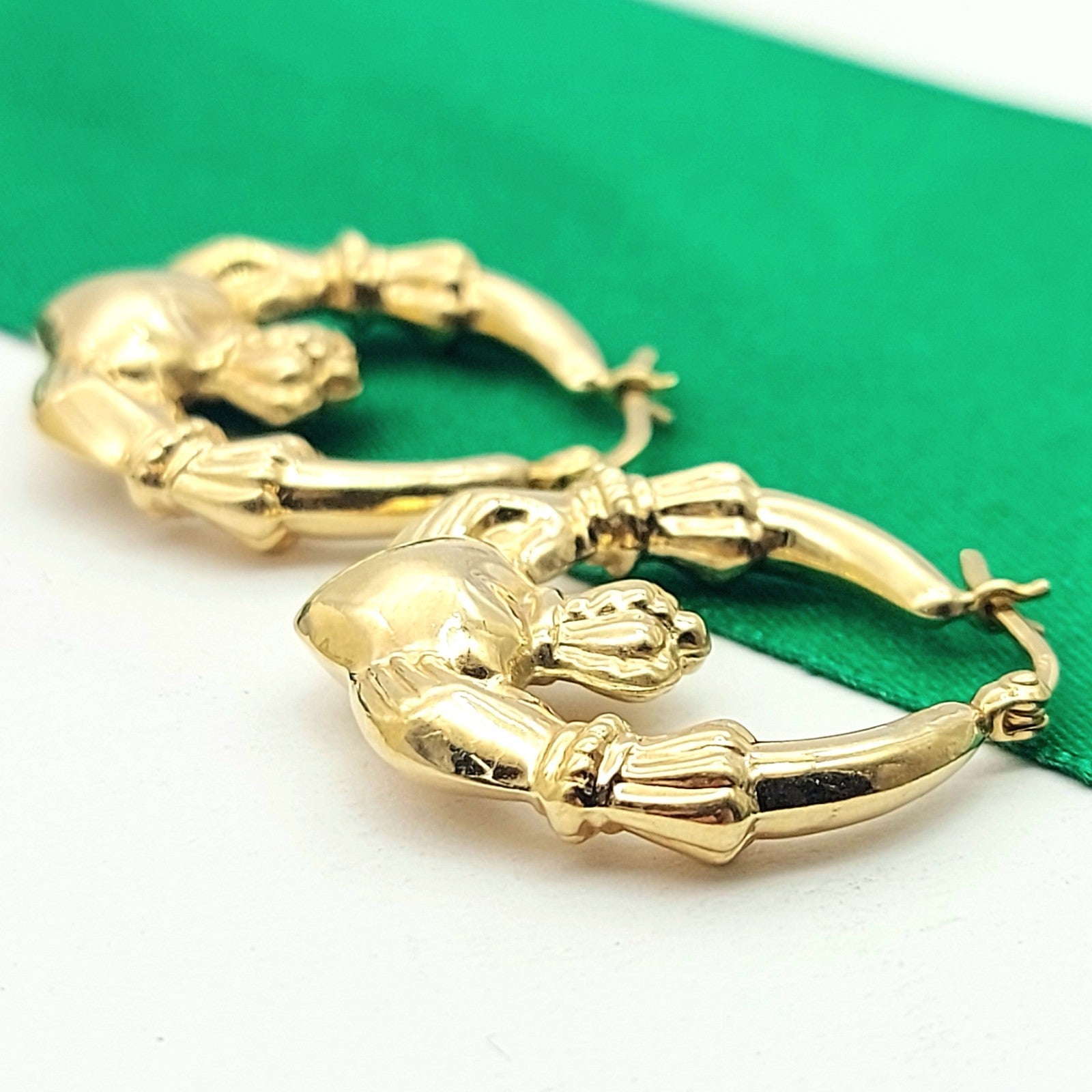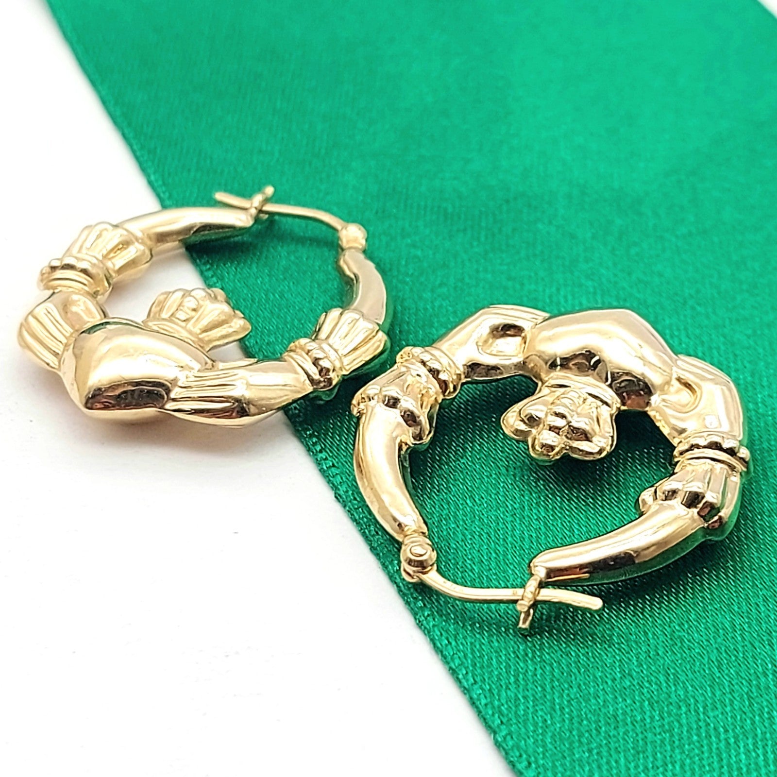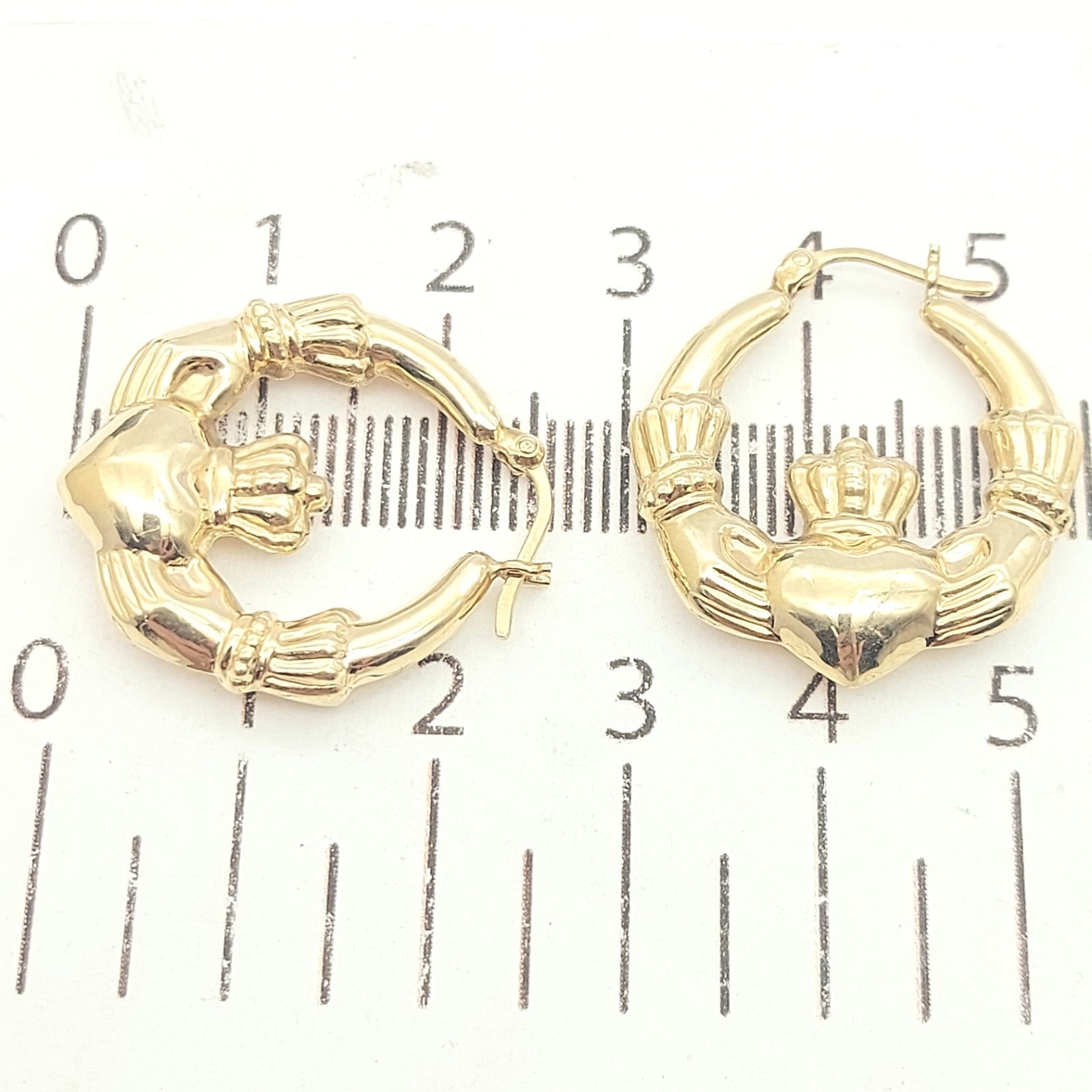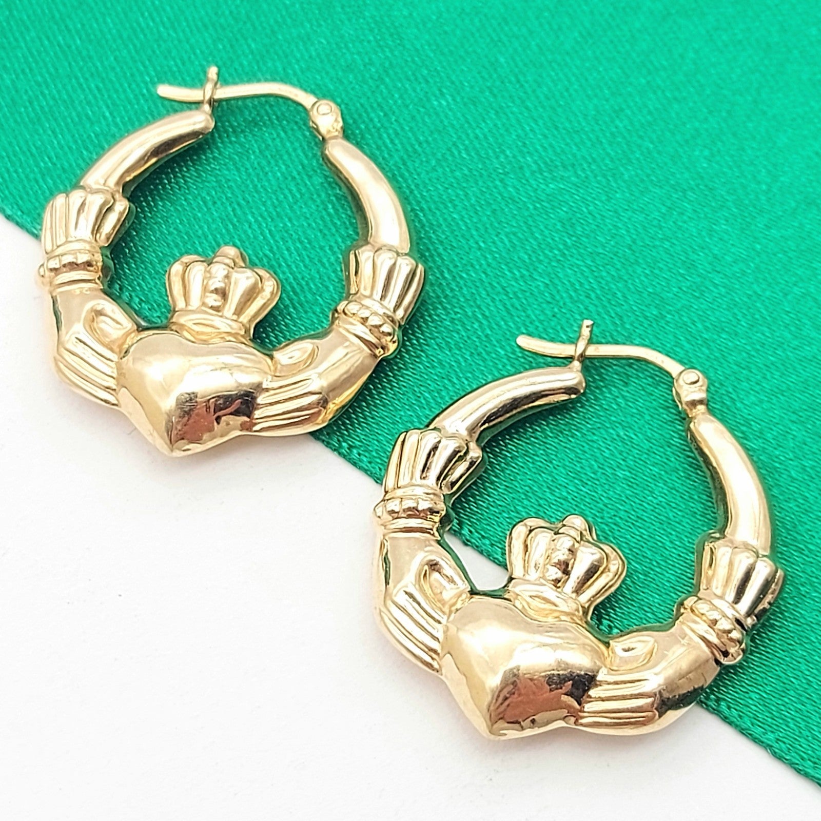 Ladies Yellow Gold 9ct (375, 9K) Irish Claddagh High Quality Hoop Earrings
