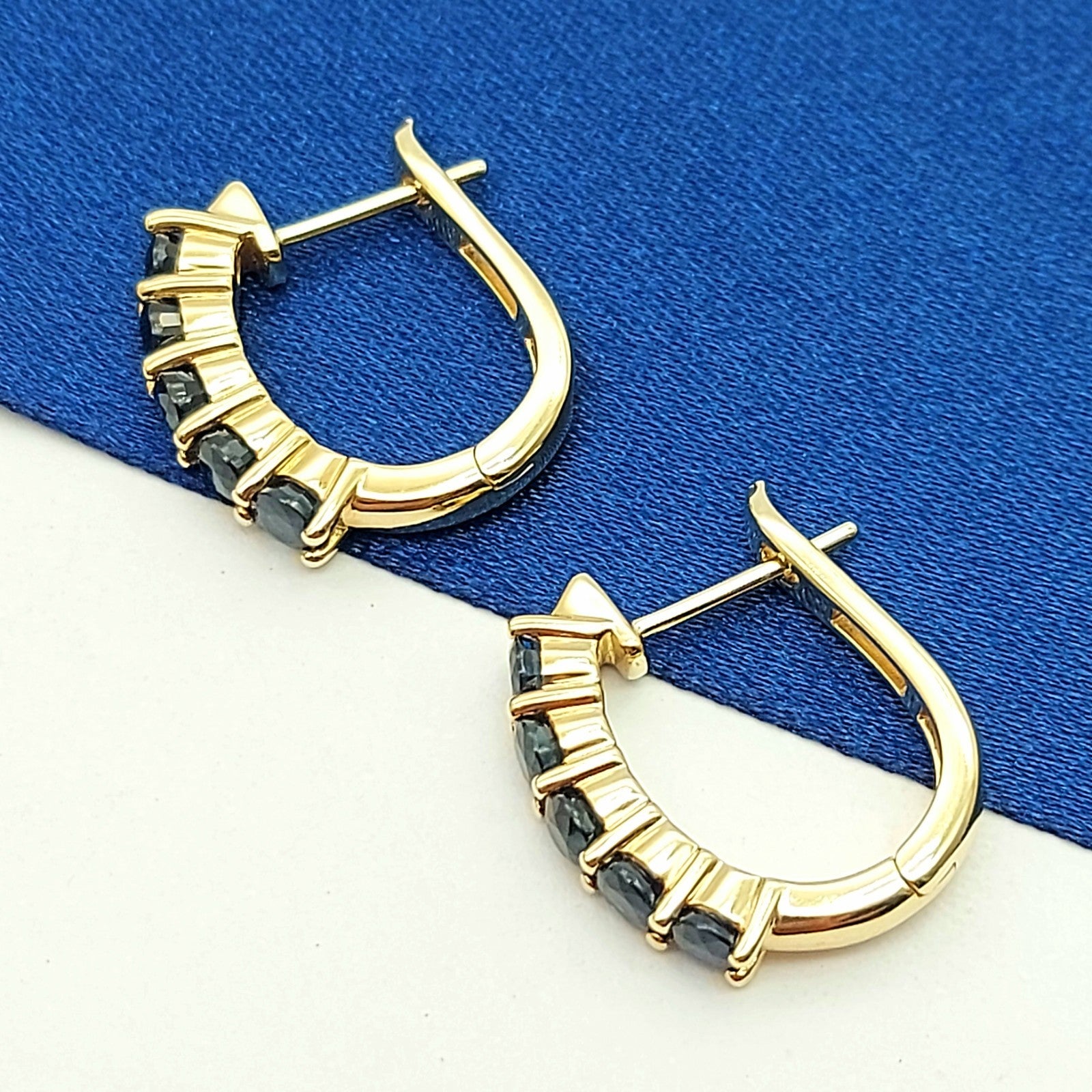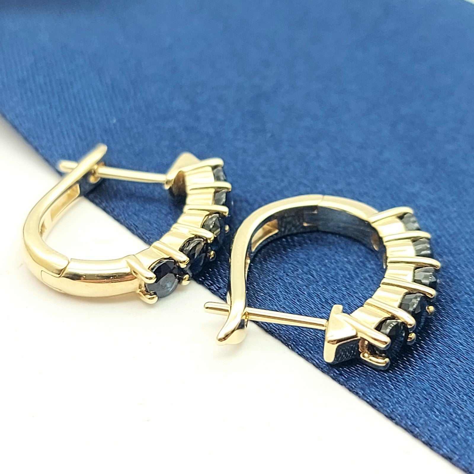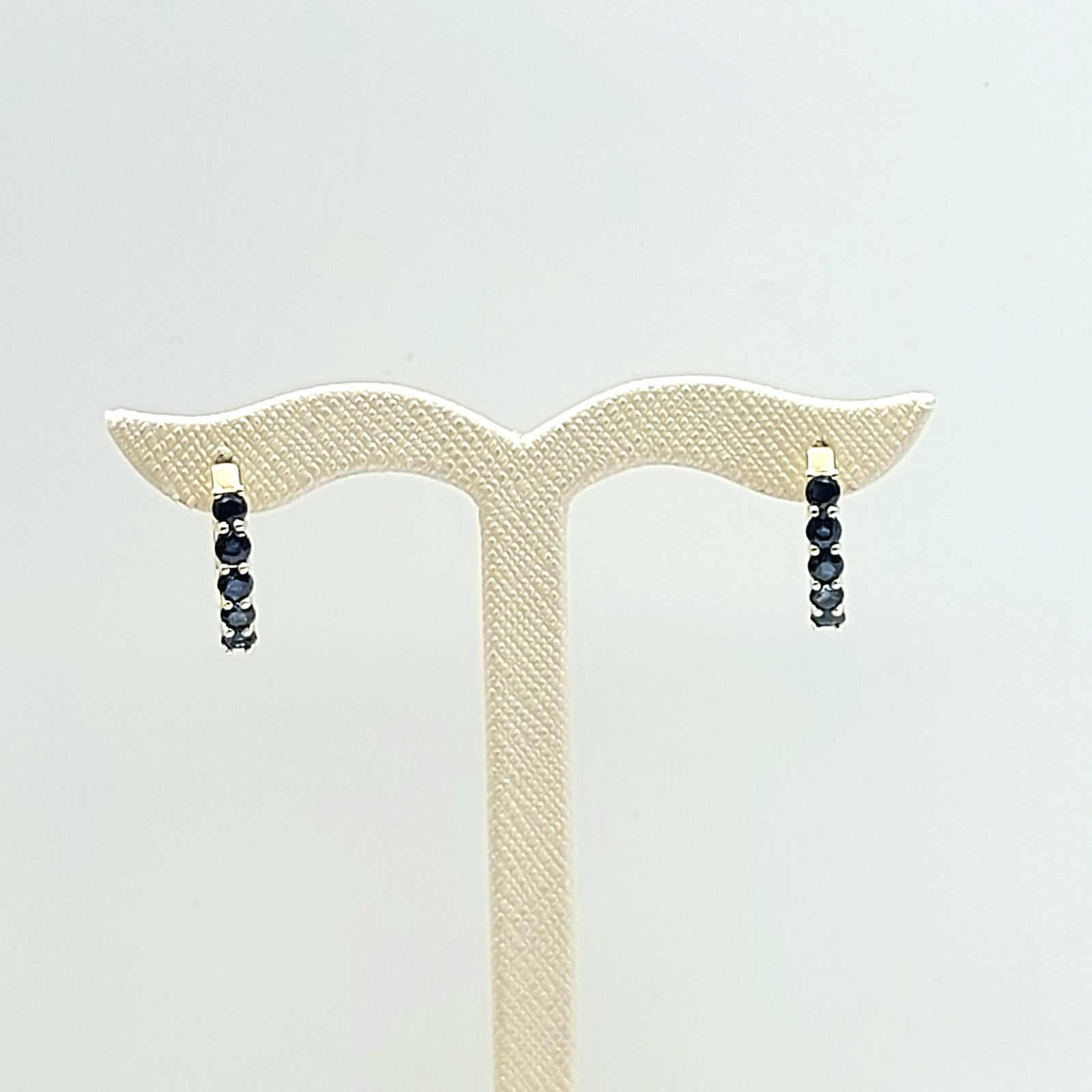 Ladies Yellow Gold 9ct (375, 9k) Natural Sapphire Pavé Huggie Earrings