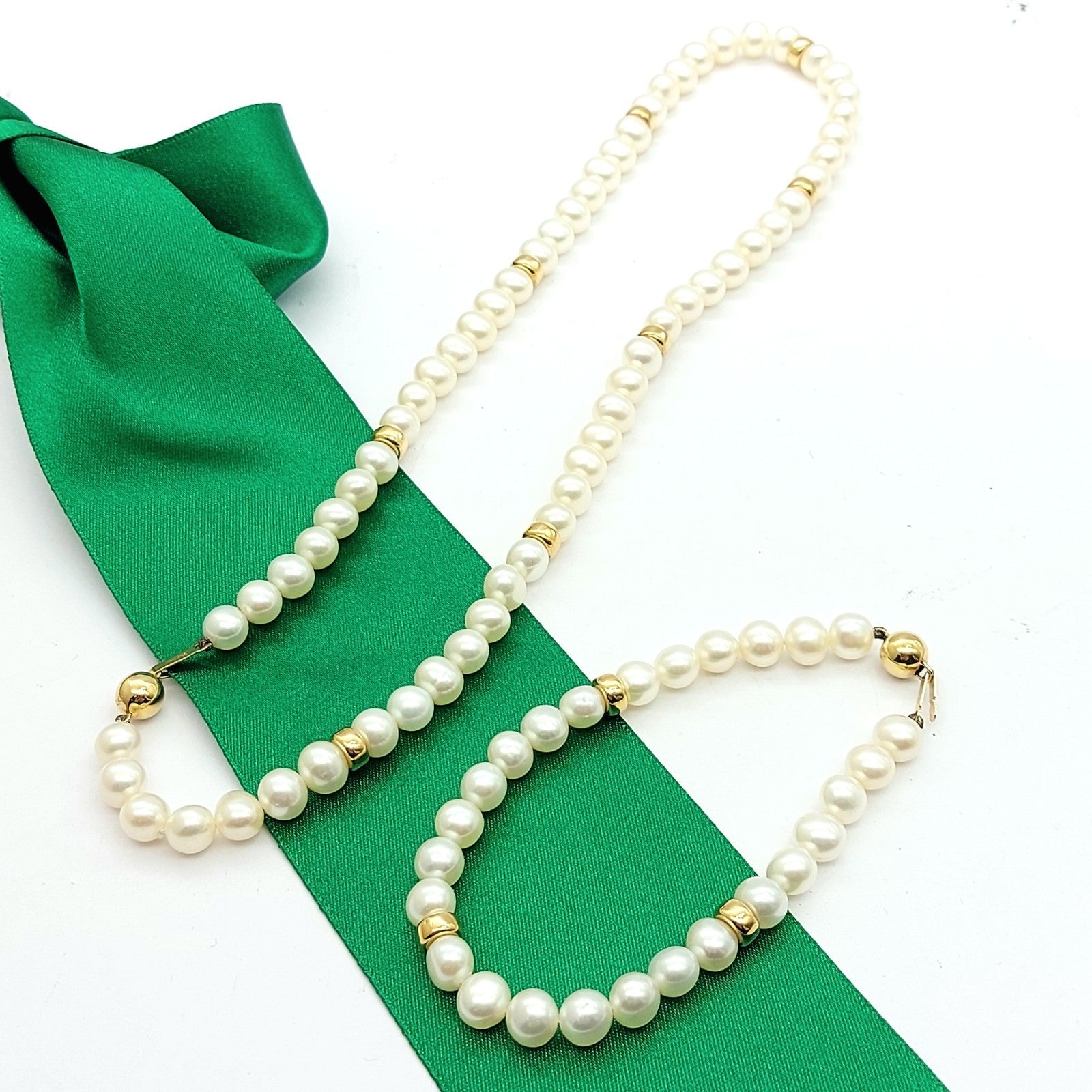 Natural Freshwater Pearls Yellow Gold 14ct (585, 14k) Necklace & Bracelet Set