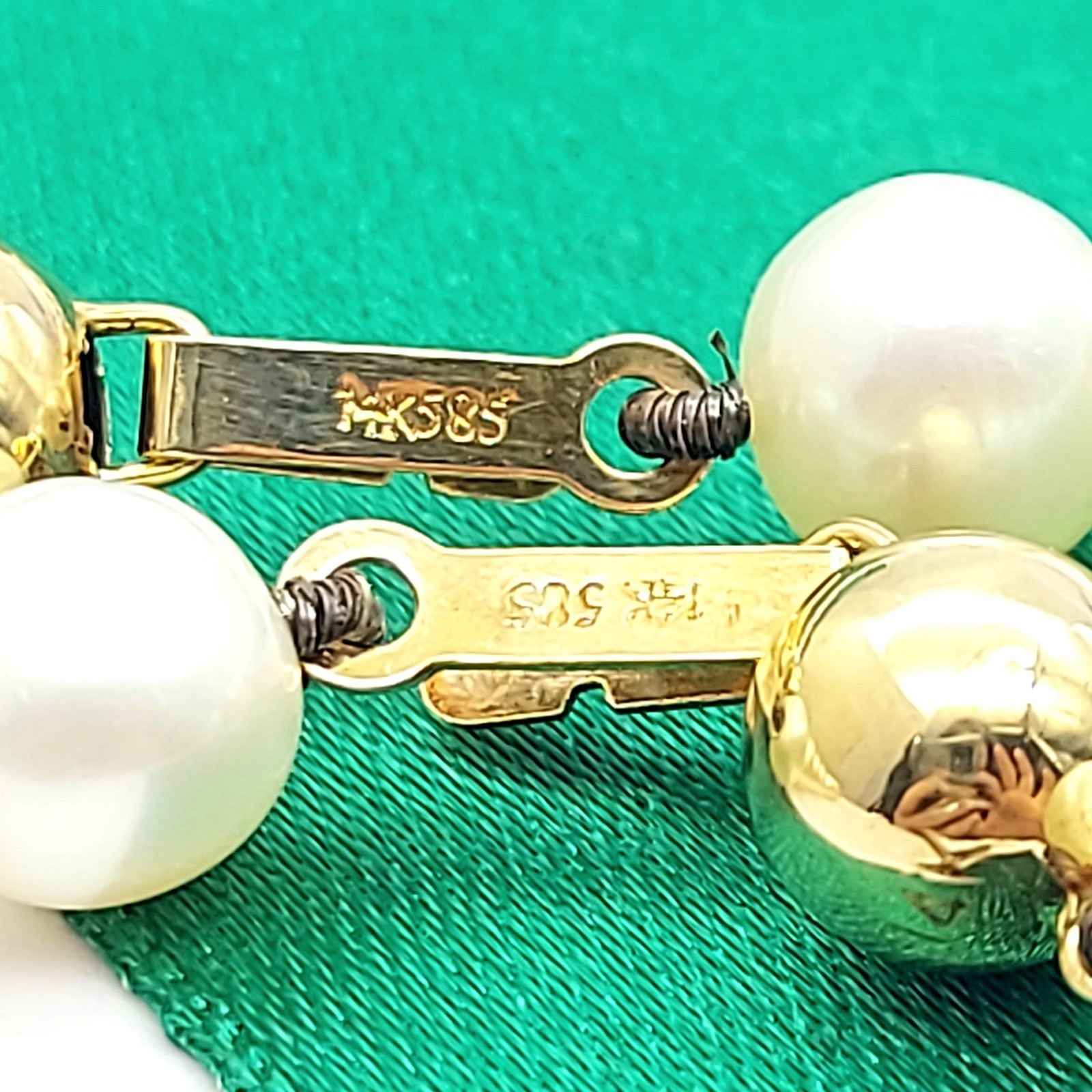 The jewellery is hallmarked '14k/585' indicating the purity of the gold.