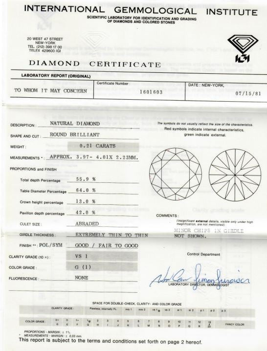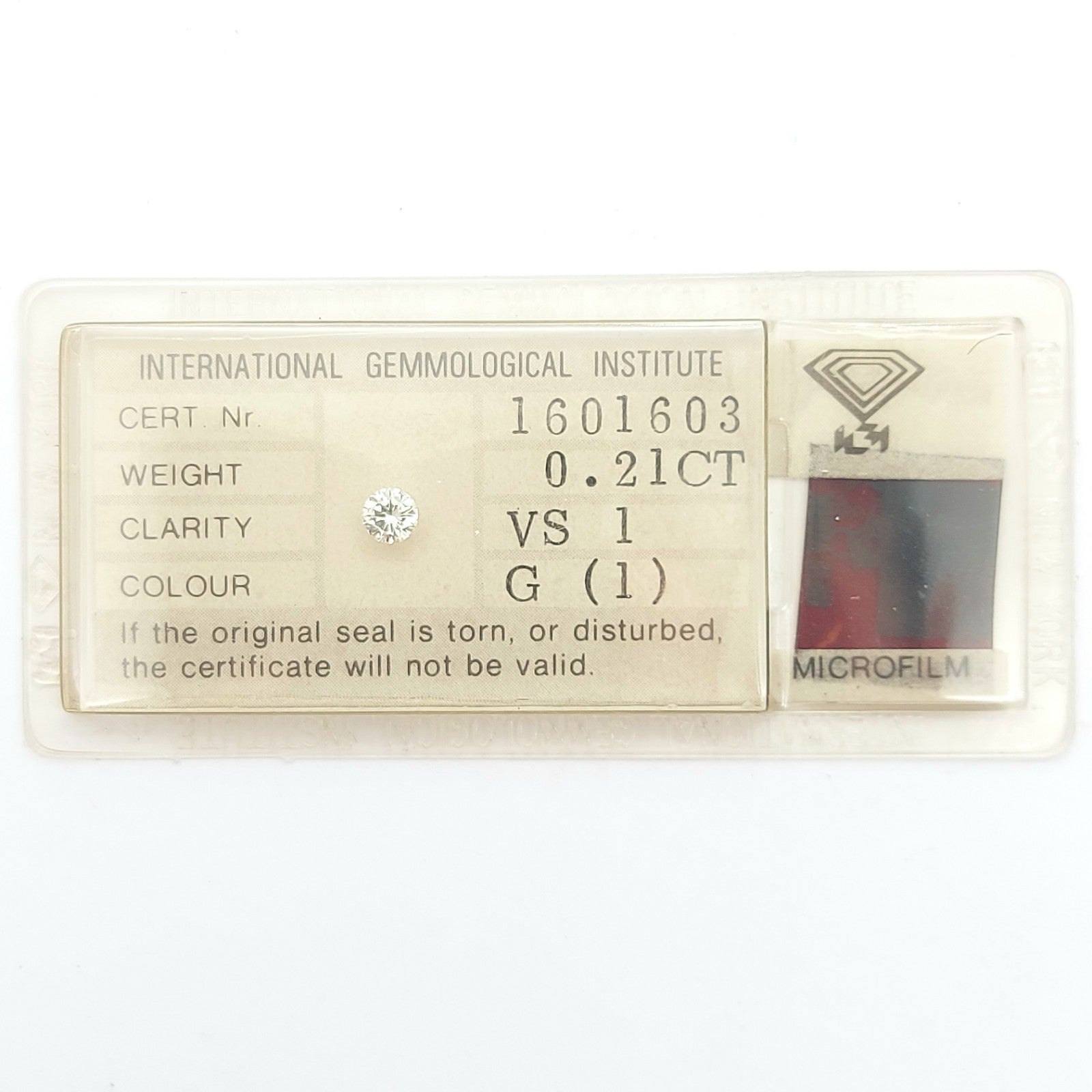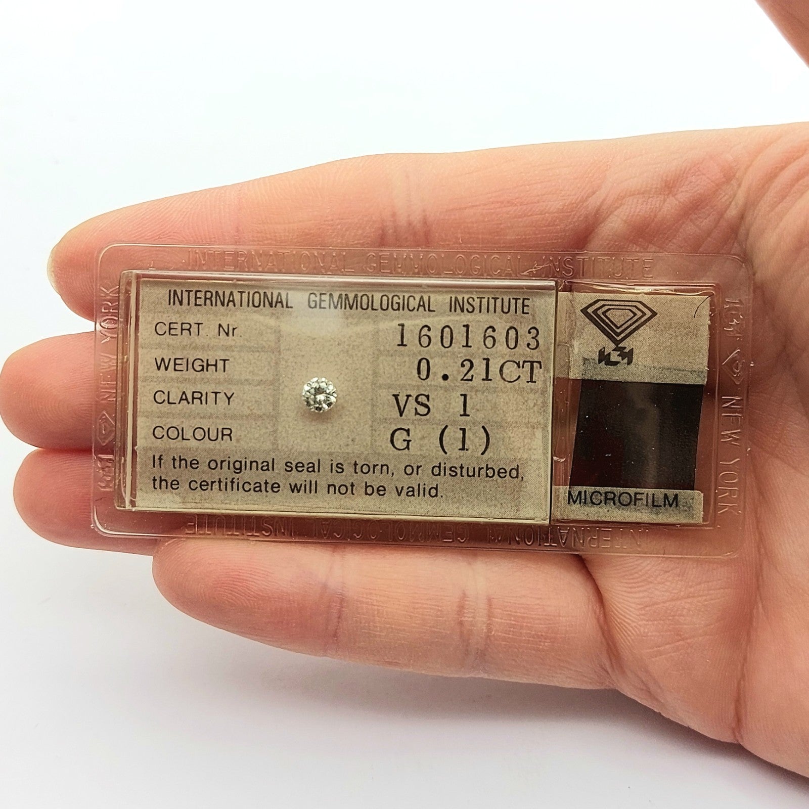 0.21 CT Natural White Diamond Round Cut VS1 G Grade Certificate IGI