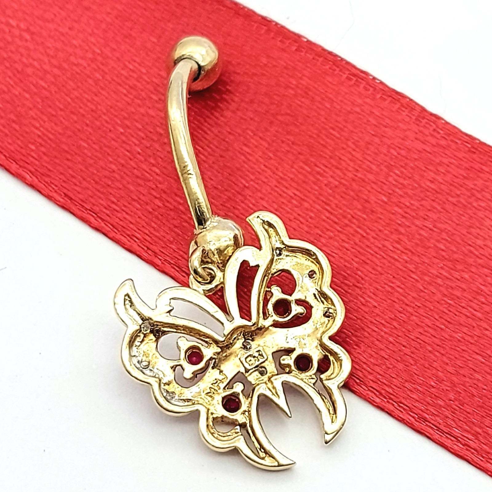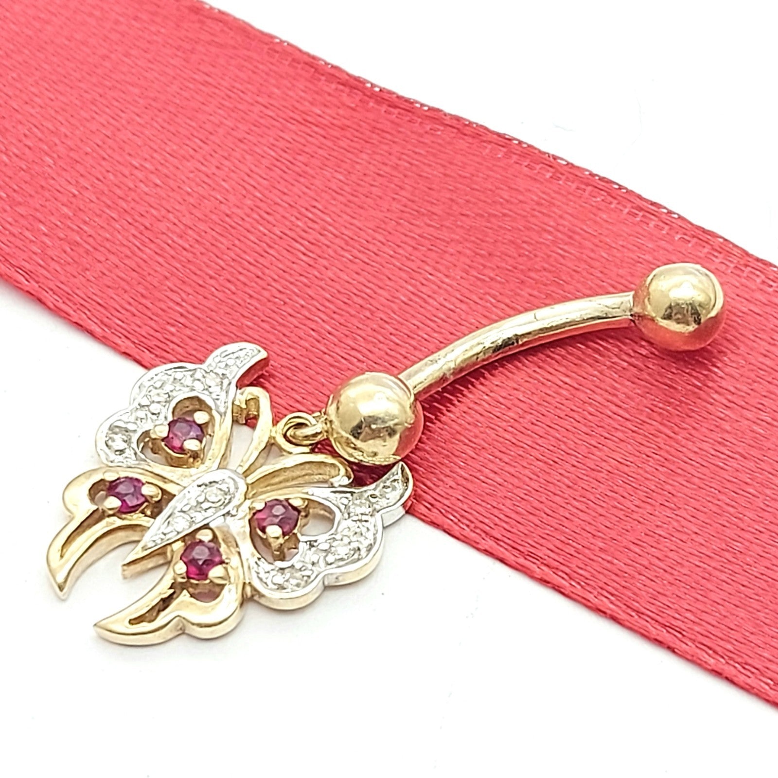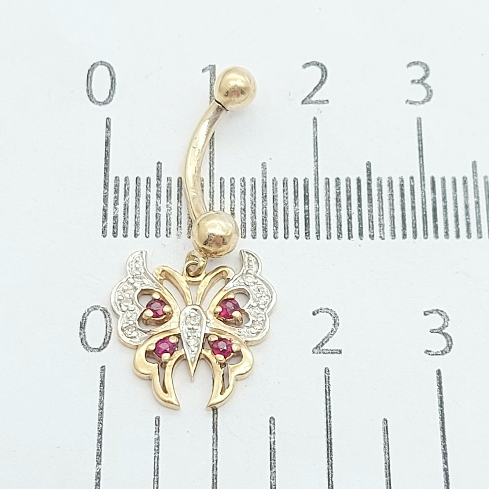 Ladies Yellow Gold 9ct (375, 9K) MHJ Rare Rubies & Diamonds Butterfly Belly Stud