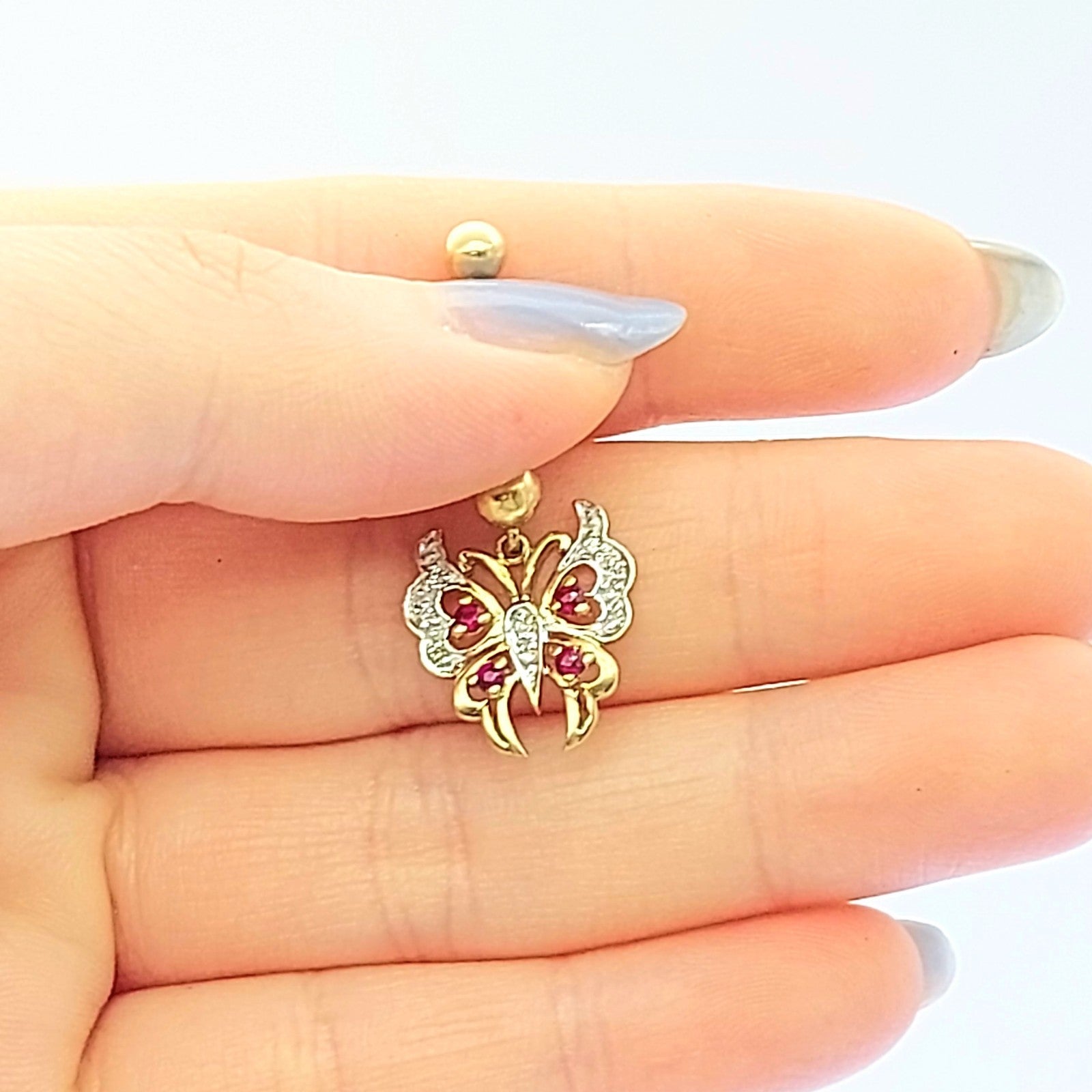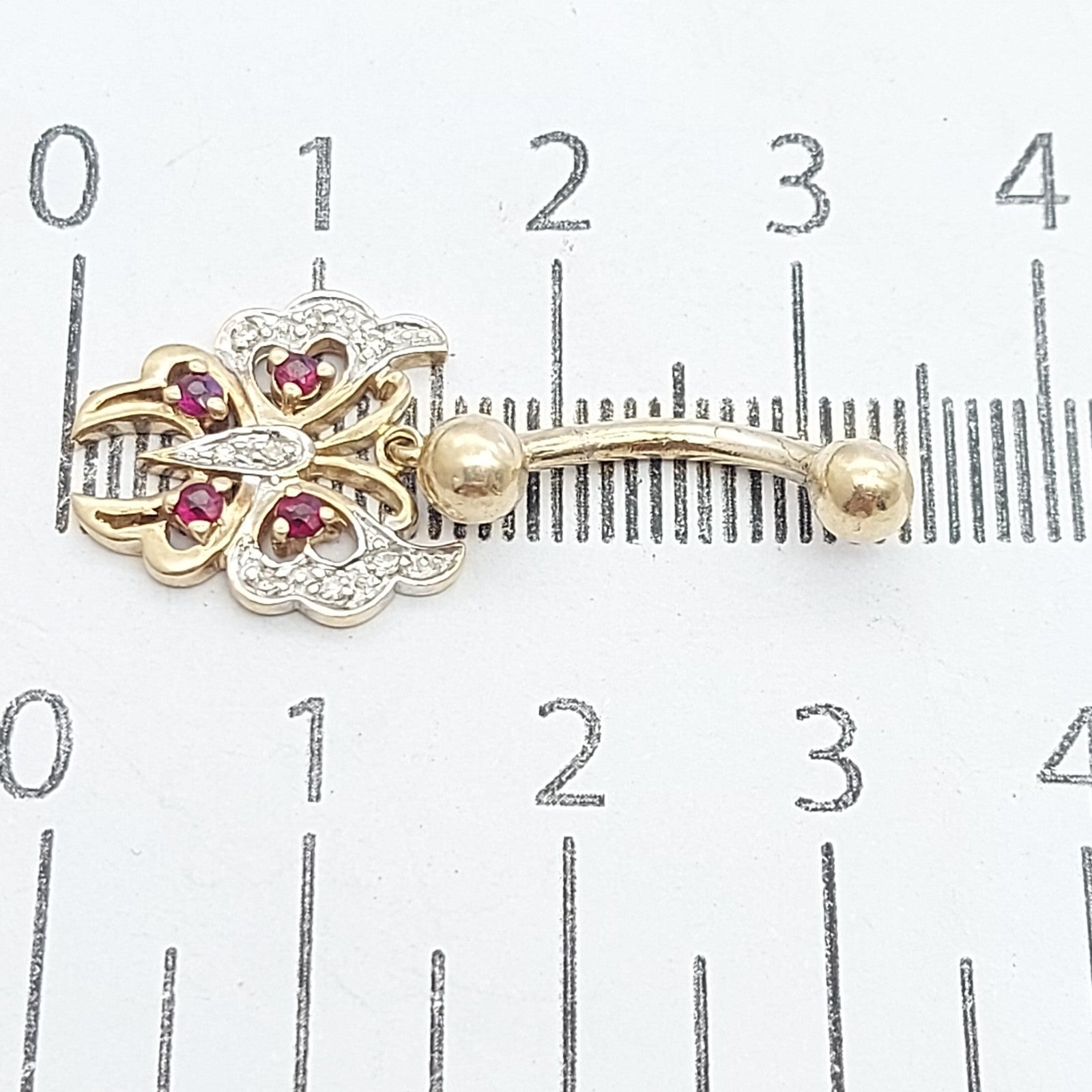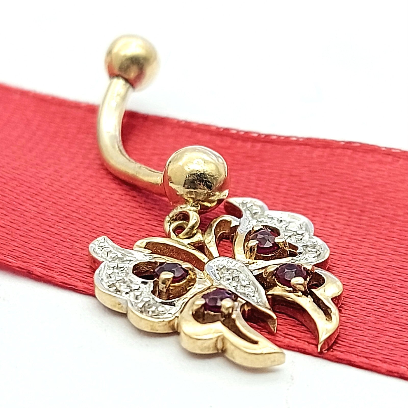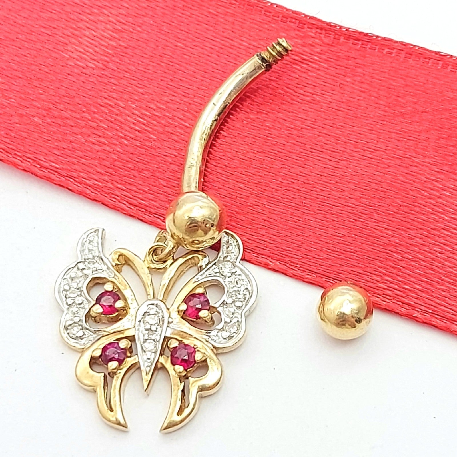 Ladies Yellow Gold 9ct (375, 9K) MHJ Rare Rubies & Diamonds Butterfly Belly Stud