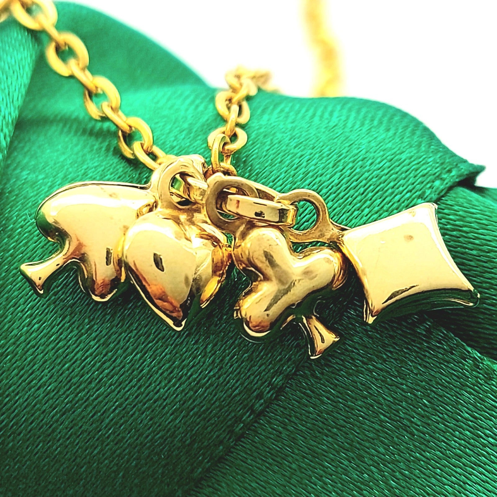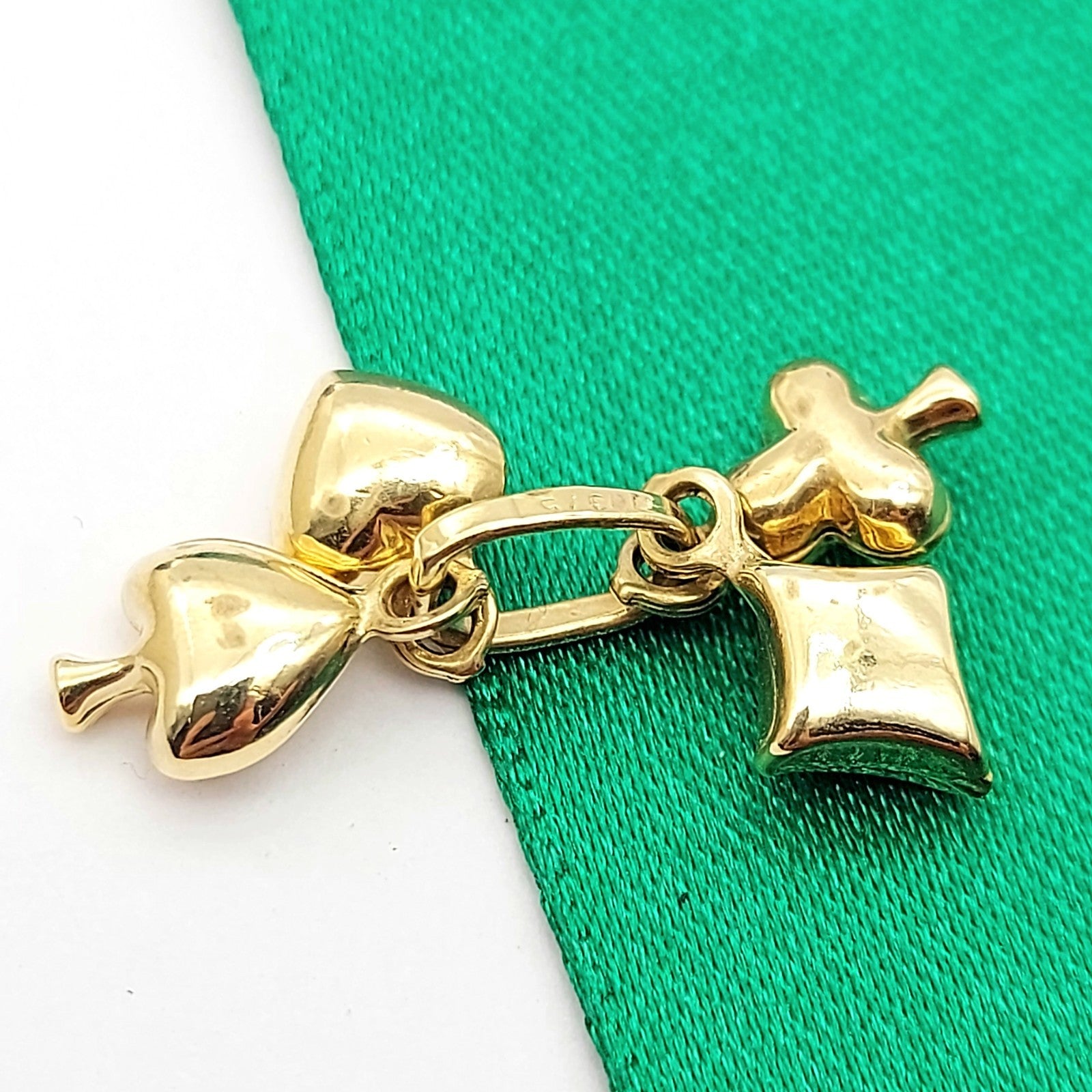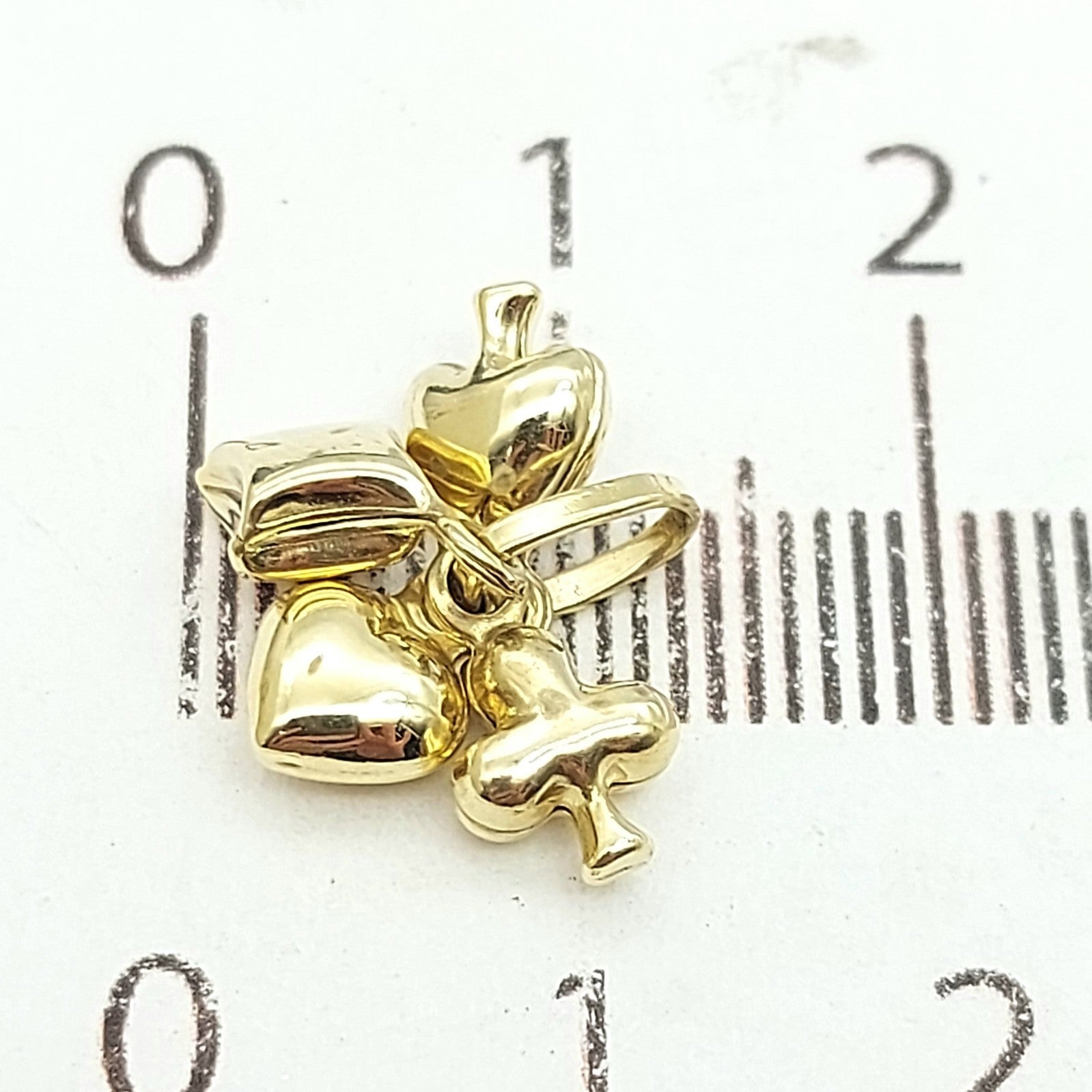 Welcome to the Gold and Diamond Exchange Store! - Sydney Based Store that has experience in the jewellery industry for over 30 years. - Specialising in: selling and buying jewellery, precious metals, coins, bullion, diamonds and watches. - Professionally assessed and tested using the most up to date equipment in our industry, including x-ray testing & diamond testers to ensure the quality and purity of our products. - Most of our items are brand new, from defunct jewellery stores. We offer wholesale and below pricing. 4 Suits Yellow Gold 9ct (375, 9K) Heart, Spade, Clover, Diamond Charm/Pendant This piece has been professionally polished and cleaned to look and function as new and is in immaculate condition. A very rare and well-made good condition. This pendant is hallmarked '375' indicting the purity of the gold. Pendant for sale only, chain not included!