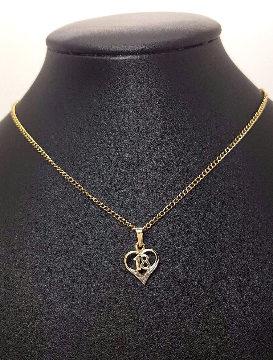 9ct Yellow Gold '18' Heart Diamond Pendant