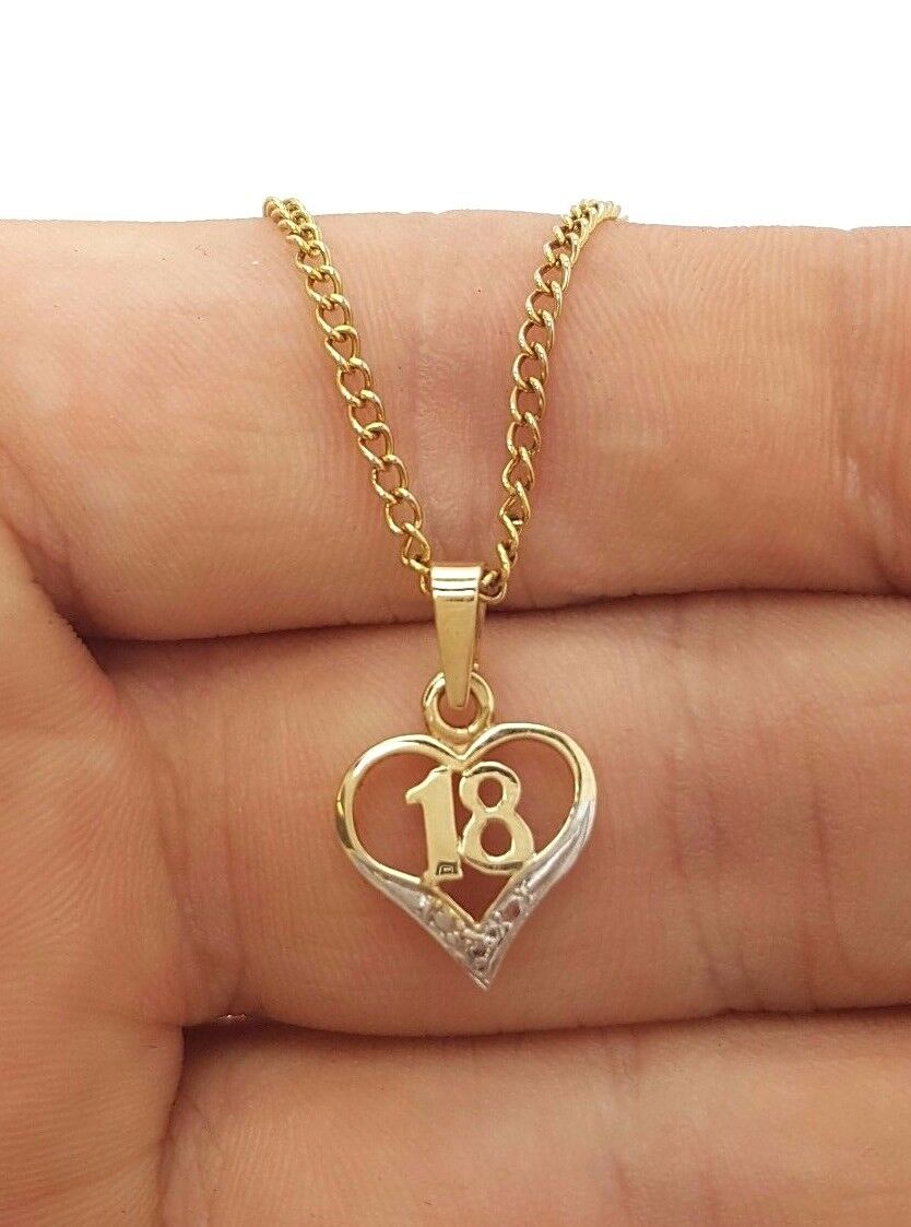 Featuring the number 18 in a love heart and 1 small diamond chip