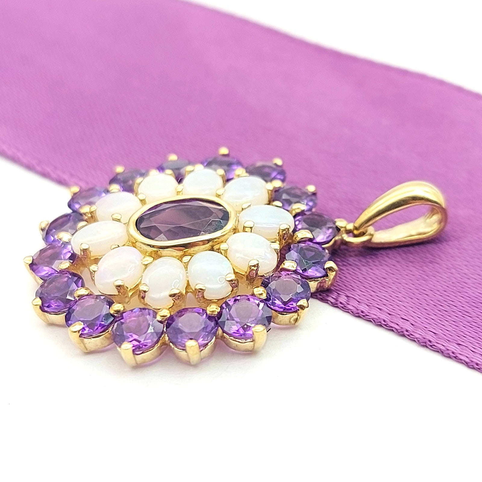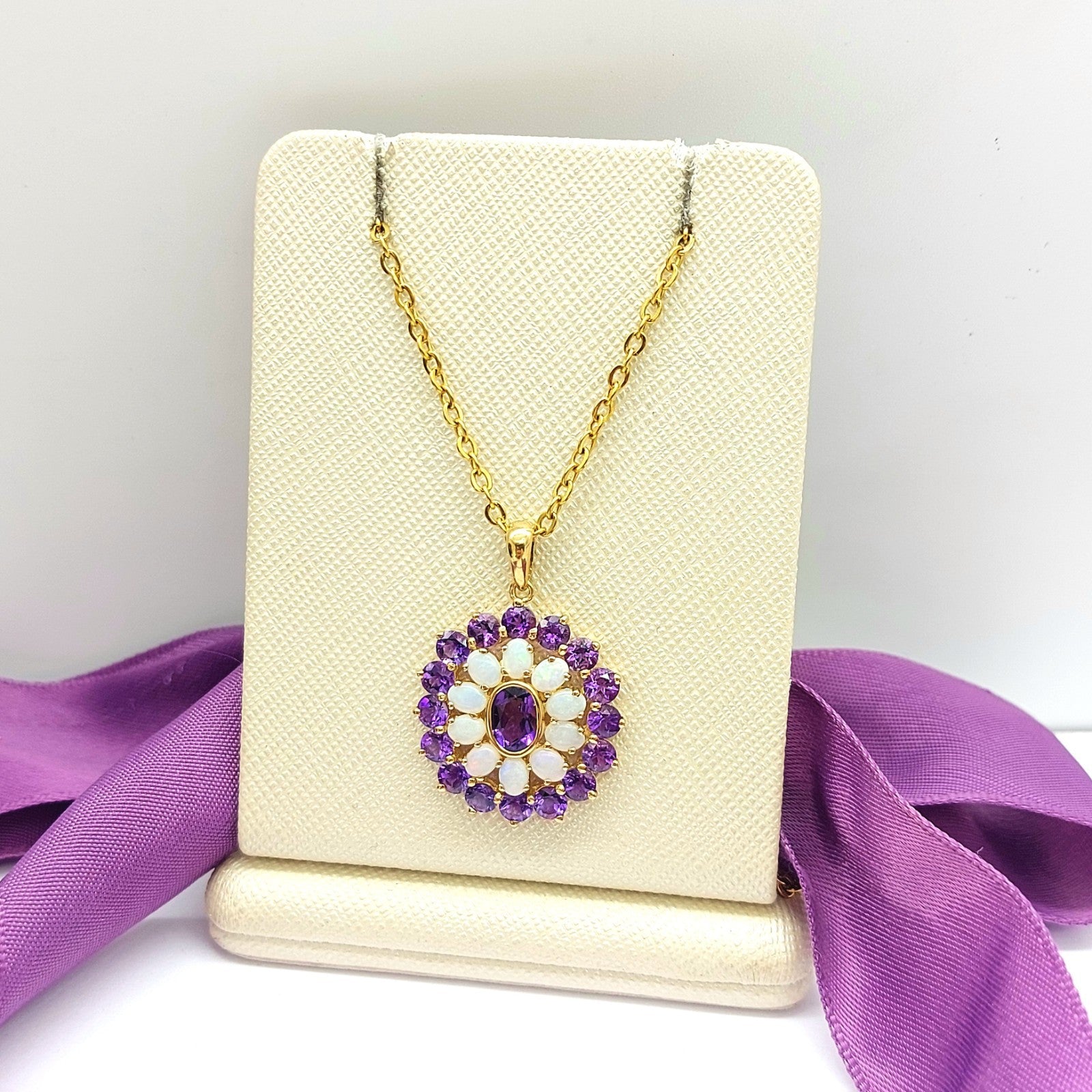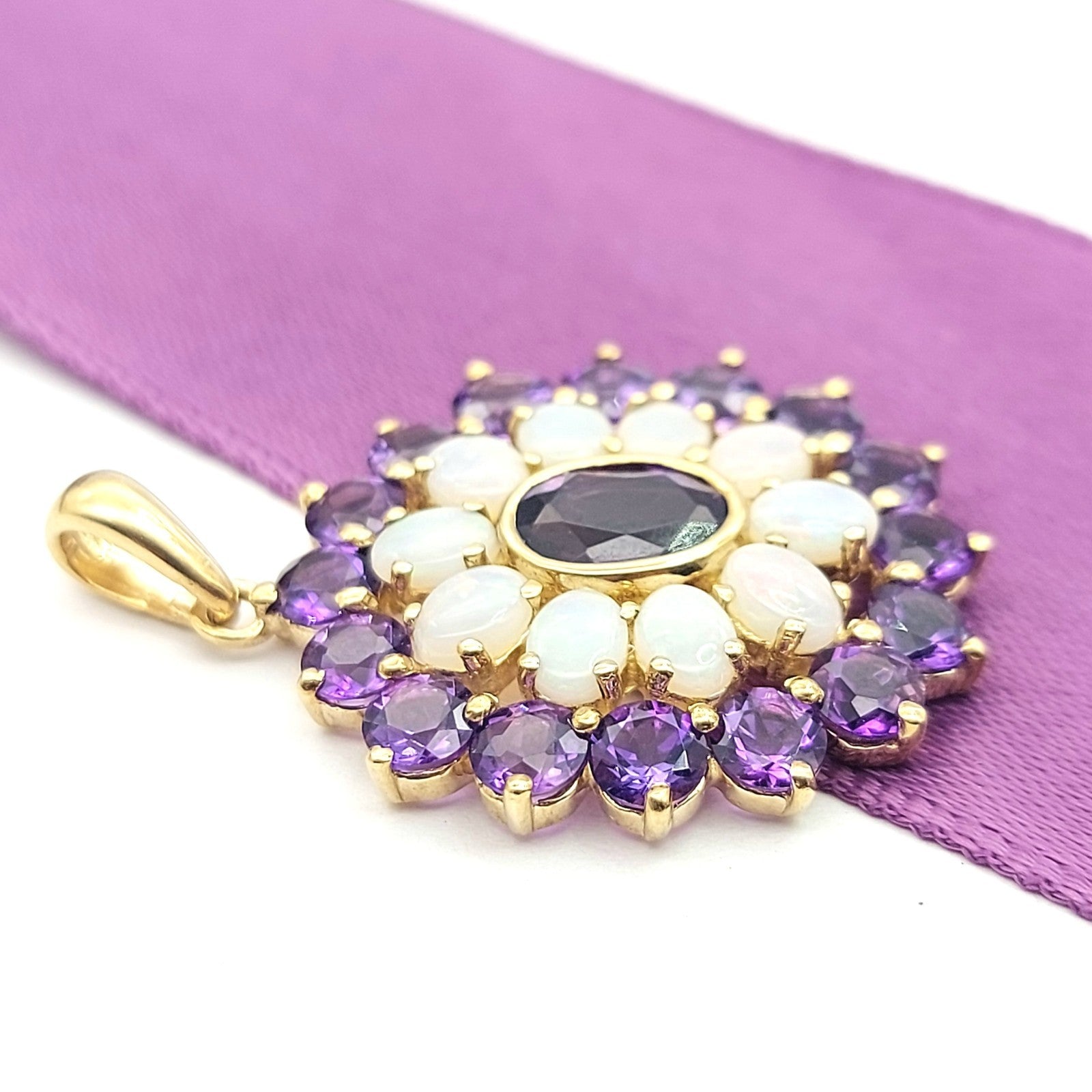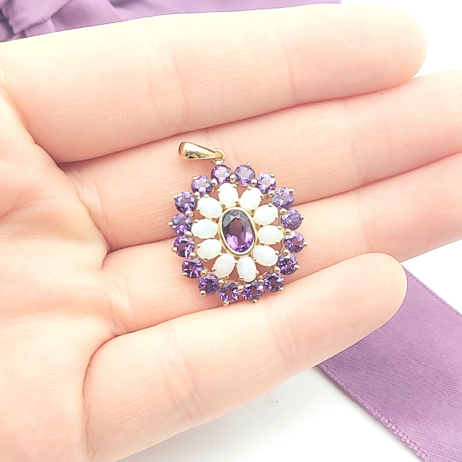 Floral Ornamental-style Yellow Gold 9ct (375, 9K) Opal & Amethyst Pendant