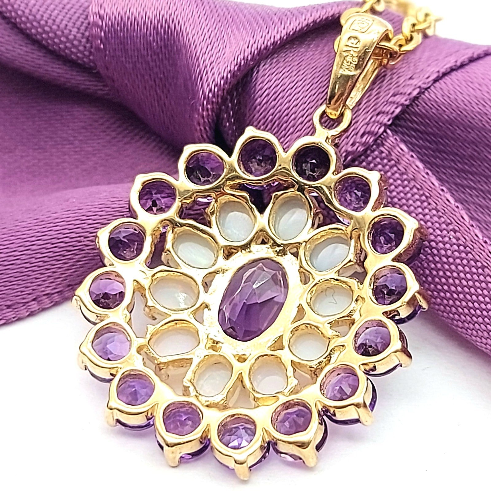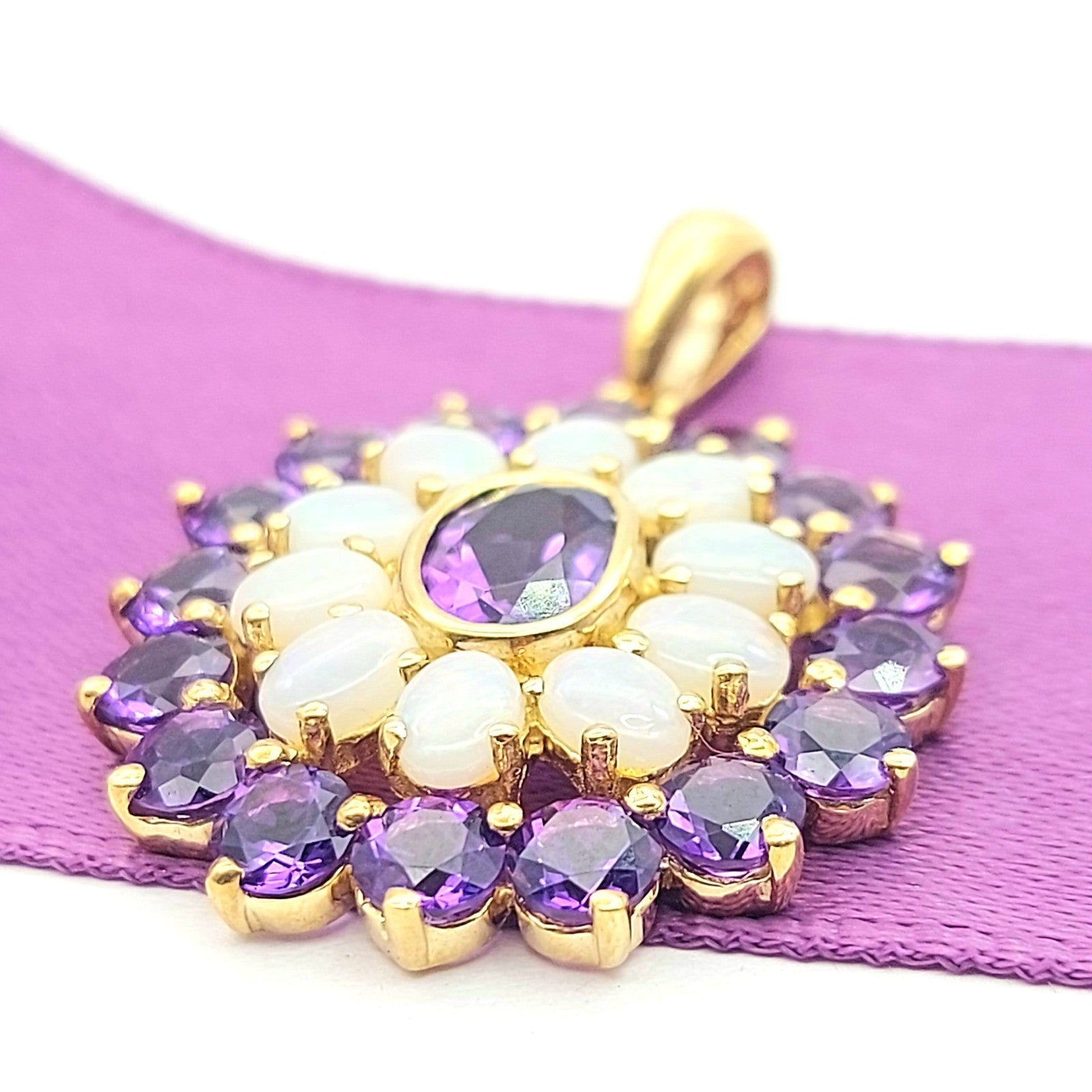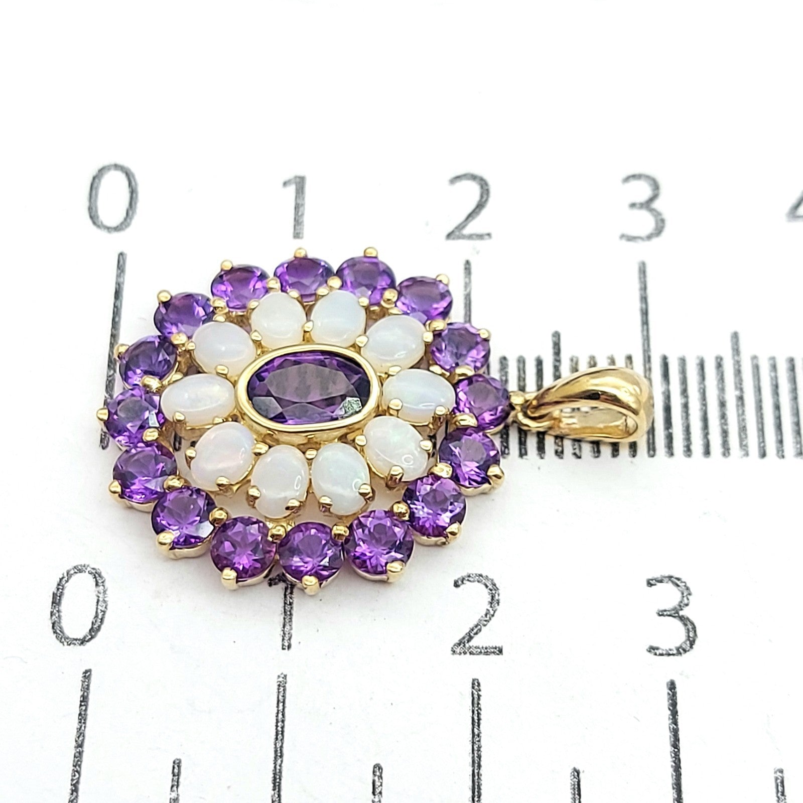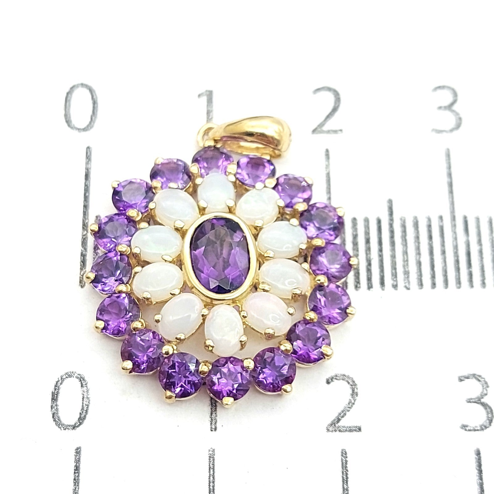 Floral Ornamental-style Yellow Gold 9ct (375, 9K) Opal & Amethyst Pendant