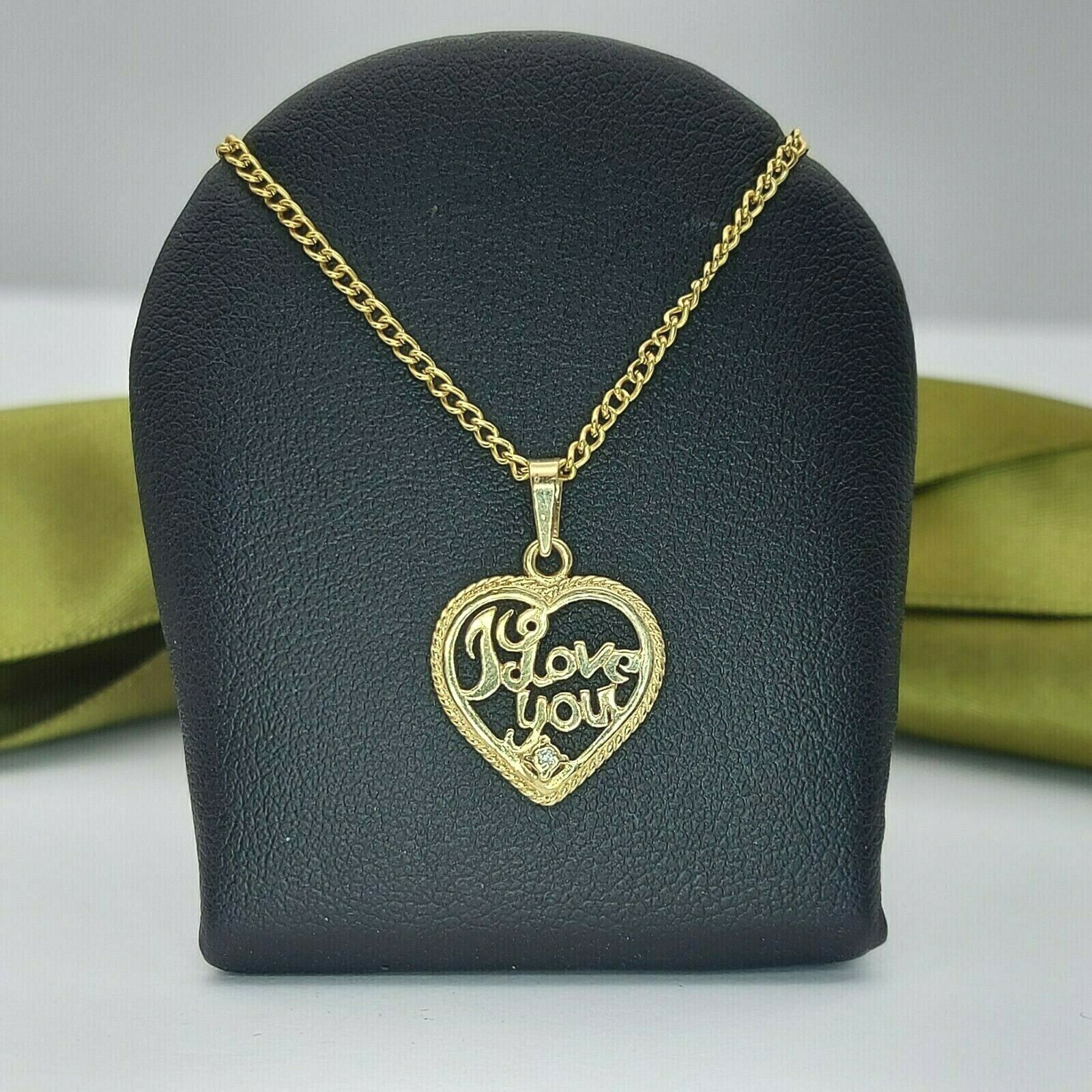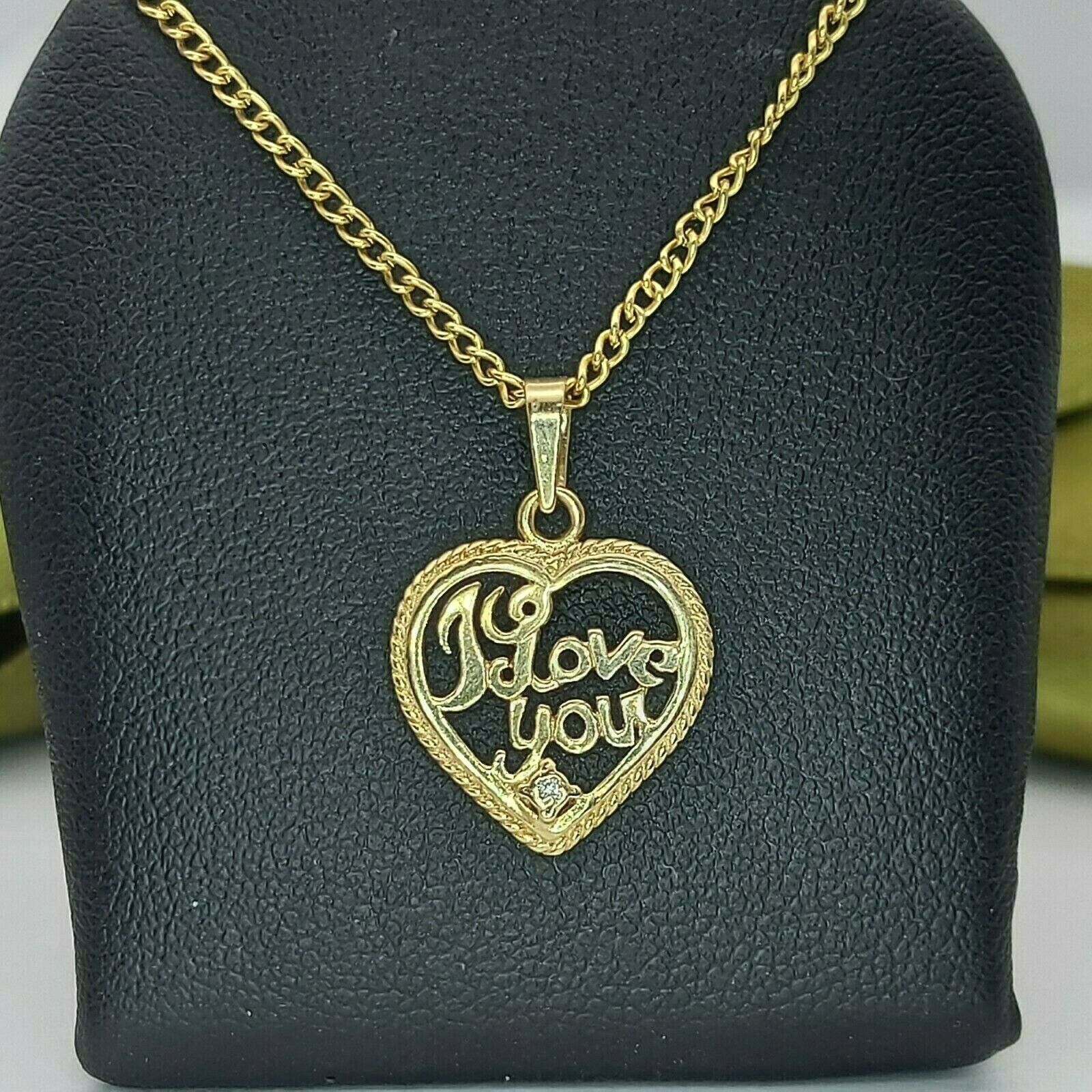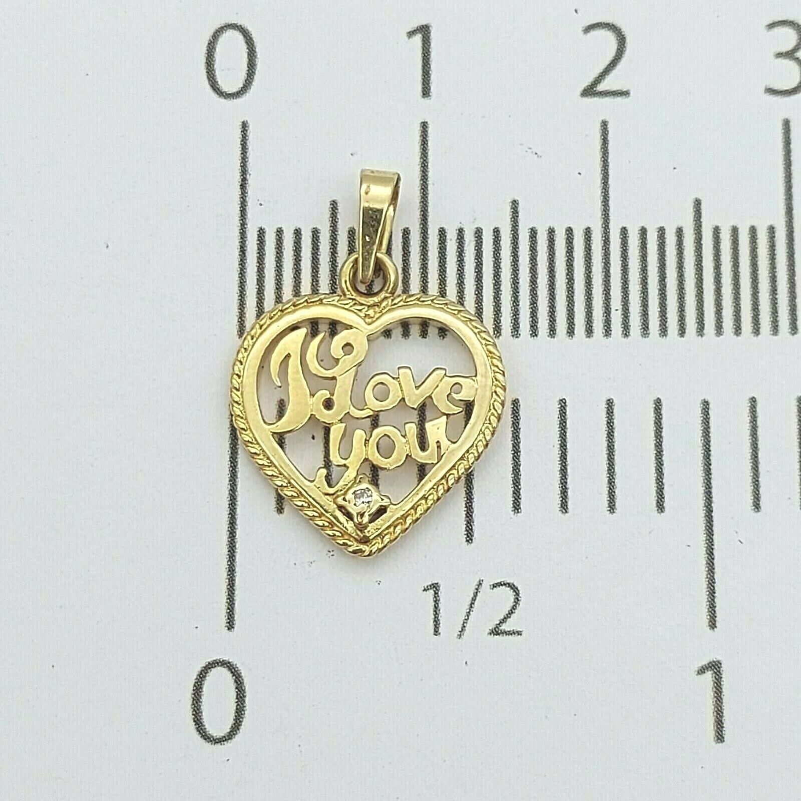 Ladies Pendant 9ct (375,9K) Yellow Gold 'I Love You' Heart Diamond Chip Pendant