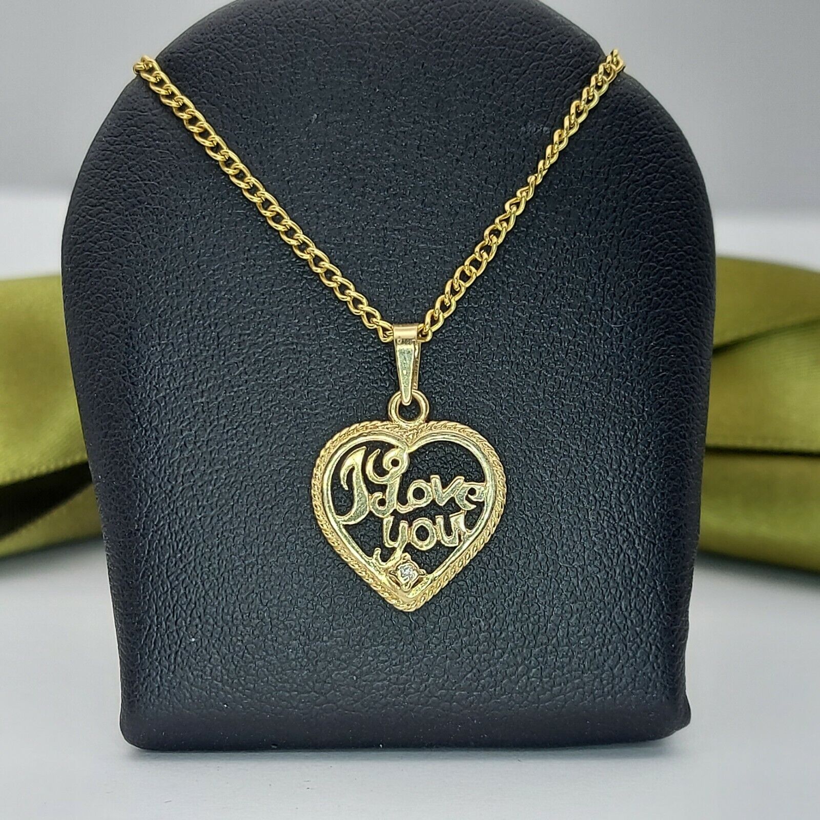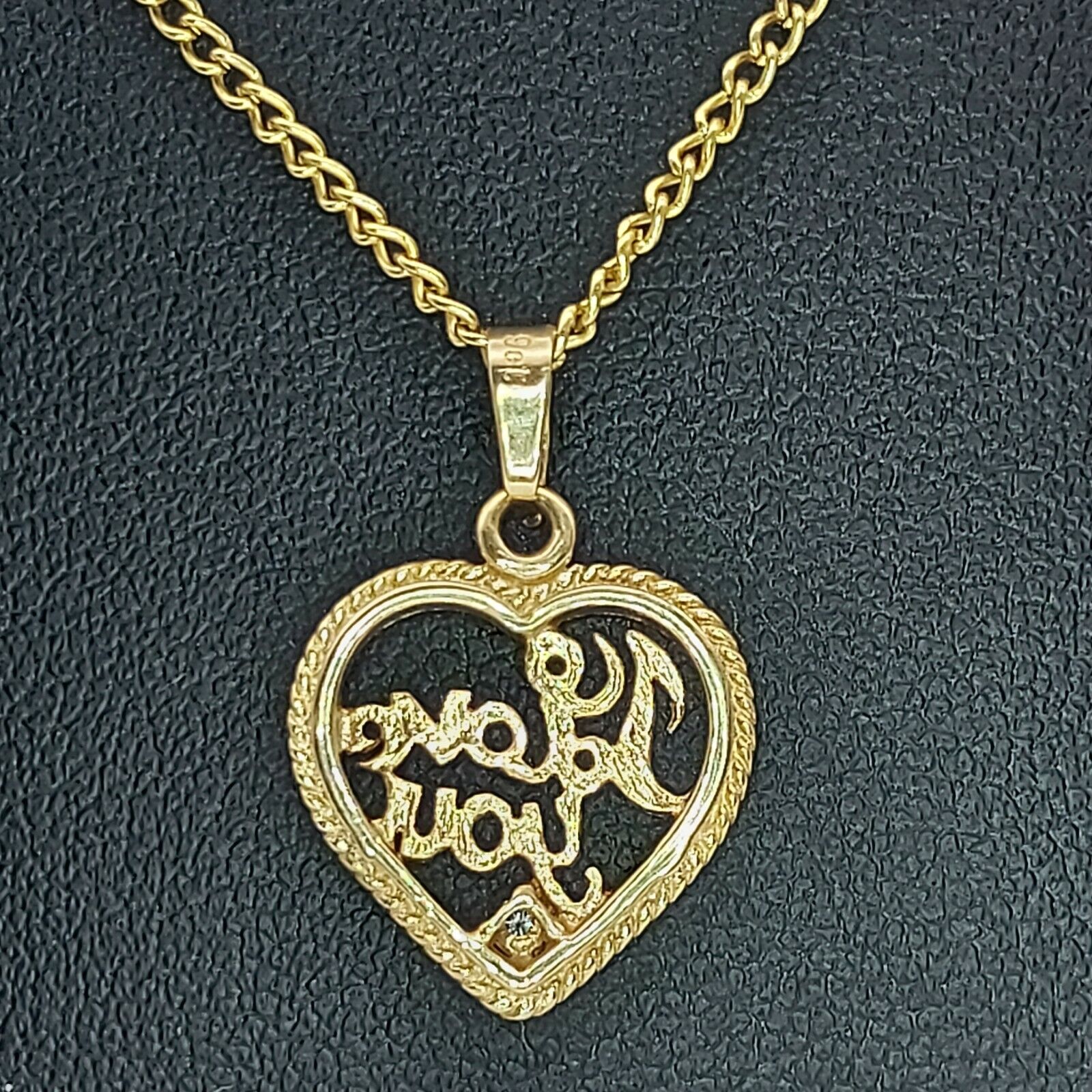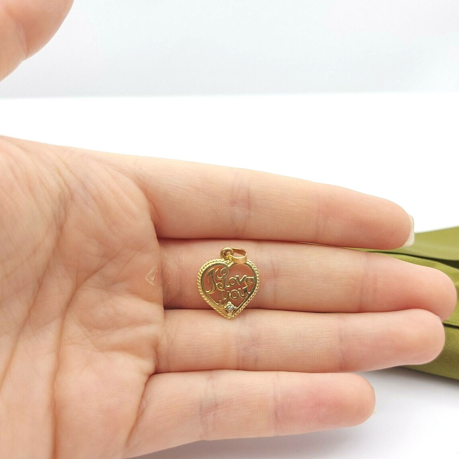 Ladies Pendant 9ct (375,9K) Yellow Gold 'I Love You' Heart Diamond Chip Pendant