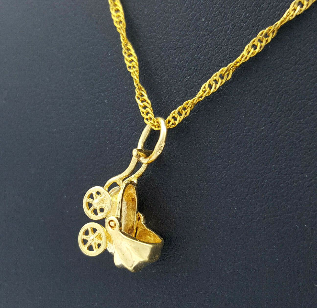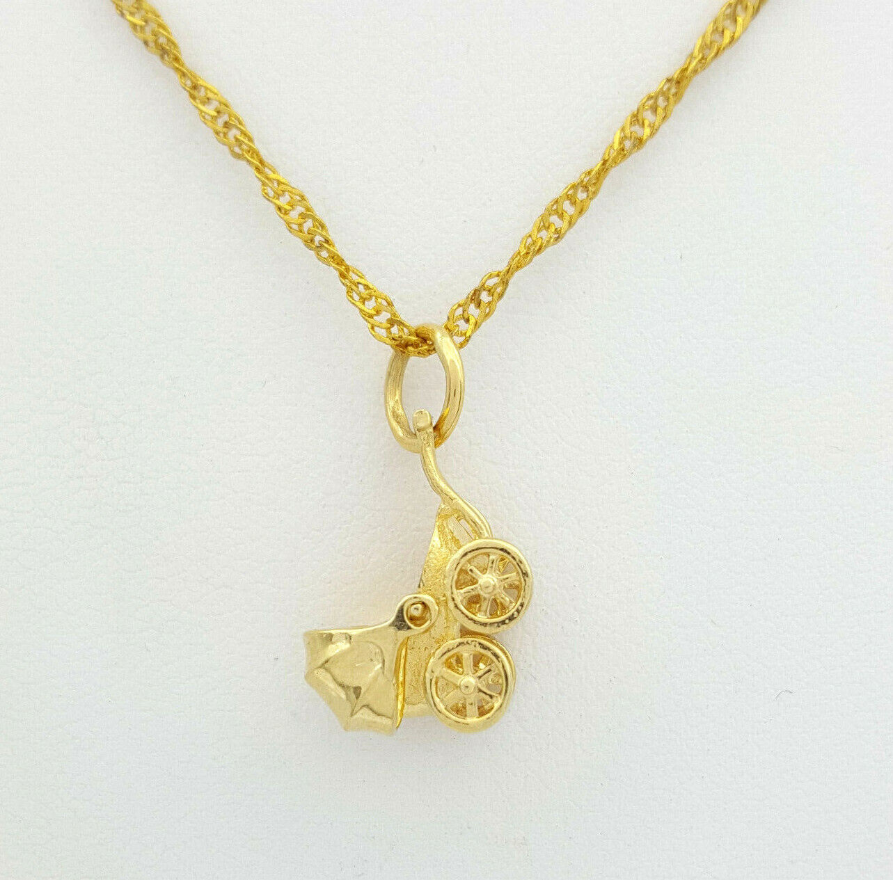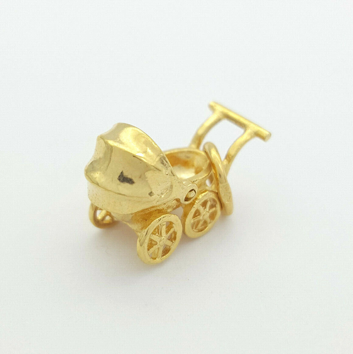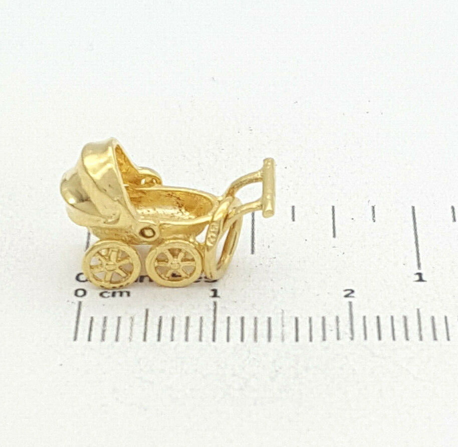 Ladies Pendant 9ct (375, 9K) Yellow Gold Solid Stroller Pram Pendant Charm
