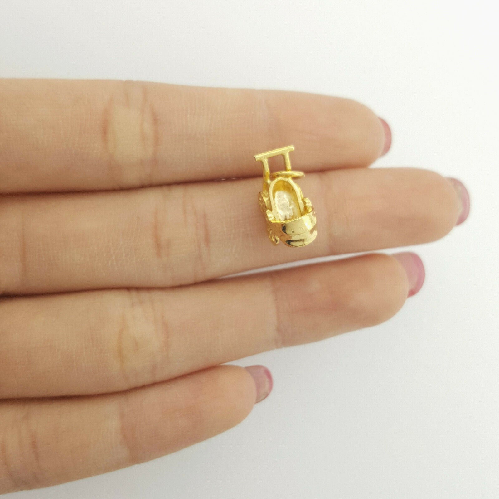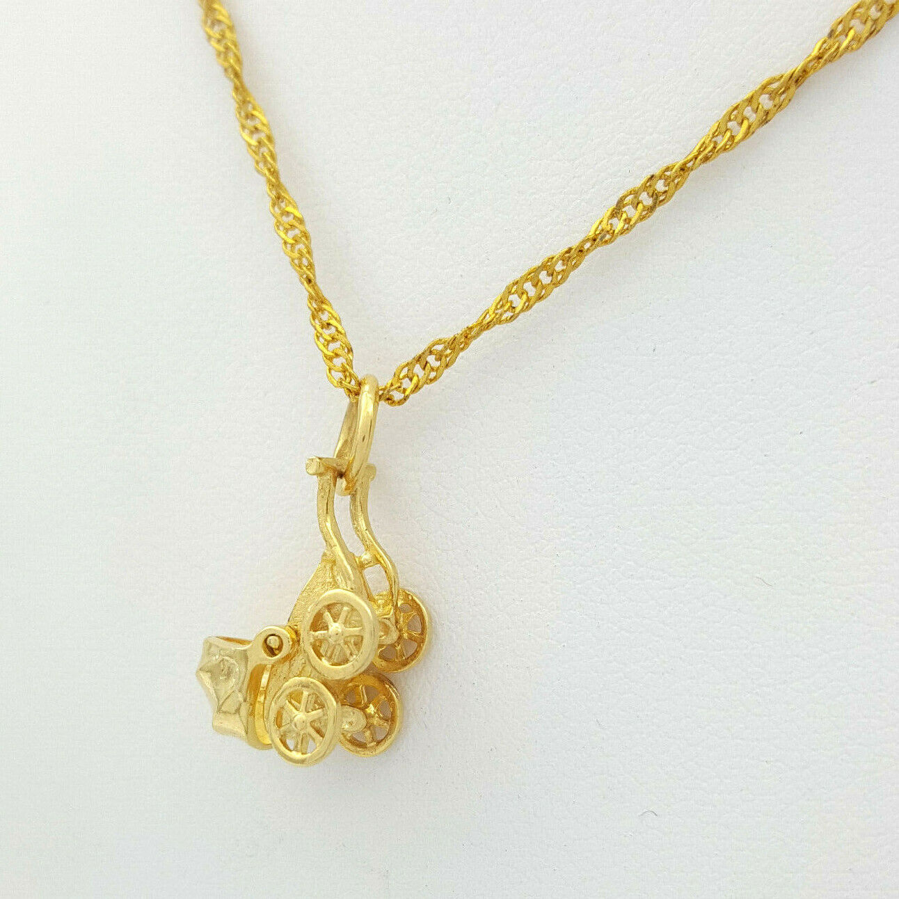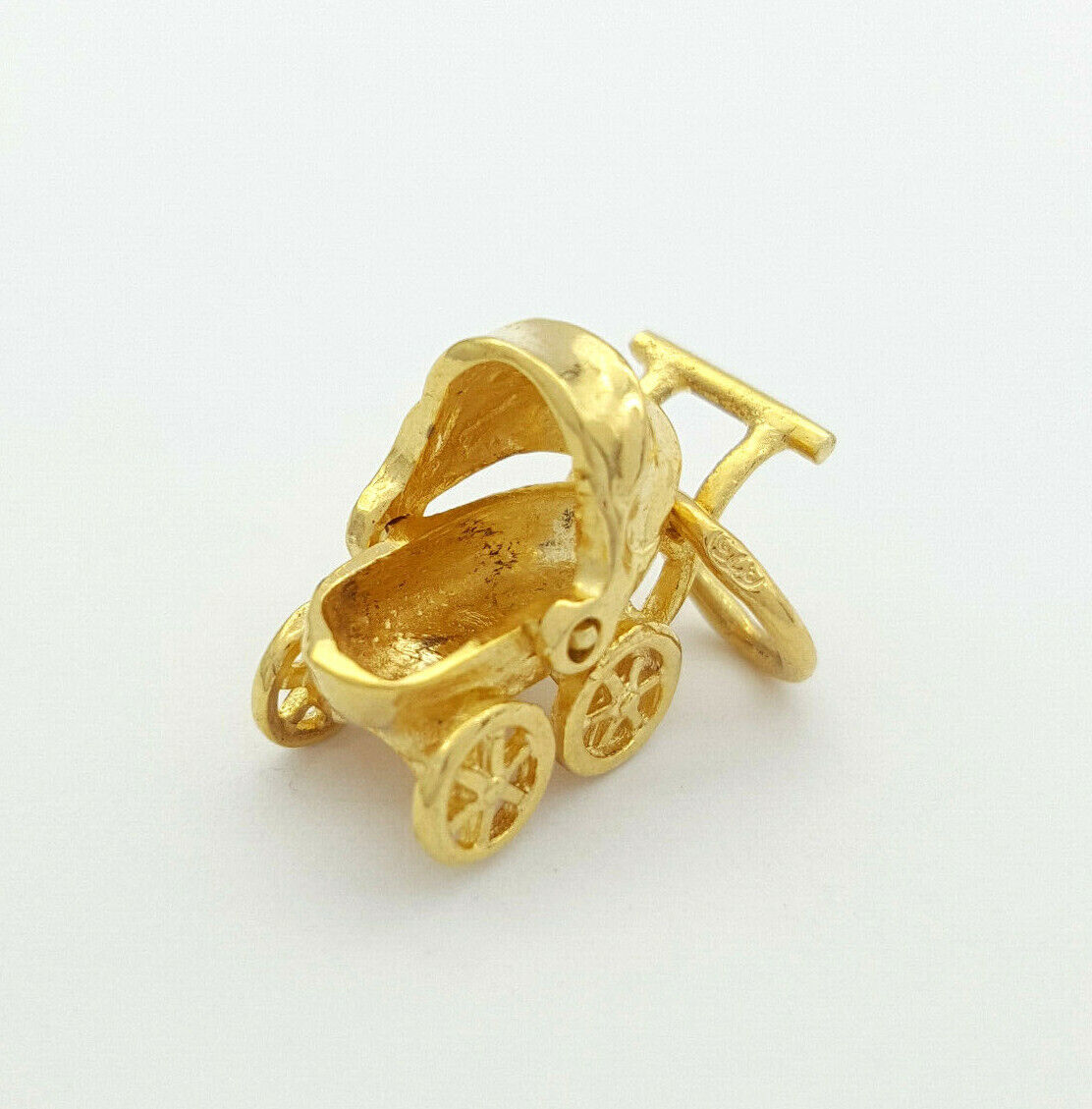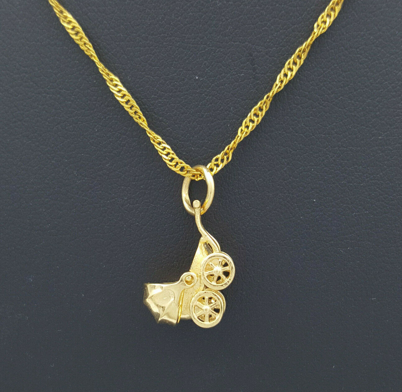 Ladies Pendant 9ct (375, 9K) Yellow Gold Solid Stroller Pram Pendant Charm