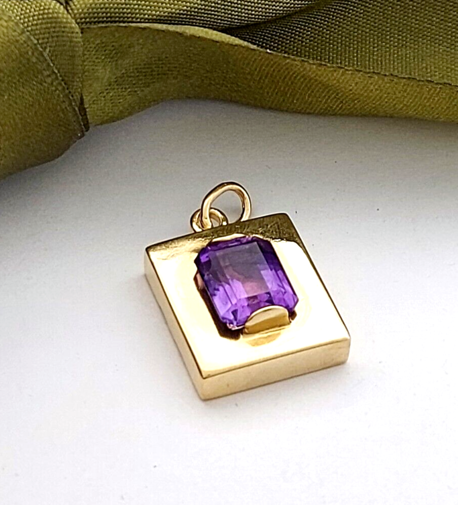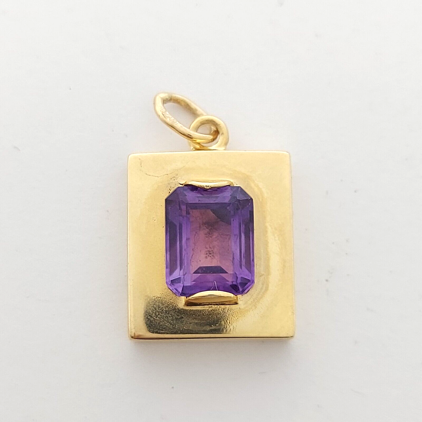 Ladies Square Pendant Yellow Gold 9ct (375, 9K) & Natural Amethyst Pendant