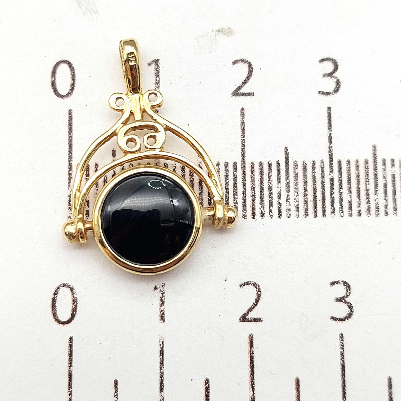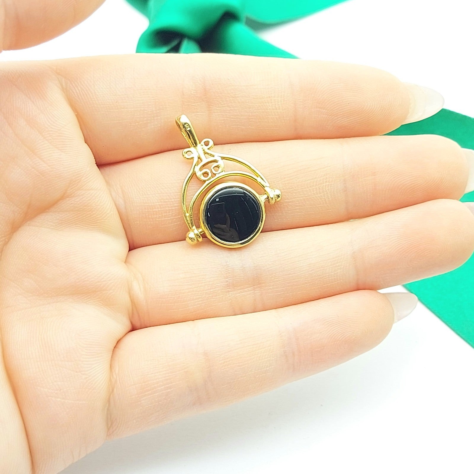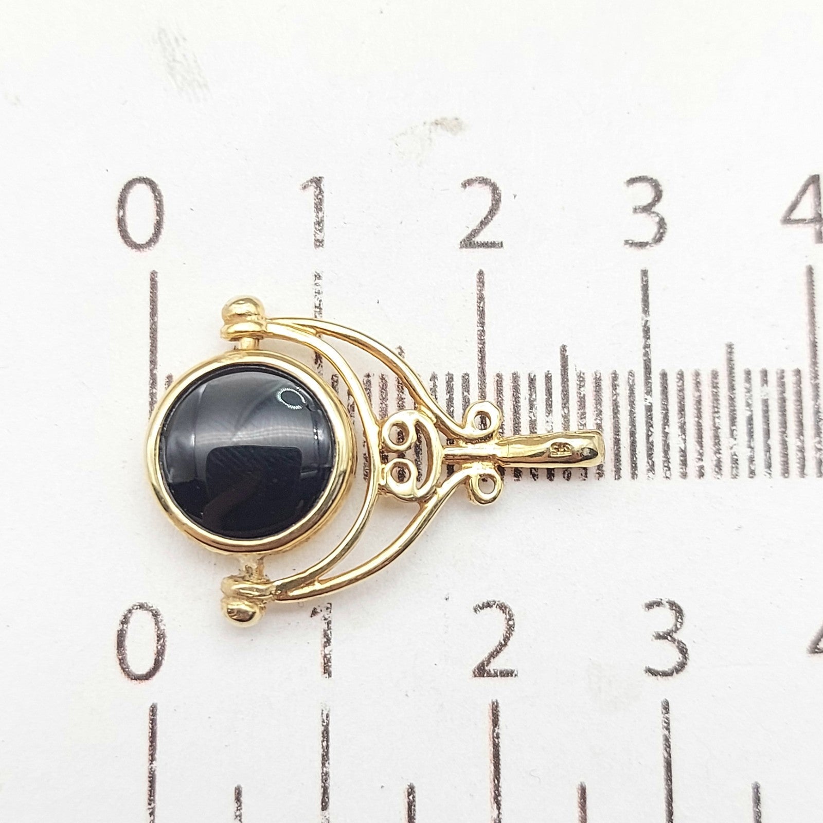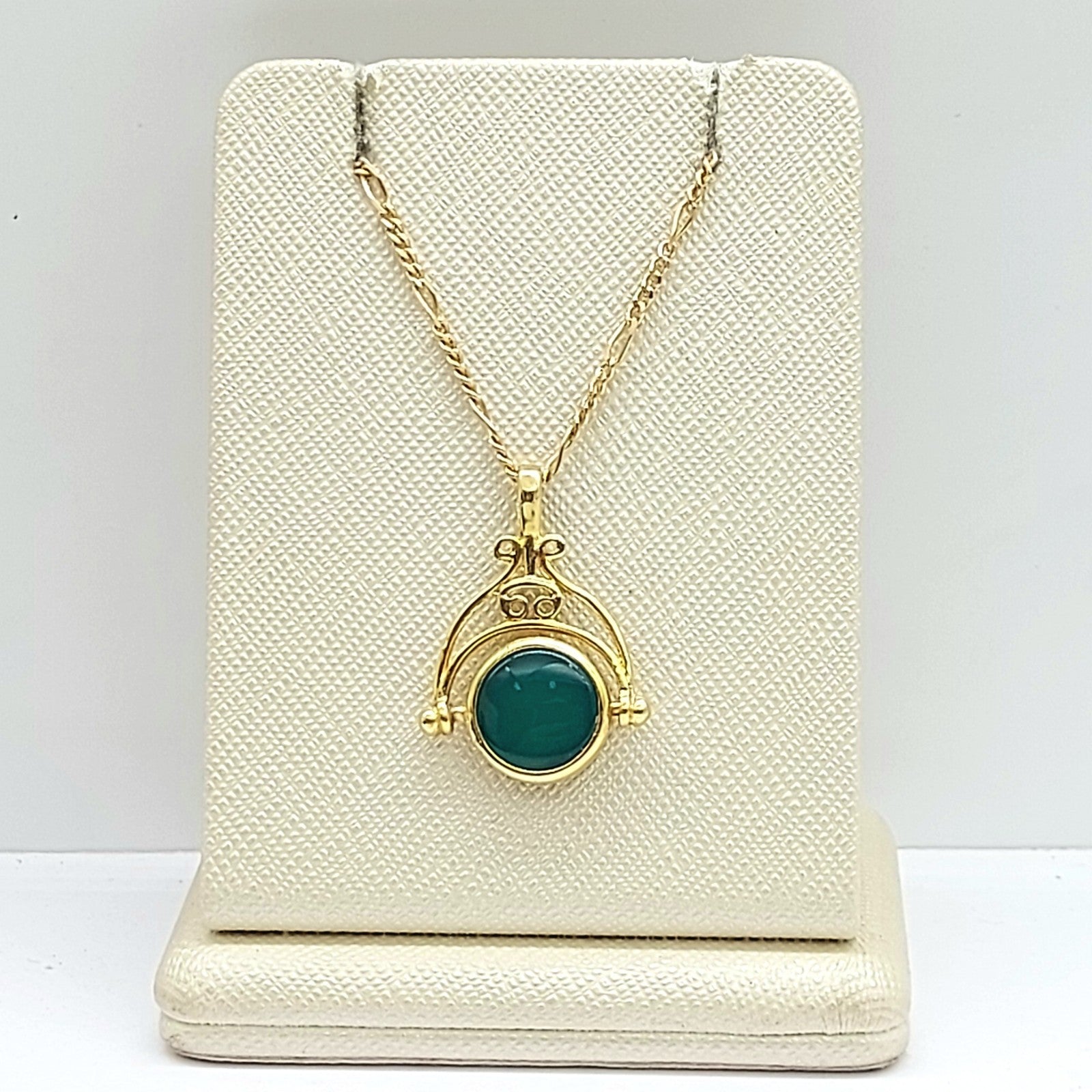 Welcome to the Gold and Diamond Exchange Store! - Sydney Based Store that has experience in the jewellery industry for over 30 years. - Specialising in: selling and buying jewellery, precious metals, coins, bullion, diamonds and watches. - Professionally assessed and tested using the most up to date equipment in our industry, including x-ray testing & diamond testers to ensure the quality and purity of our products. - Most of our items are brand new, from defunct jewellery stores. We offer wholesale and below pricing. Ladies Yellow Gold 9ct (375,9K) Green Agate & Onyx Arch Swivel Pendant This piece has been professionally polished and cleaned to look and function as new and is in immaculate condition. A very rare and well-made good condition. This pendant is hallmarked '375' indicting the purity of the gold. Pendant for sale only, chain not included!