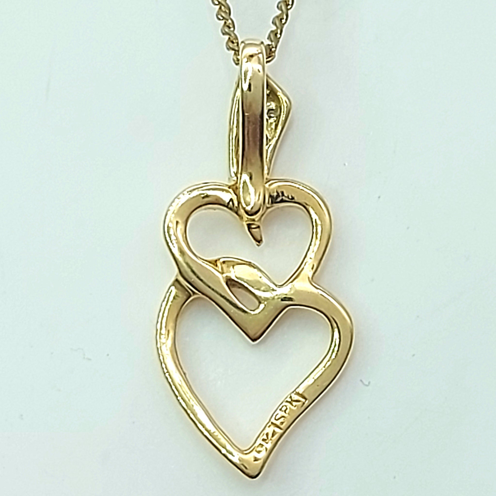 Ladies Yellow Gold 9ct (375, 9K) Interlocking Double Hearts Diamond Pendant