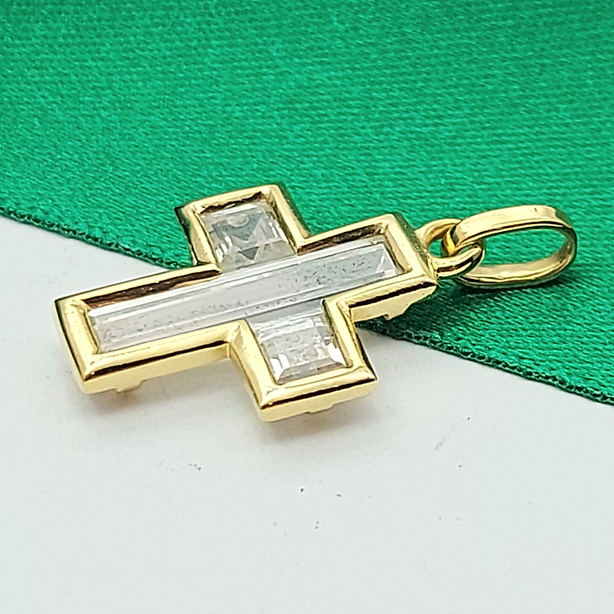 Ladies Yellow Gold 9ct (375, 9K) Rare Diamantes See-Through Cross Pendant
