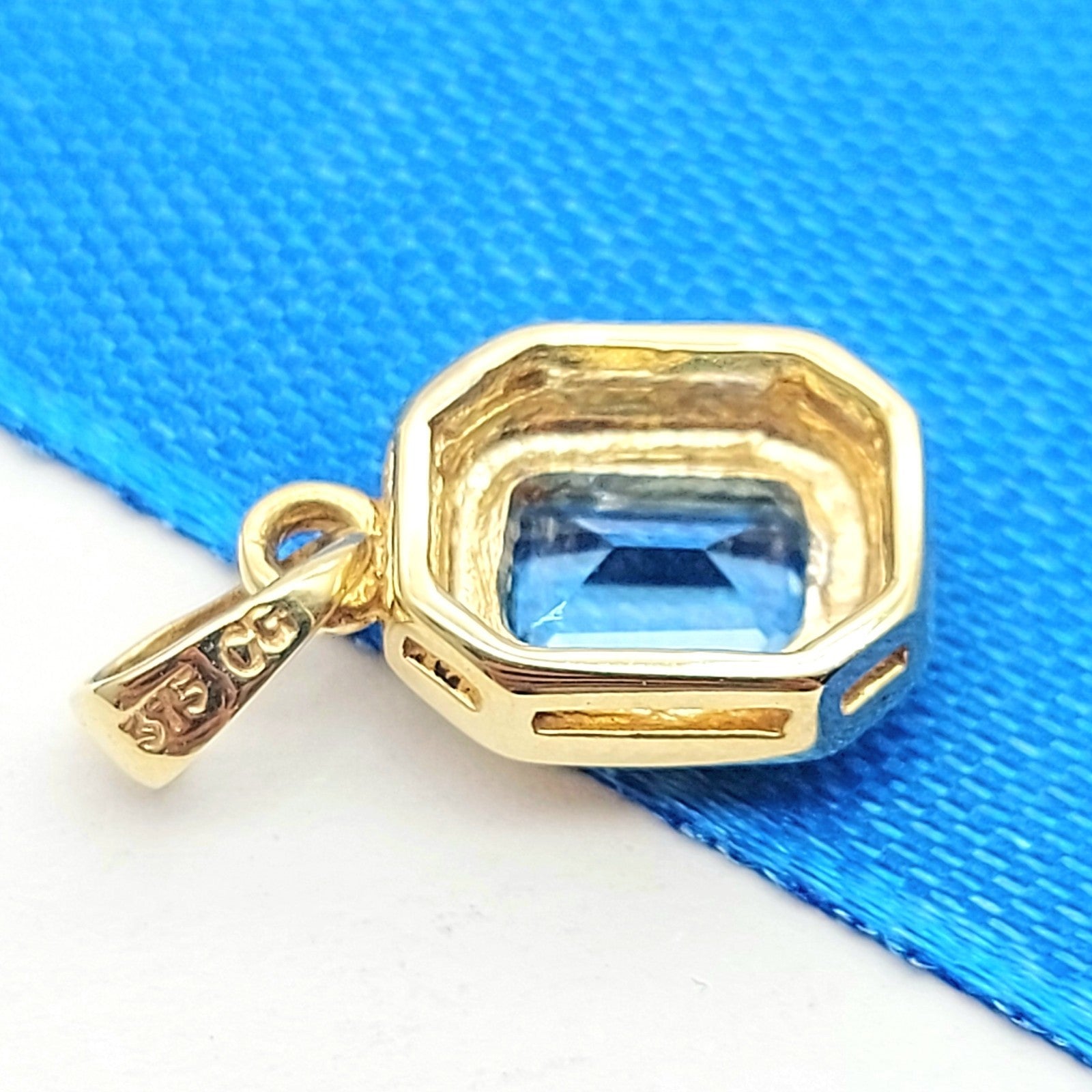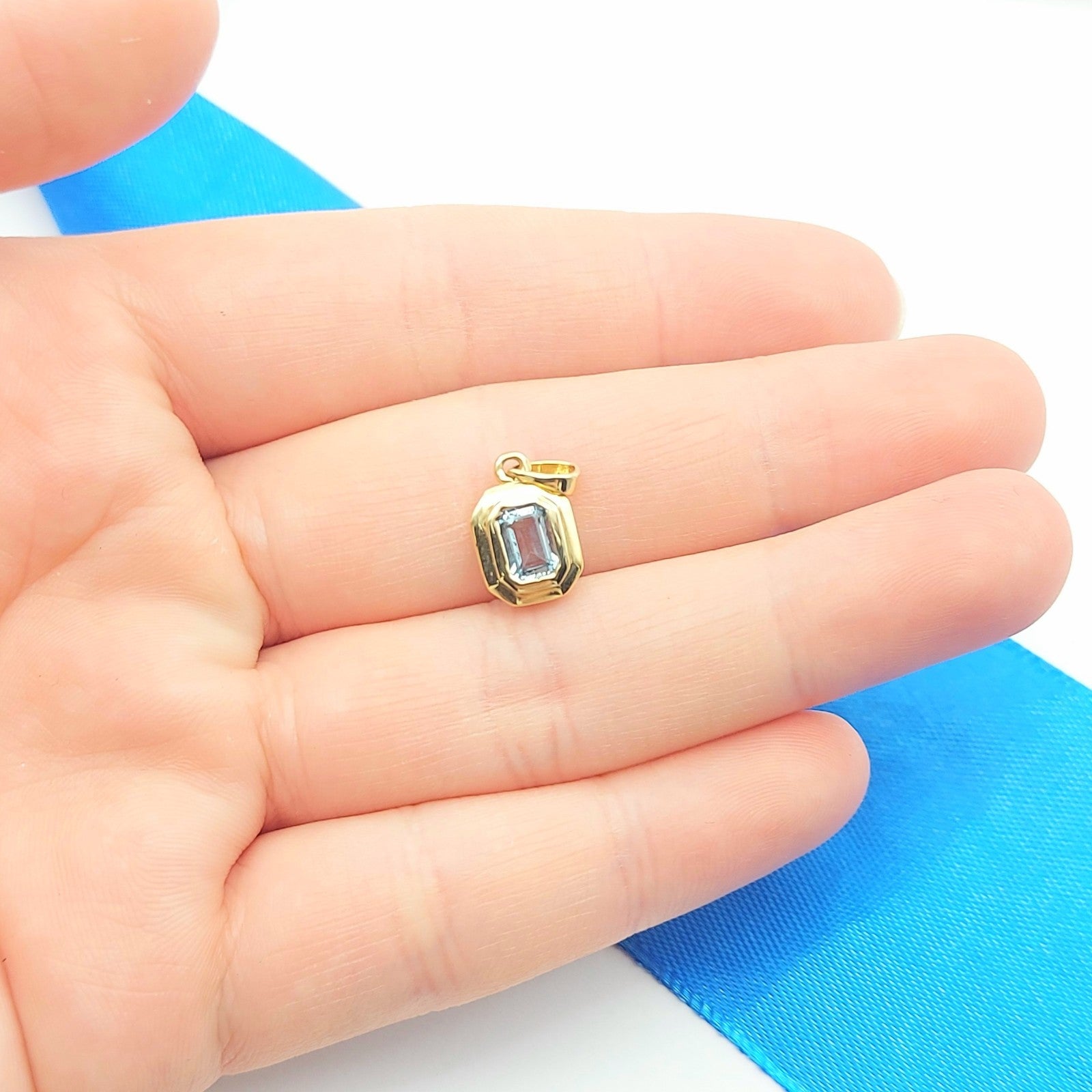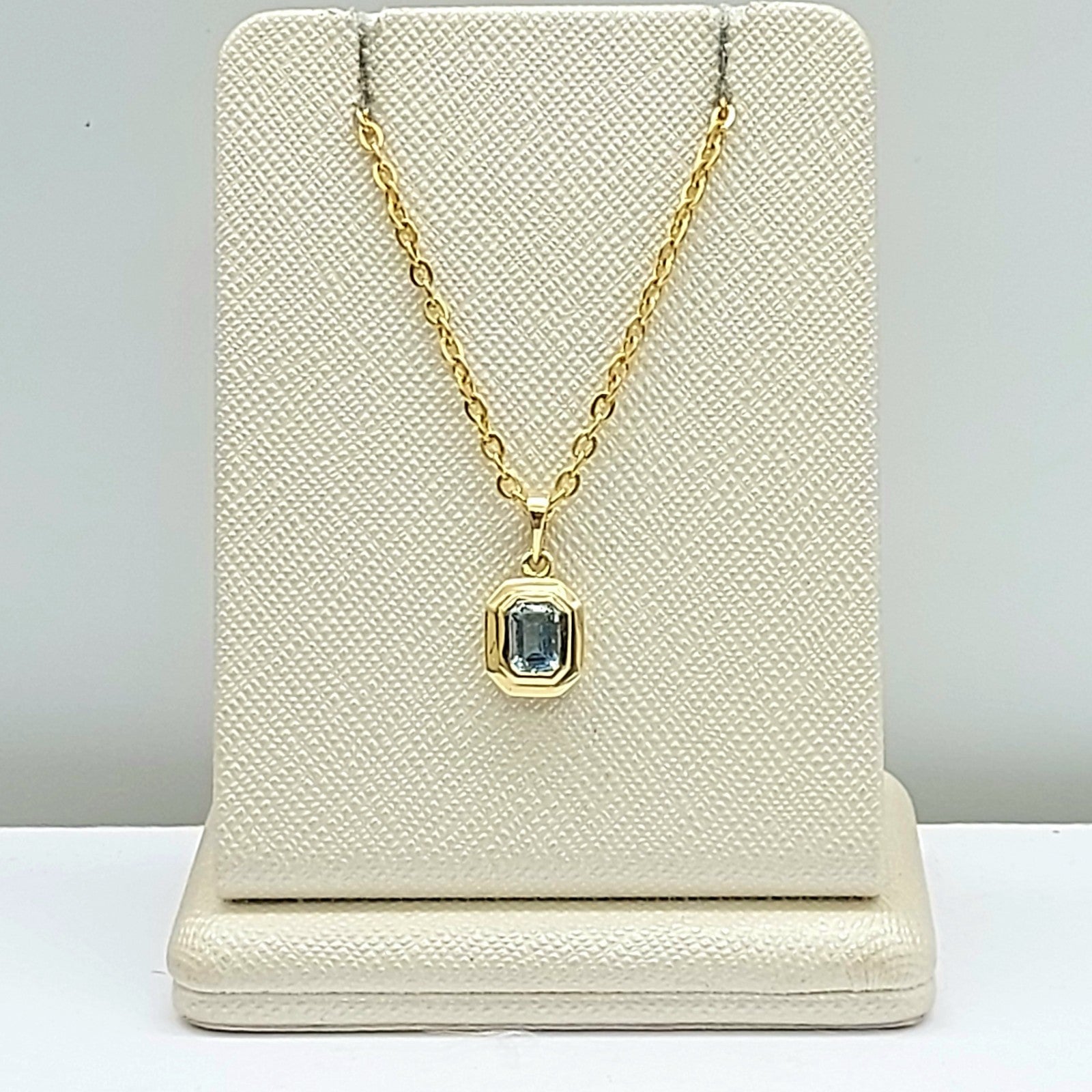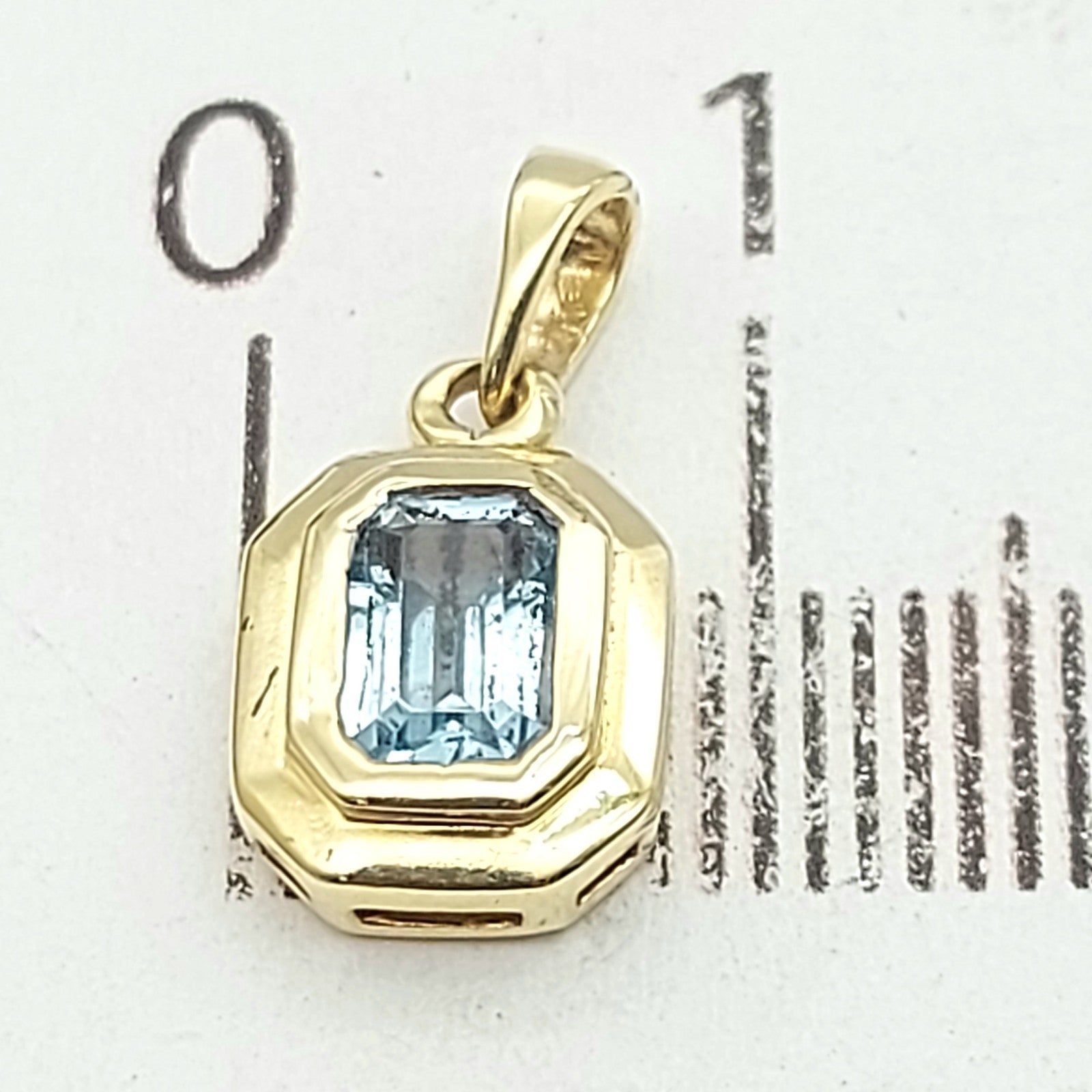 Ladies Yellow Gold 9ct (375, 9K) Solitaire Rectangle Natural Aquamarine Pendant