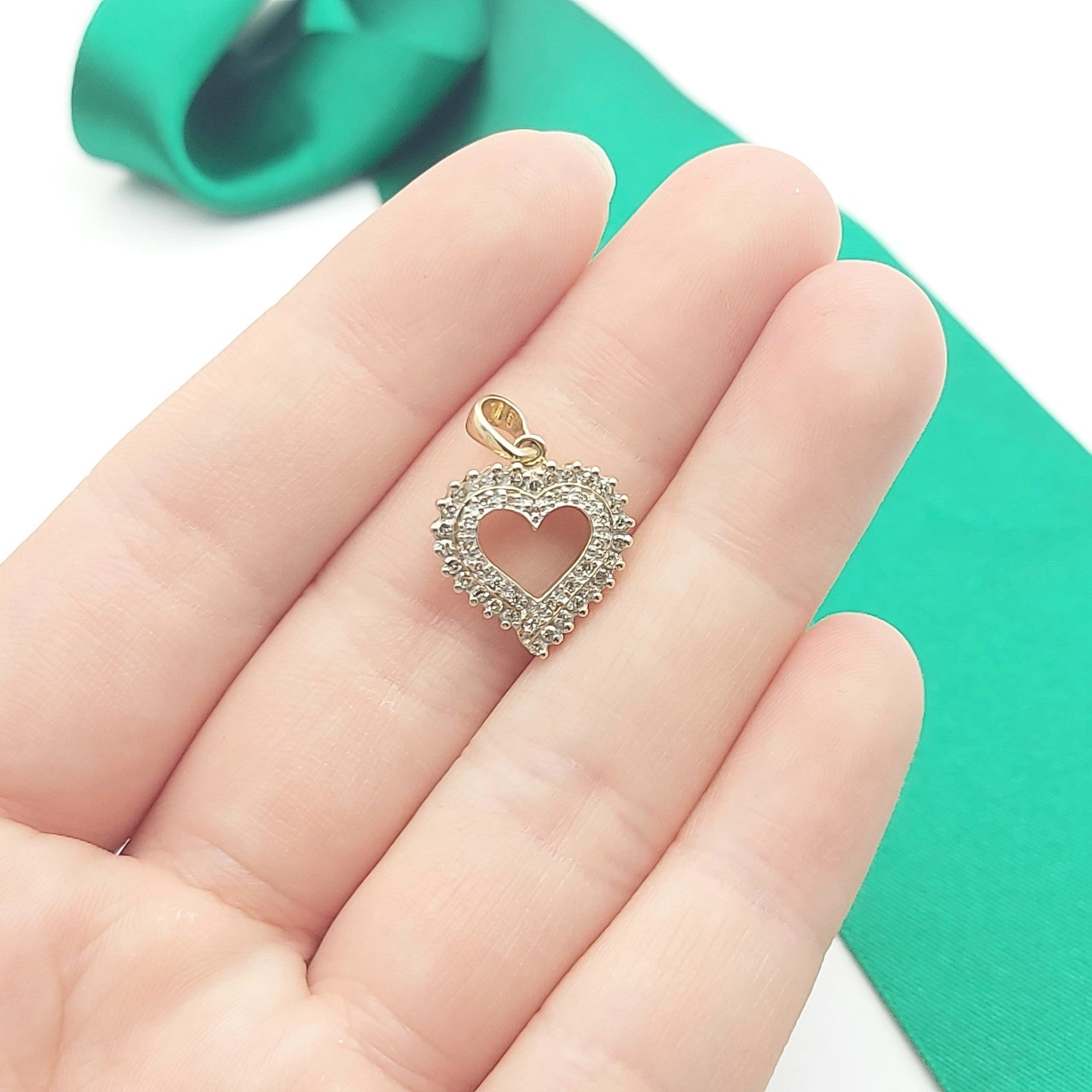 MHJ Yellow Gold 10ct (417, 10k) High Quality Natural Diamonds Open Heart Pendant