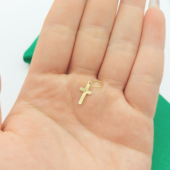 Welcome to the Gold and Diamond Exchange Store! - Sydney Based Store that has experience in the jewellery industry for over 30 years. - Specialising in: selling and buying jewellery, precious metals, coins, bullion, diamonds and watches. - Professionally assessed and tested using the most up to date equipment in our industry, including x-ray testing & diamond testers to ensure the quality and purity of our products. - Most of our items are brand new, from defunct jewellery stores. We offer wholesale and below pricing. Minimal Yellow Gold 18ct (750, 18K) Plain Small Cross Charm This piece has been professionally polished and cleaned to look and function as new and is in immaculate condition. A very rare and well-made good condition. This pendant is hallmarked '18ct' indicting the purity of the gold. Pendant for sale only, chain not included!