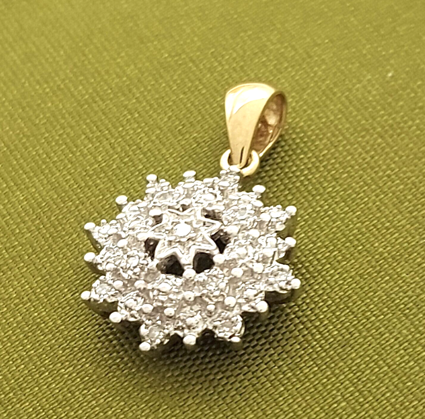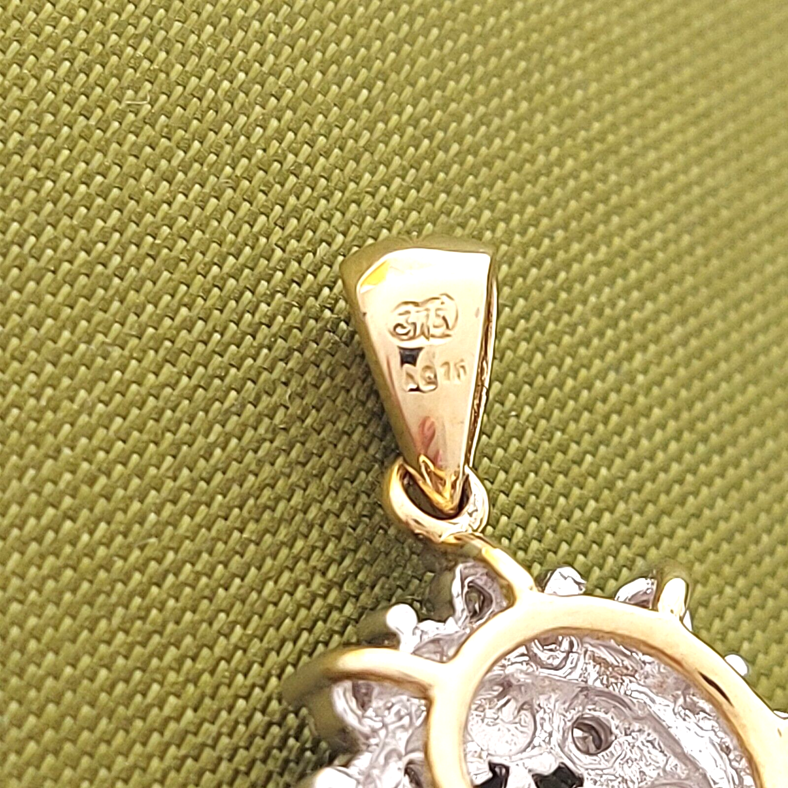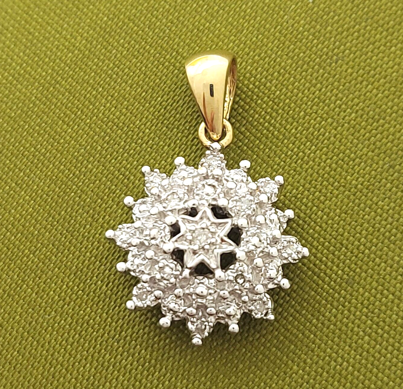 Rare 9ct (375, 9K) Unique White Gold & Yellow Gold Pendant w/ Natural Diamond Chips