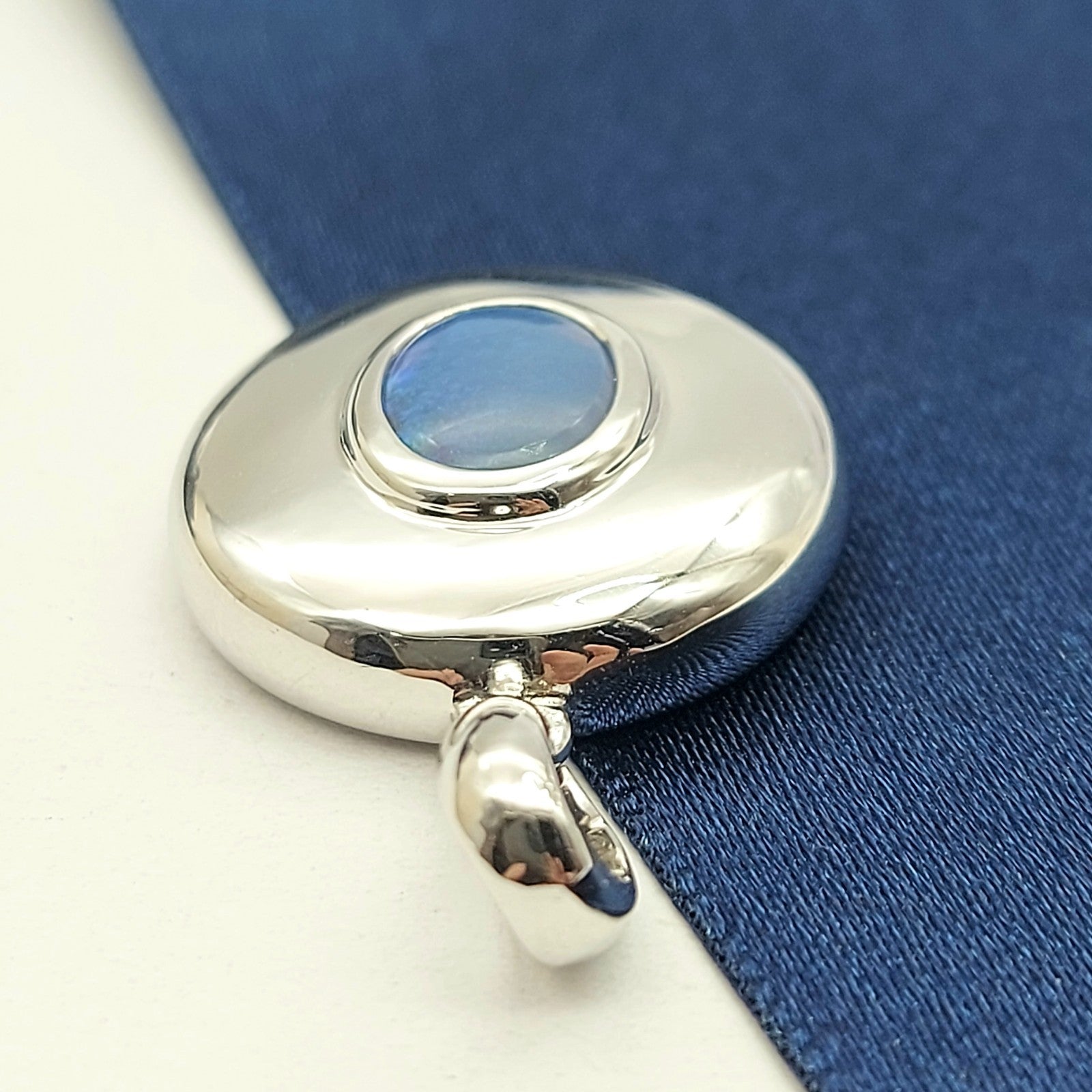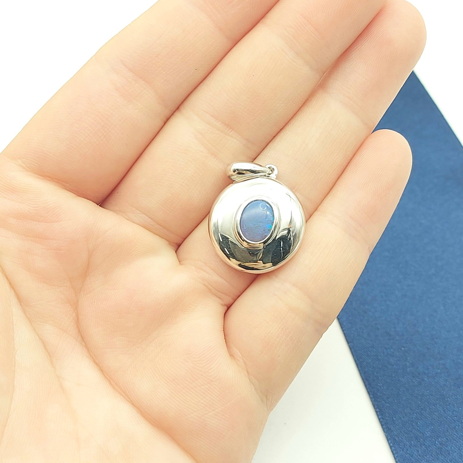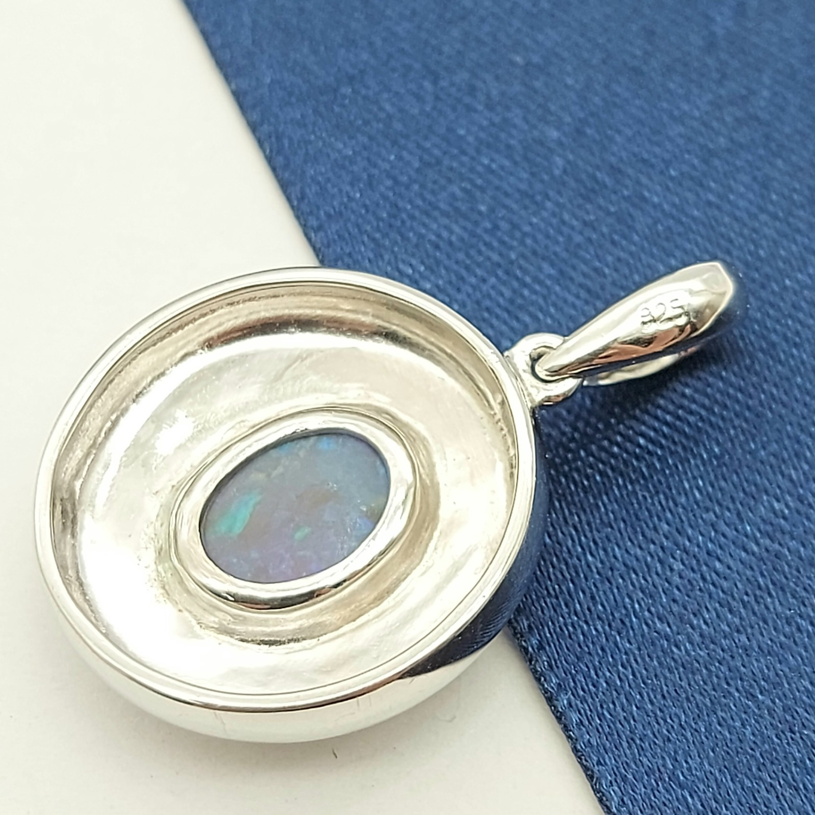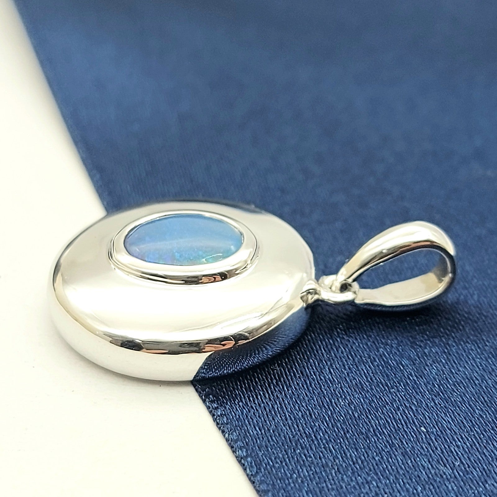 Welcome to the Gold and Diamond Exchange Store! - Sydney Based Store that has experience in the jewellery industry for over 30 years. - Specialising in: selling and buying jewellery, precious metals, coins, bullion, diamonds and watches. - Professionally assessed and tested using the most up to date equipment in our industry, including x-ray testing & diamond testers to ensure the quality and purity of our products. - Most of our items are brand new, from defunct jewellery stores. We offer wholesale and below pricing. Round Sterling Silver (925) Oval Solid Natural Opal Solitaire Pendant This piece has been professionally polished and cleaned to look and function as new and is in immaculate condition. A very rare and well-made good condition pendant.