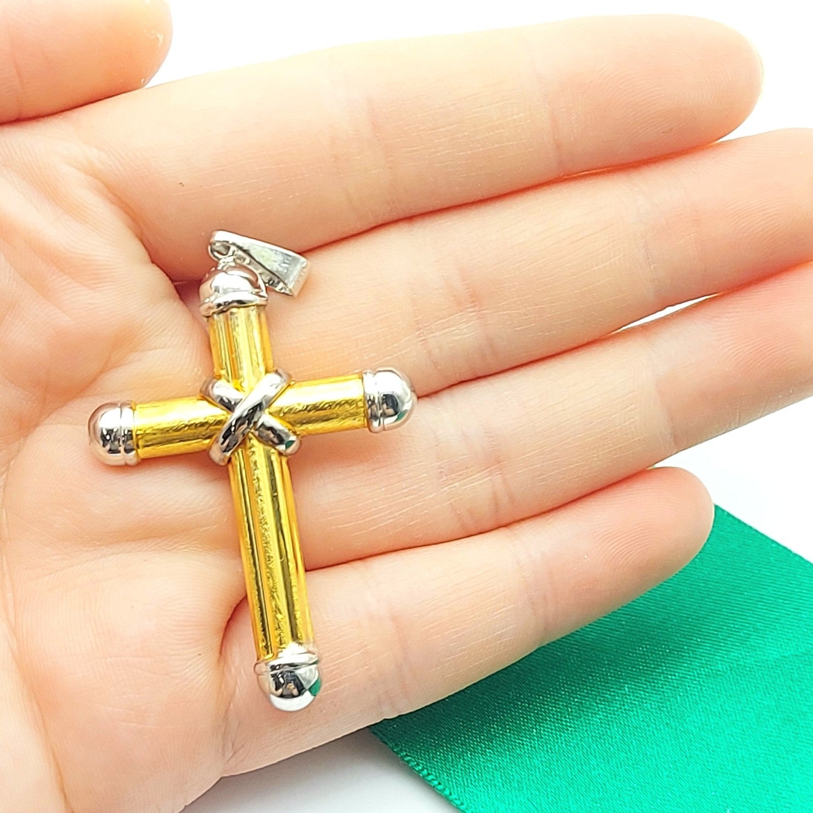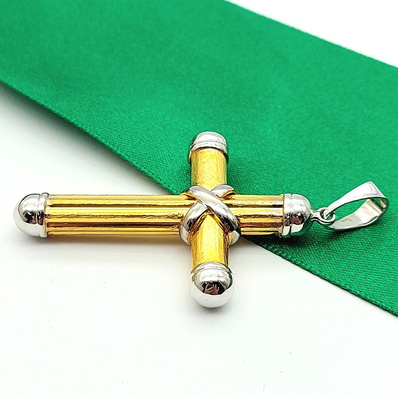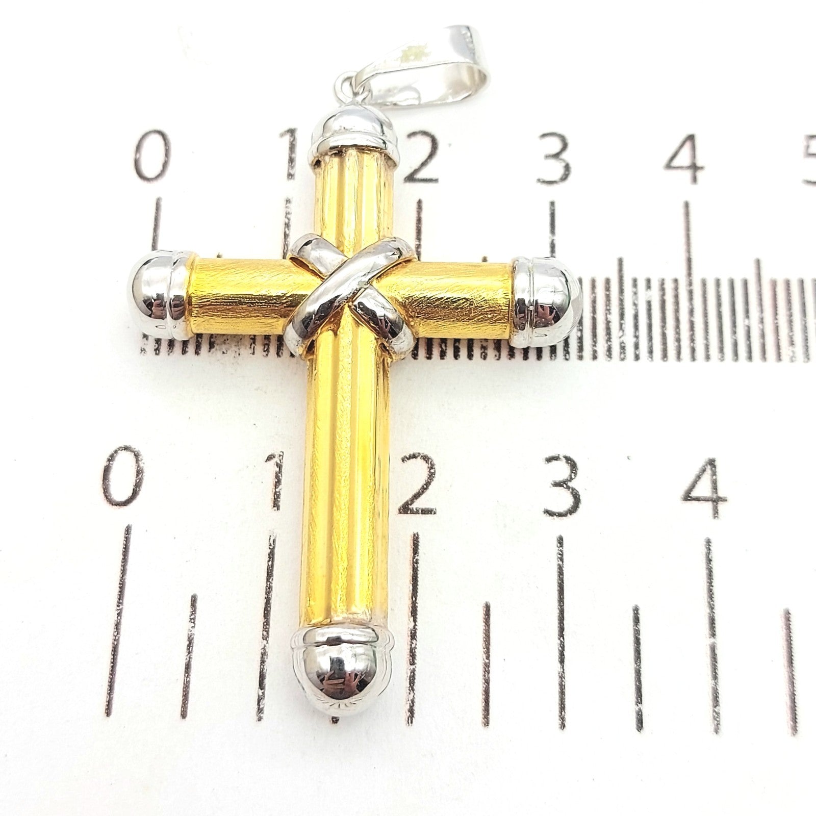 Textured Cross Two-Tone Gold 14ct (585, 14K) Large Puffy Pendant