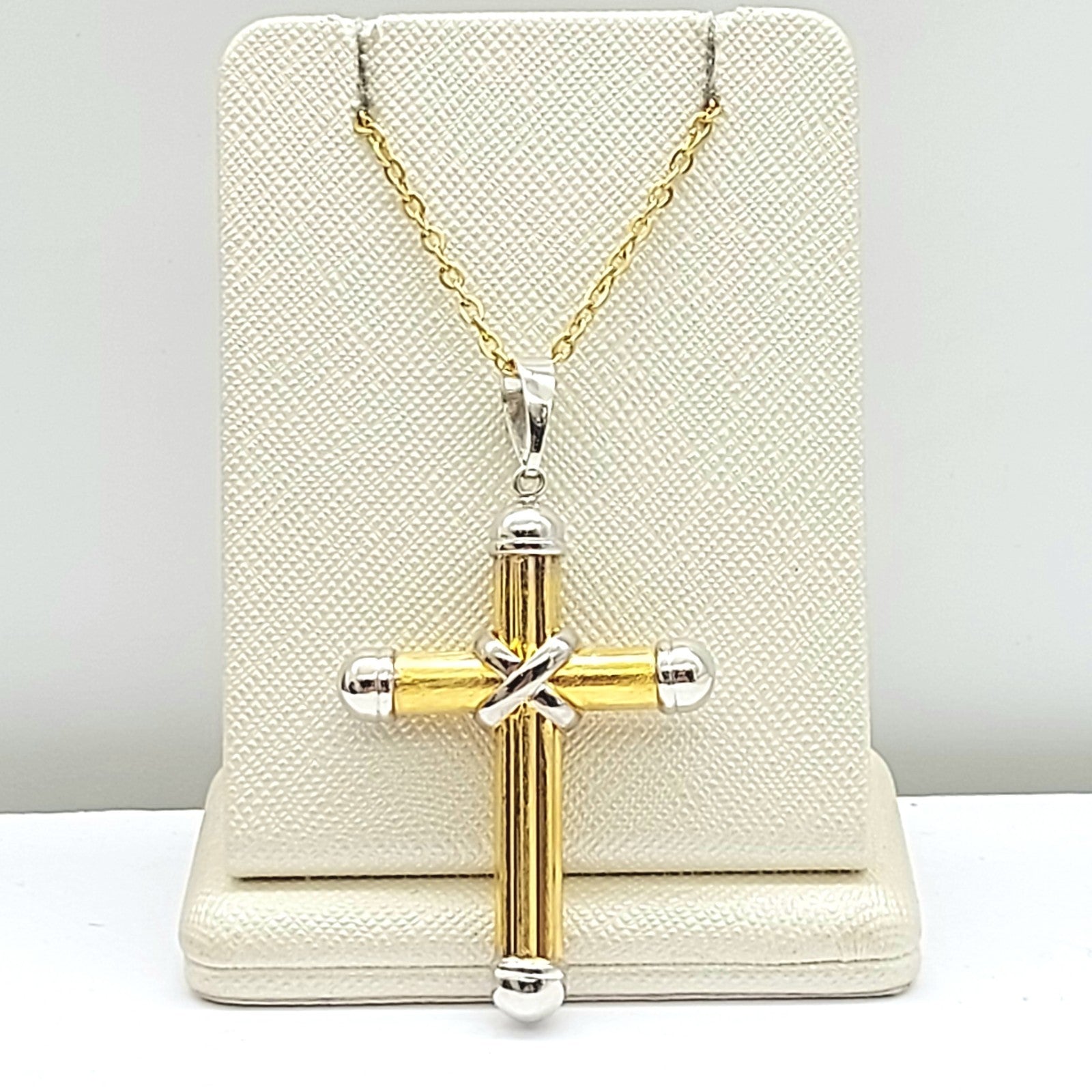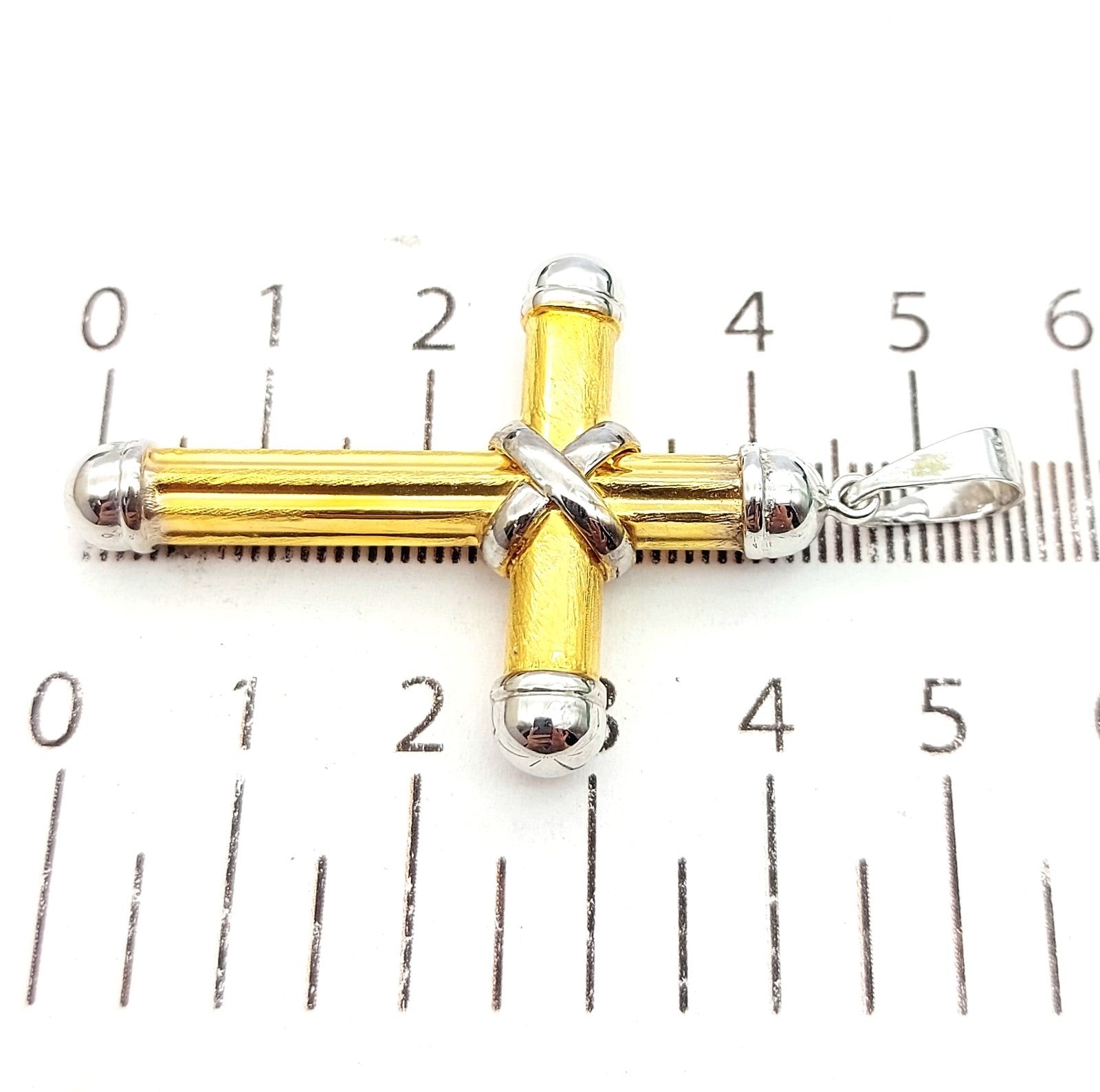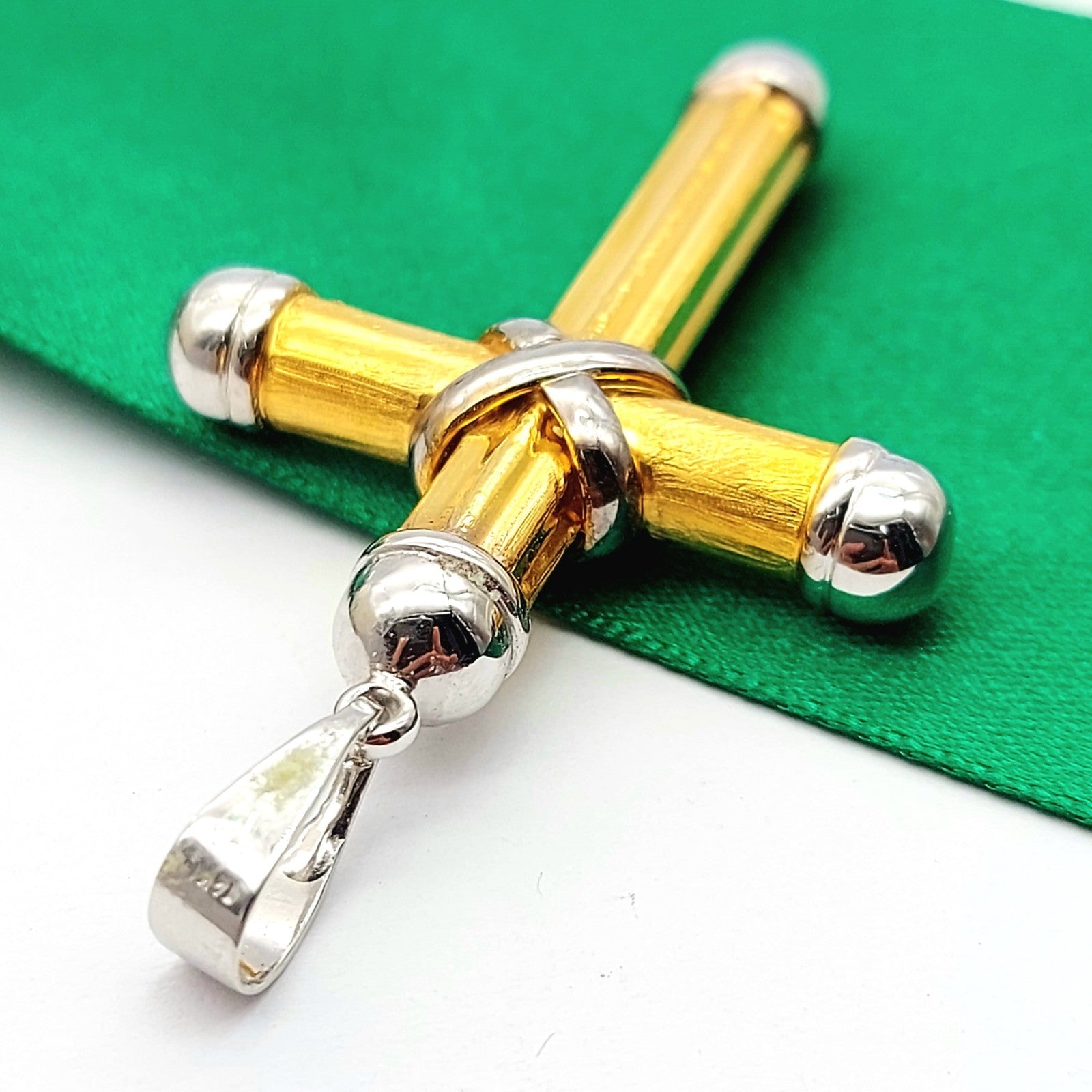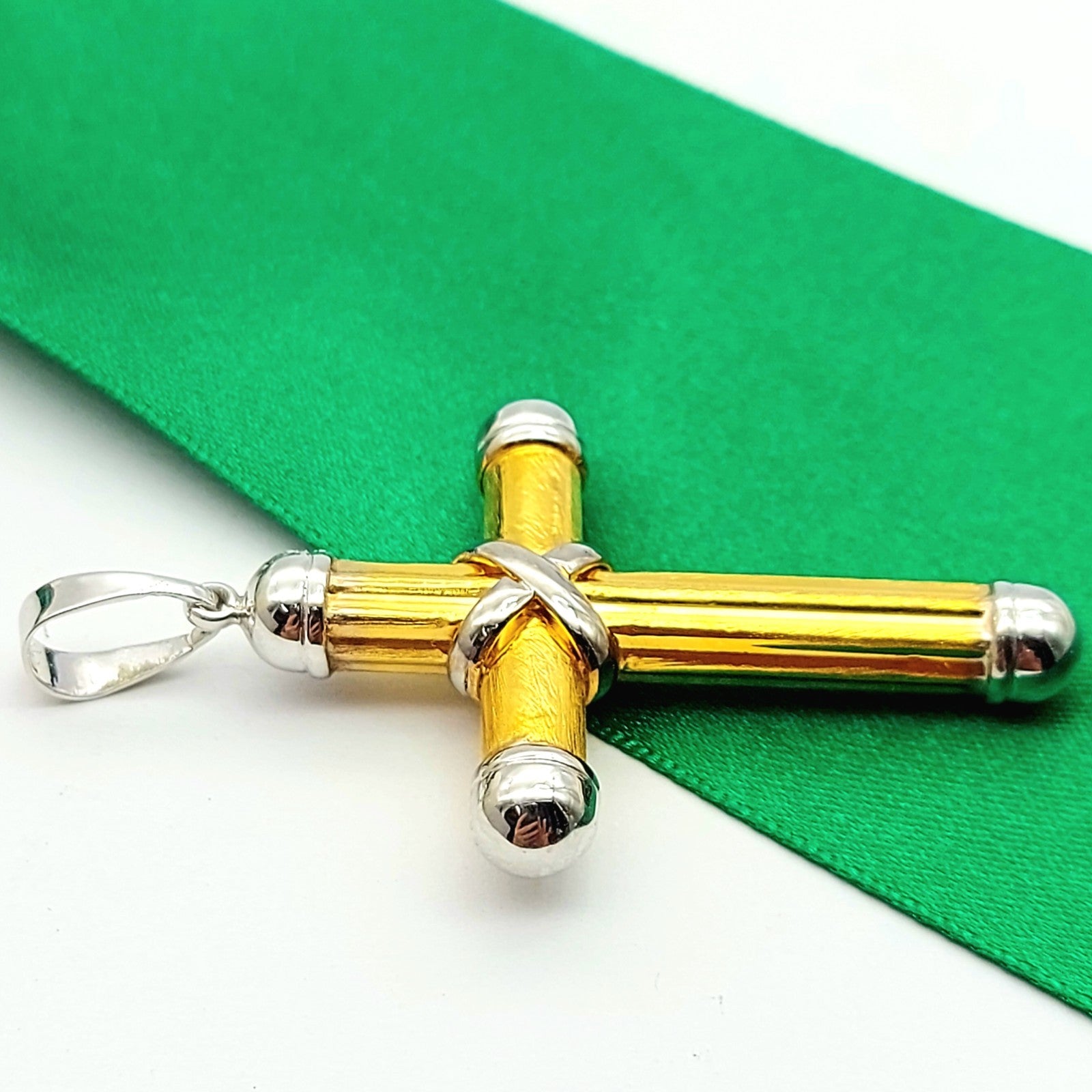 Textured Cross Two-Tone Gold 14ct (585, 14K) Large Puffy Pendant