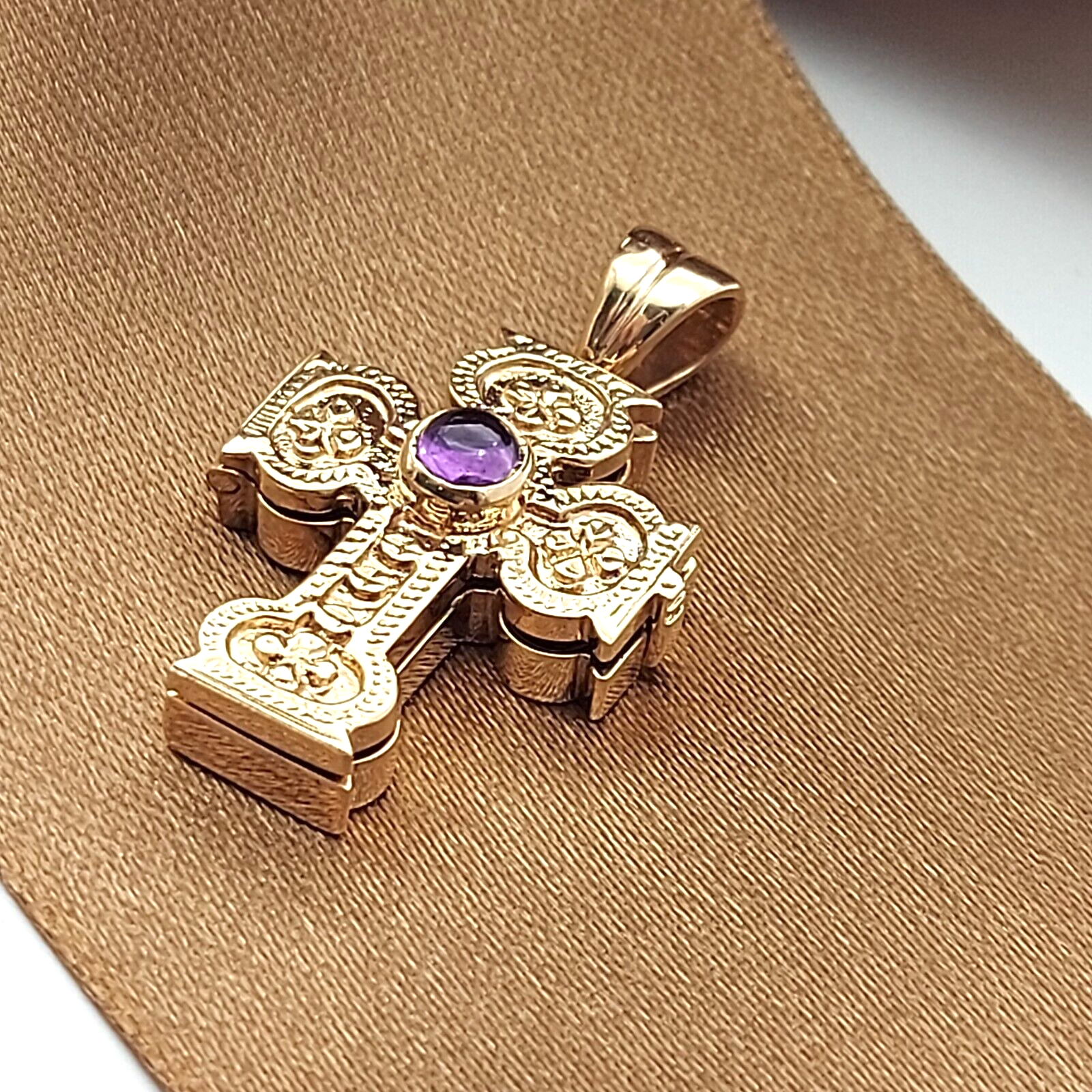 Unique Fold Rose Gold 9ct (375,9k) Filigree Cross Pendant with Natural Amethyst