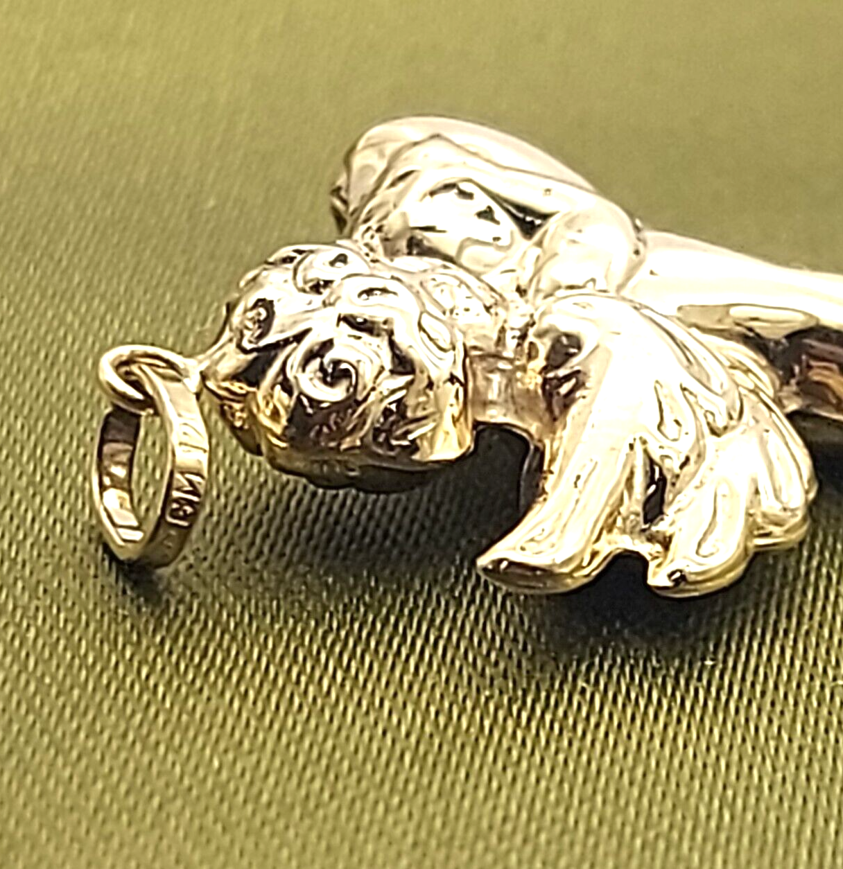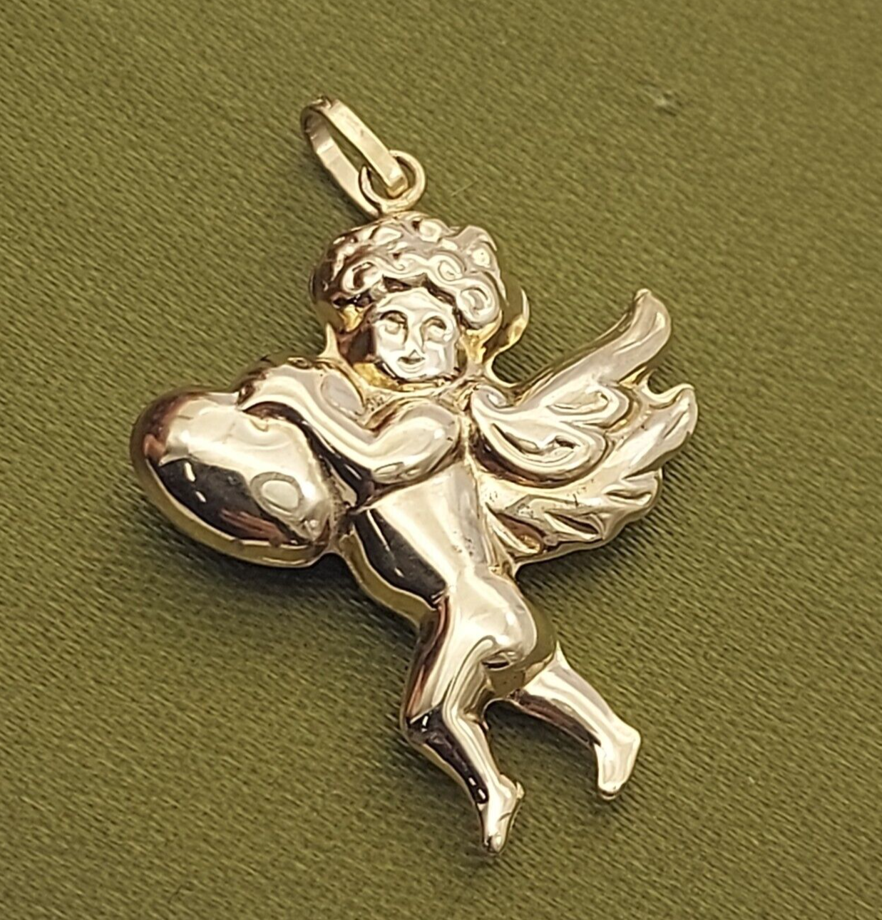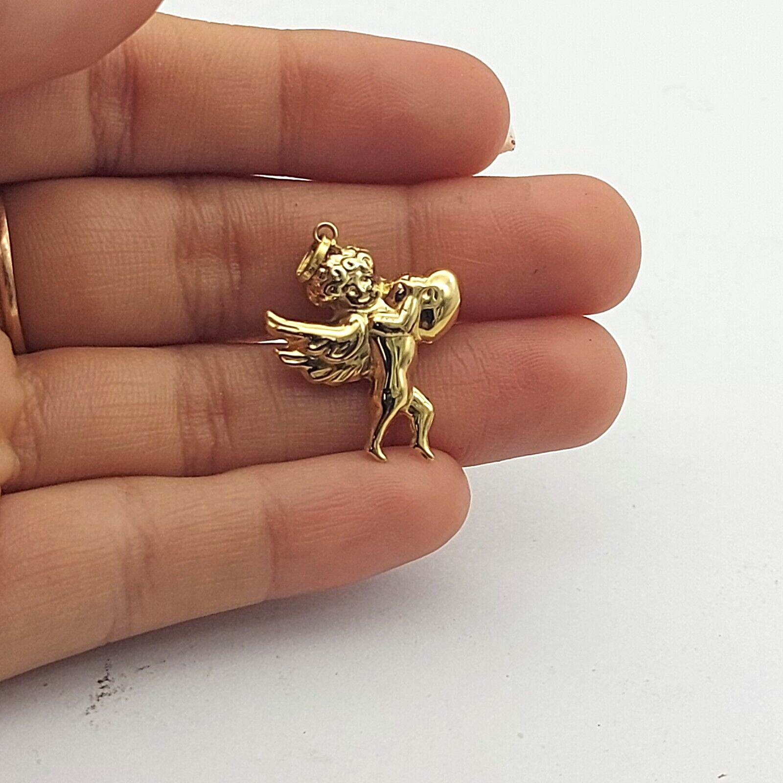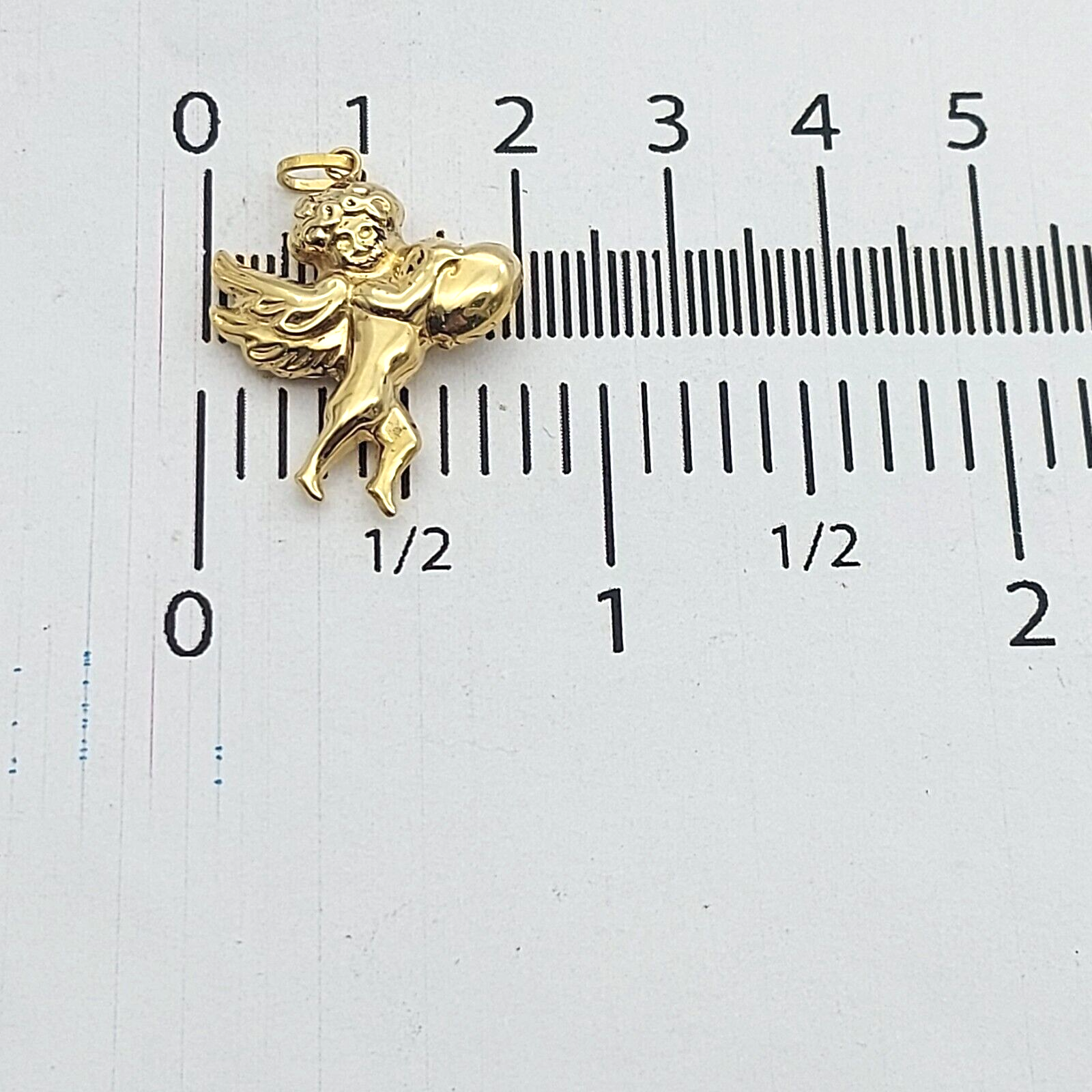 Unisex 9ct (375, 9K) Yellow Gold Baby Cupid Holding Heart Pendant