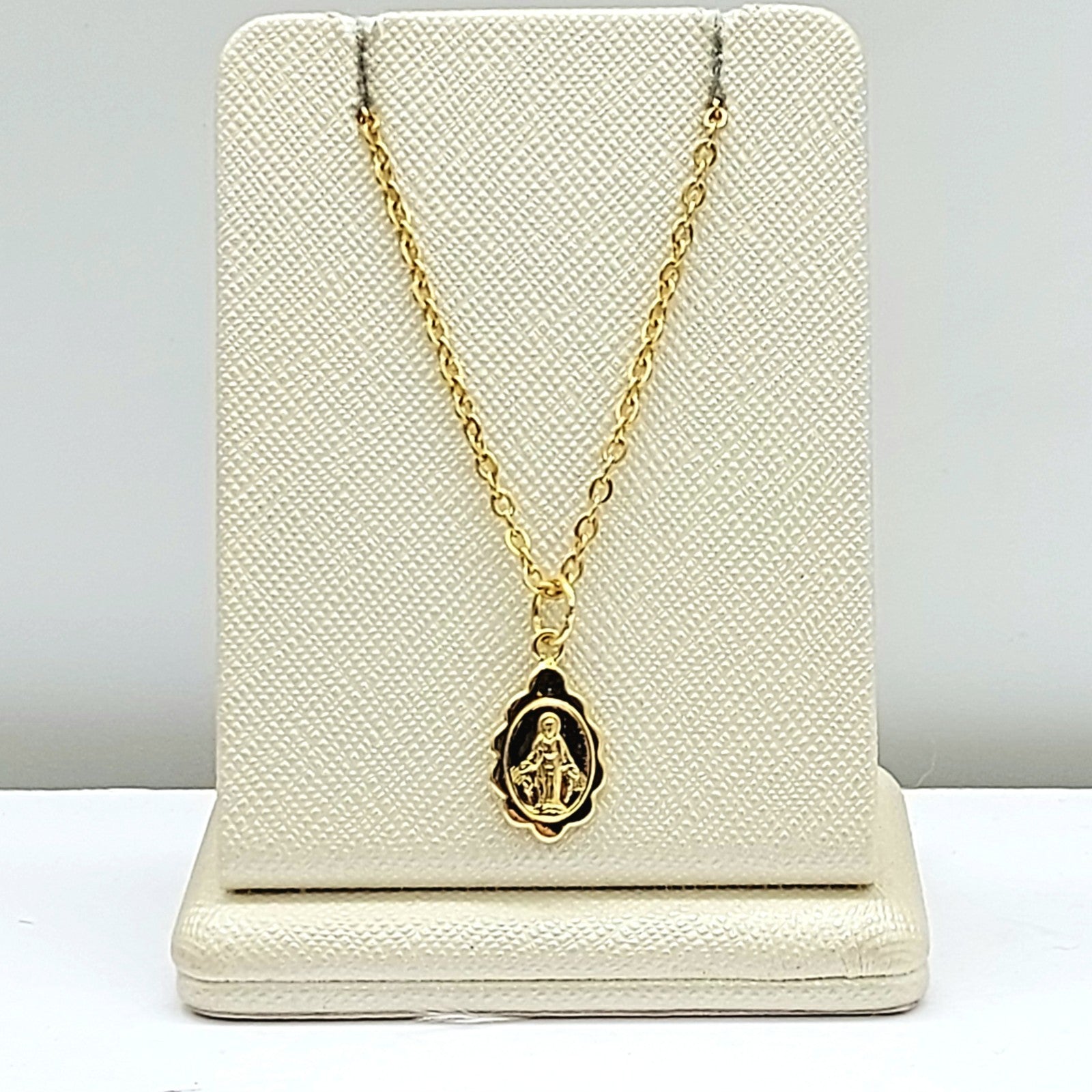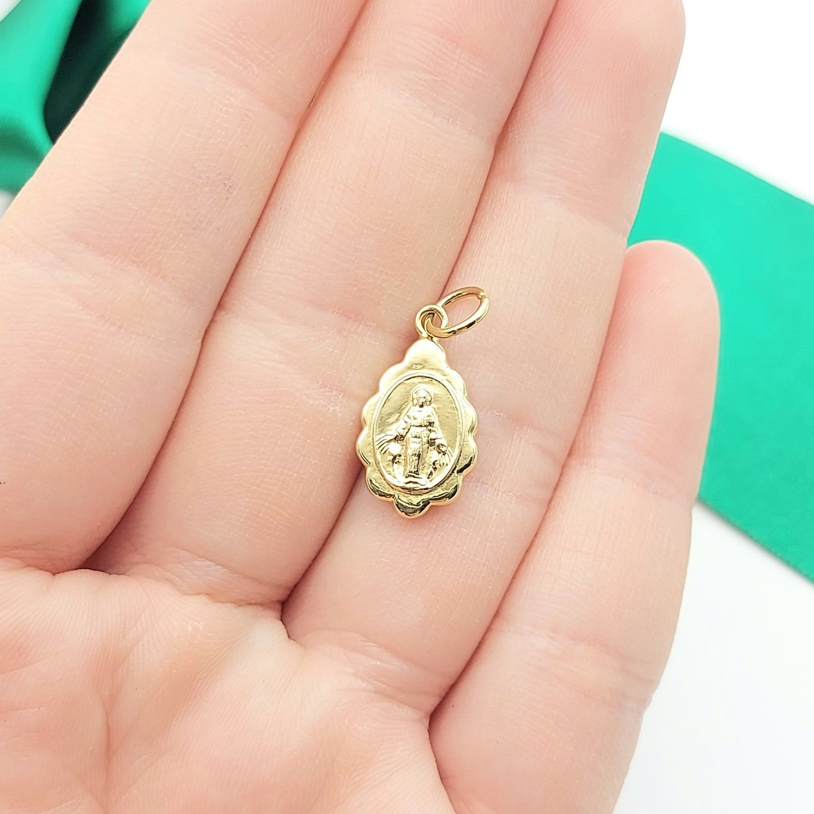 Virgin Mary Yellow Gold 18ct (750, 18K) Patterned Oval High Quality Charm