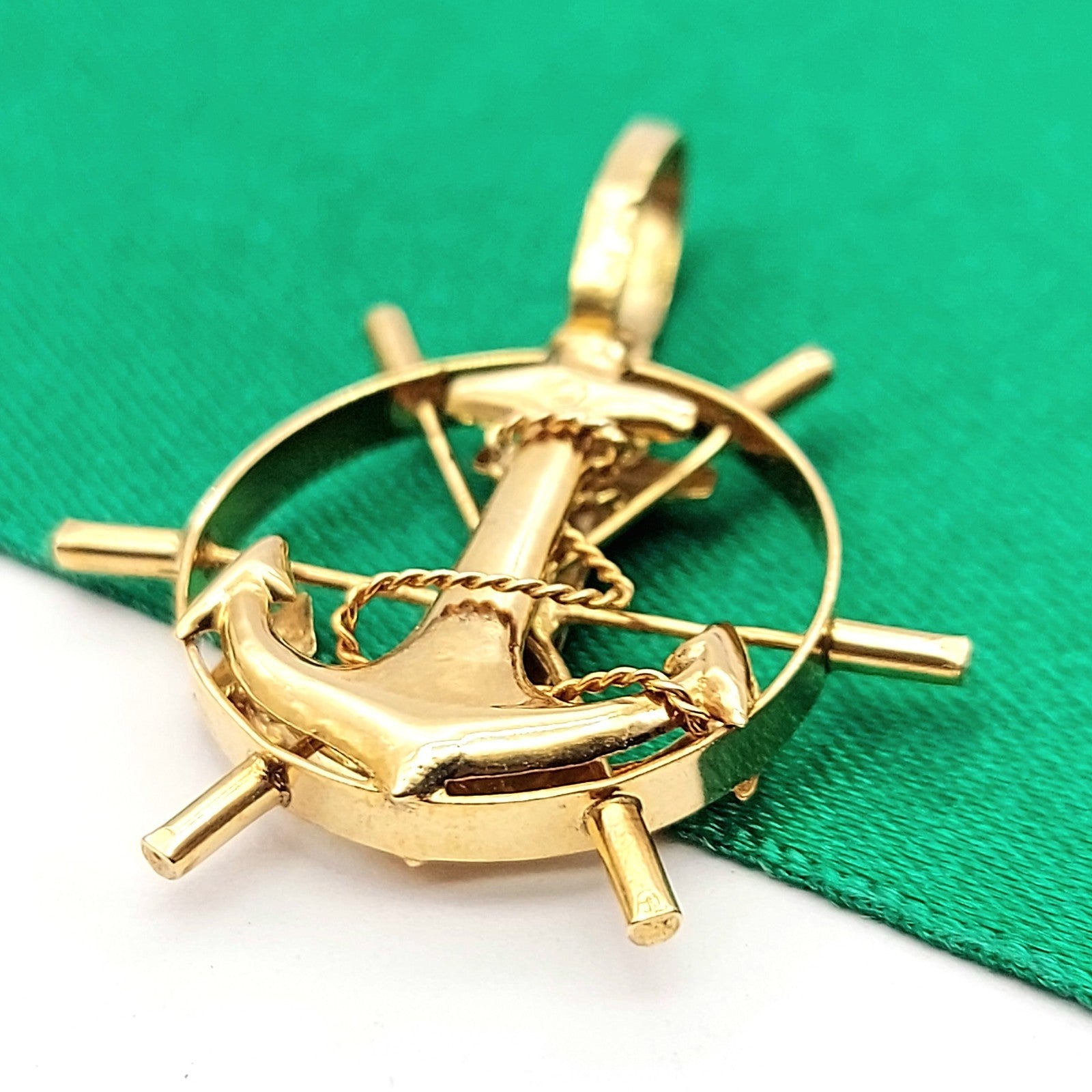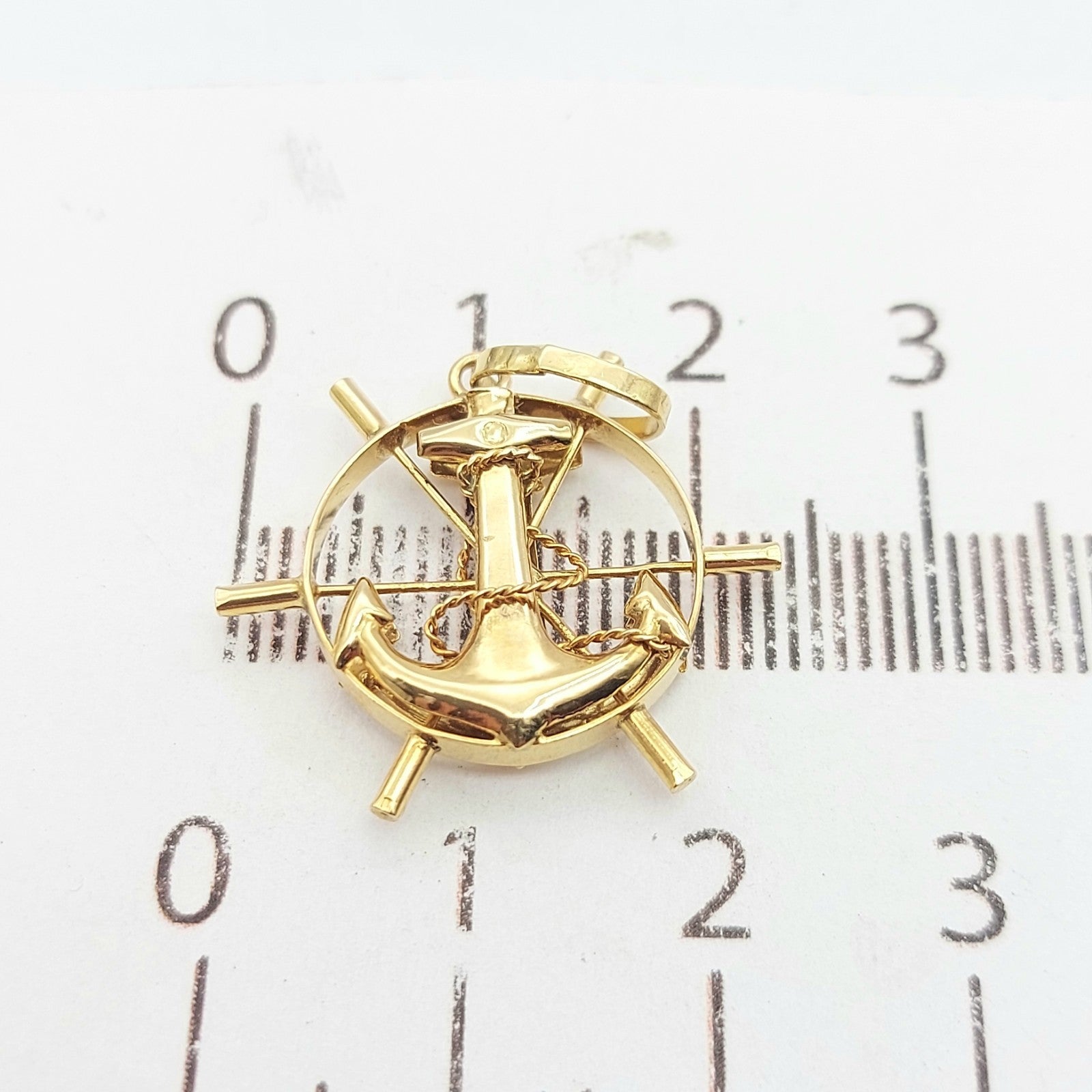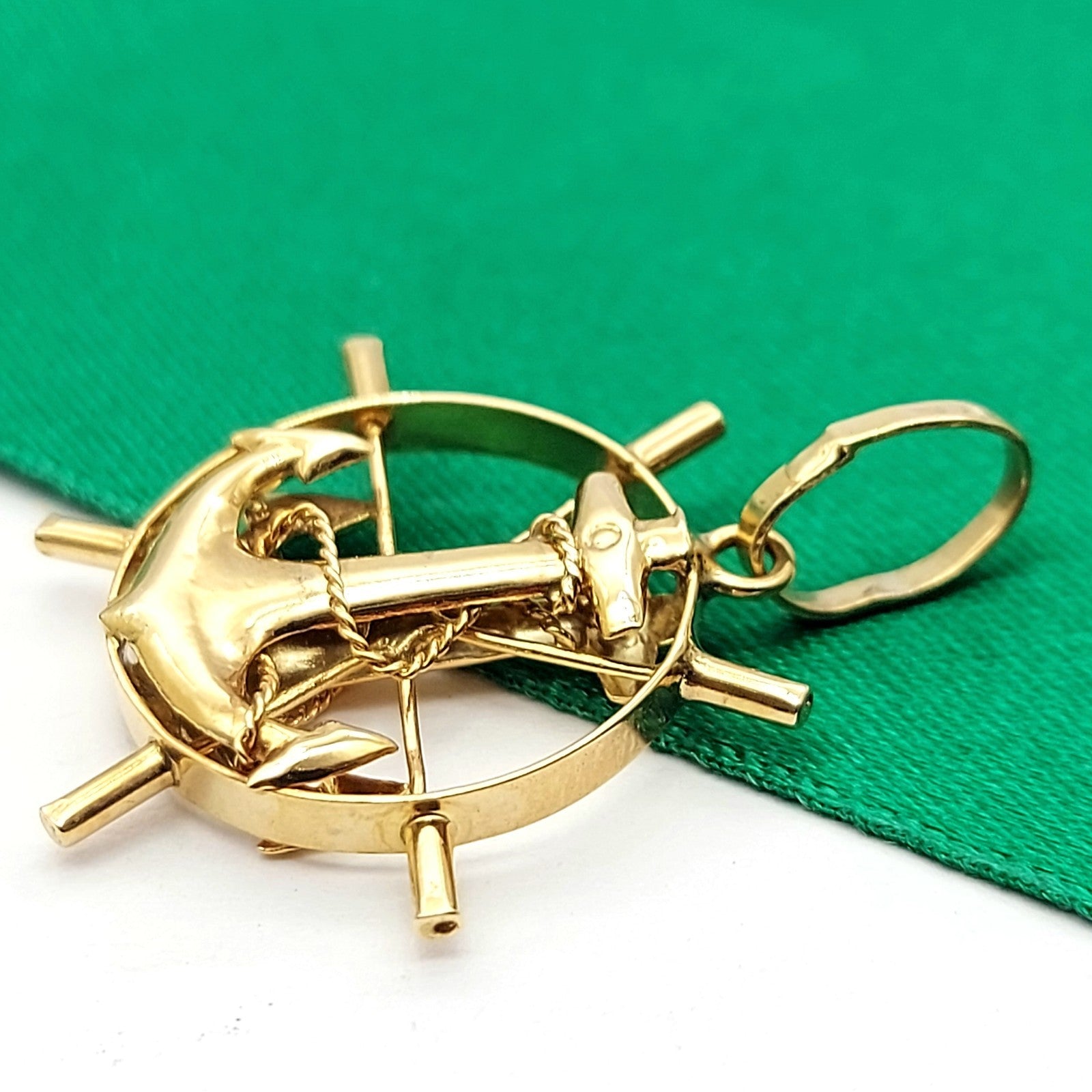 Yellow Gold 10ct (417, 10K) Rare Sailor's Wheel with Anchor in Centre Pendant