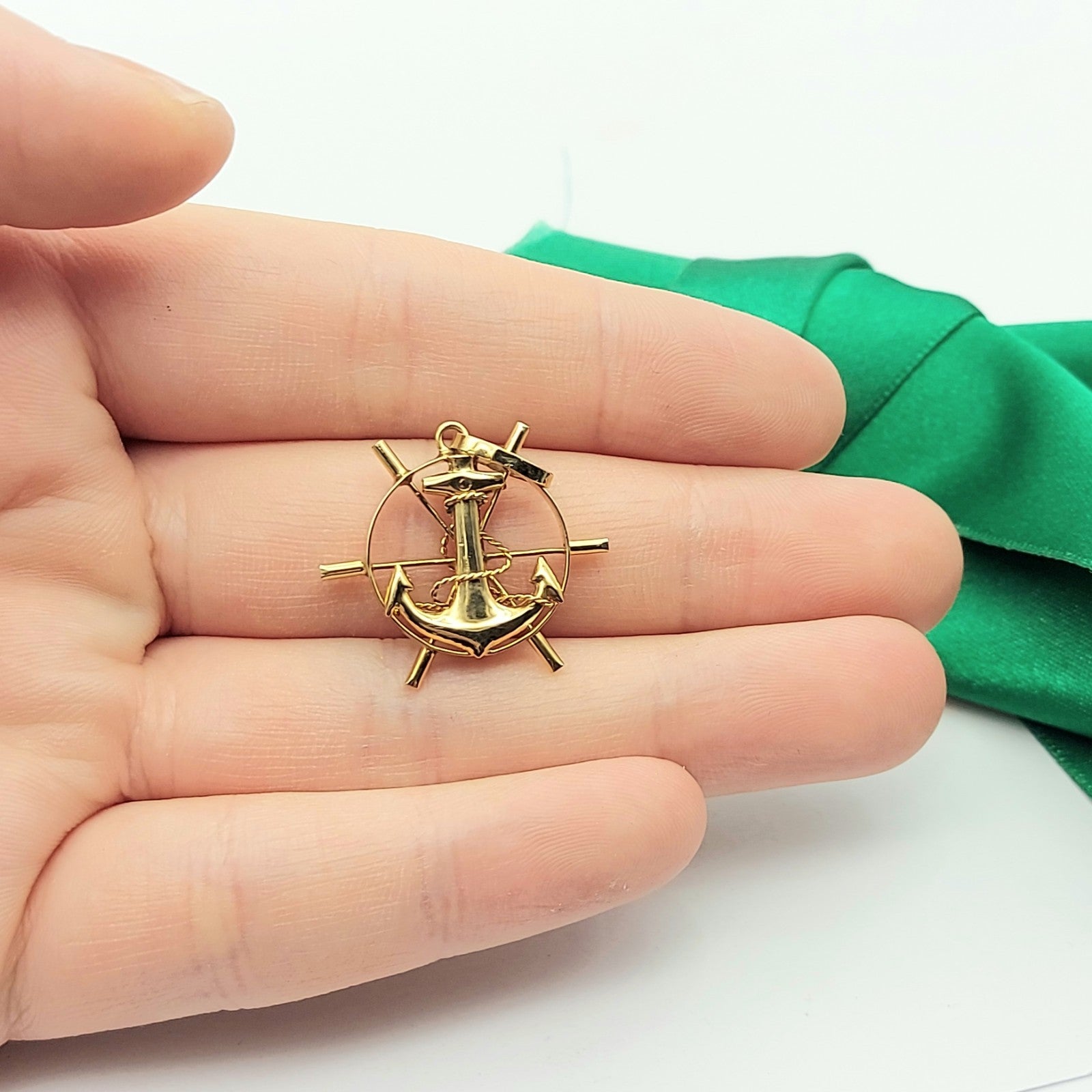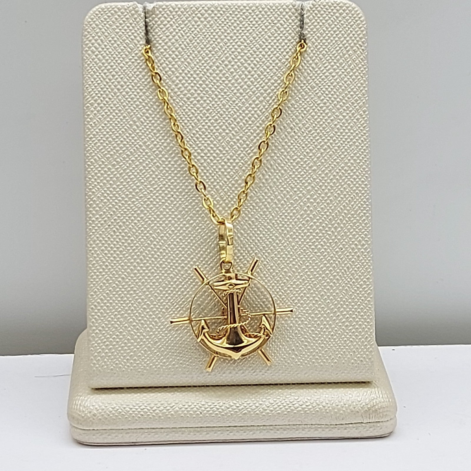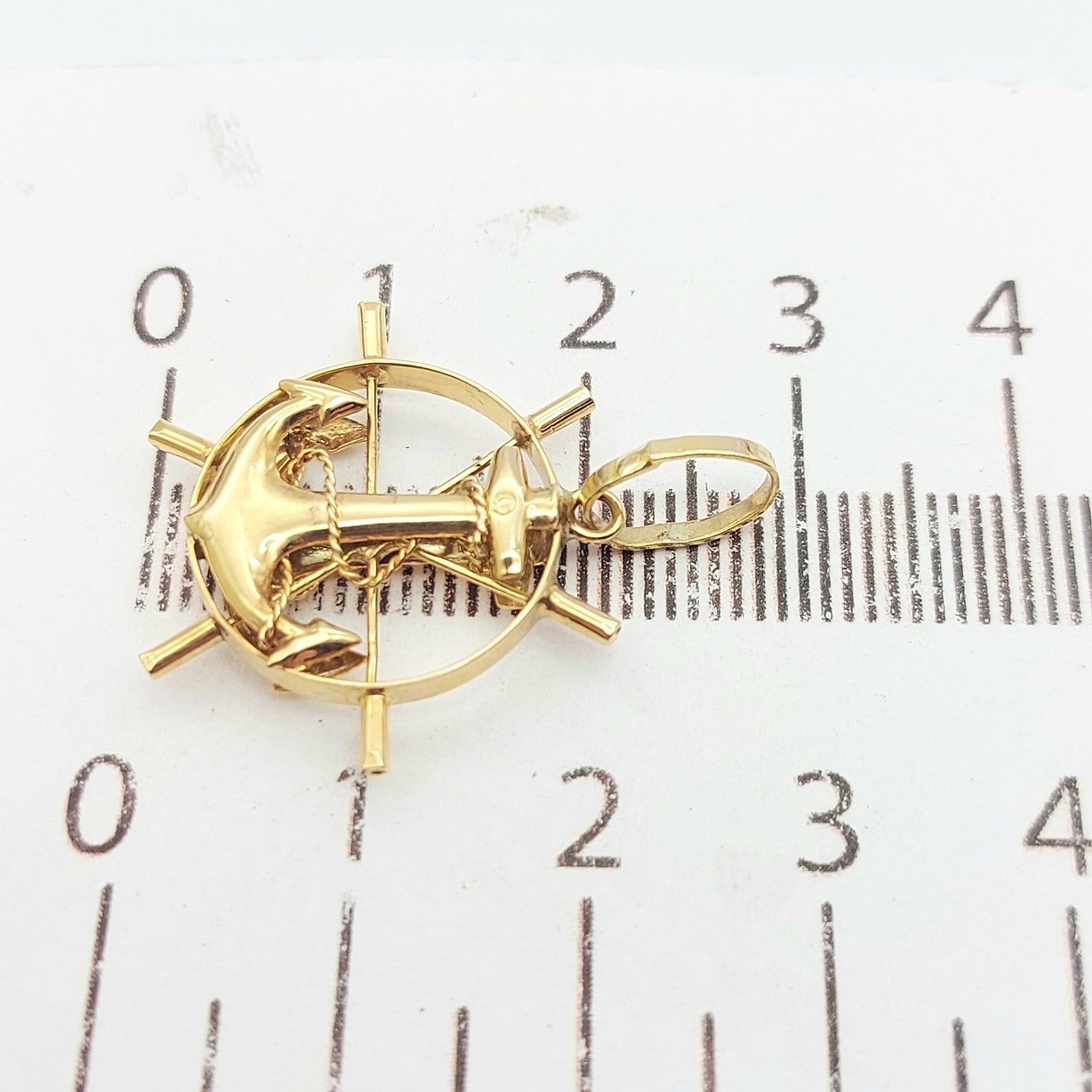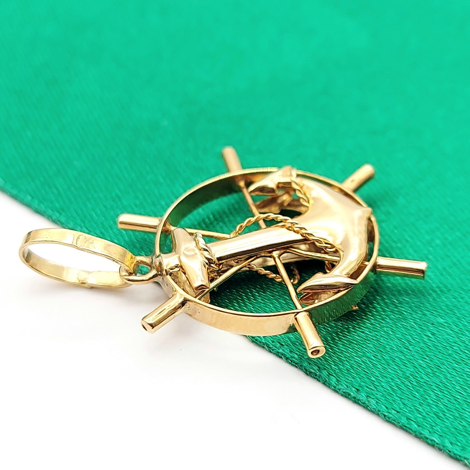Yellow Gold 10ct (417, 10K) Rare Sailor's Wheel with Anchor in Centre Pendant