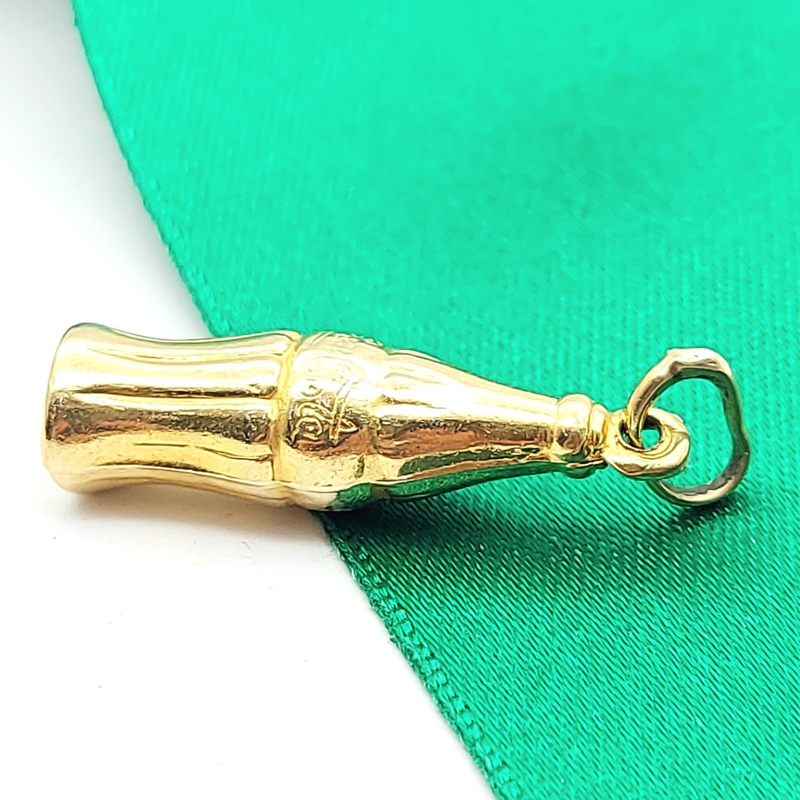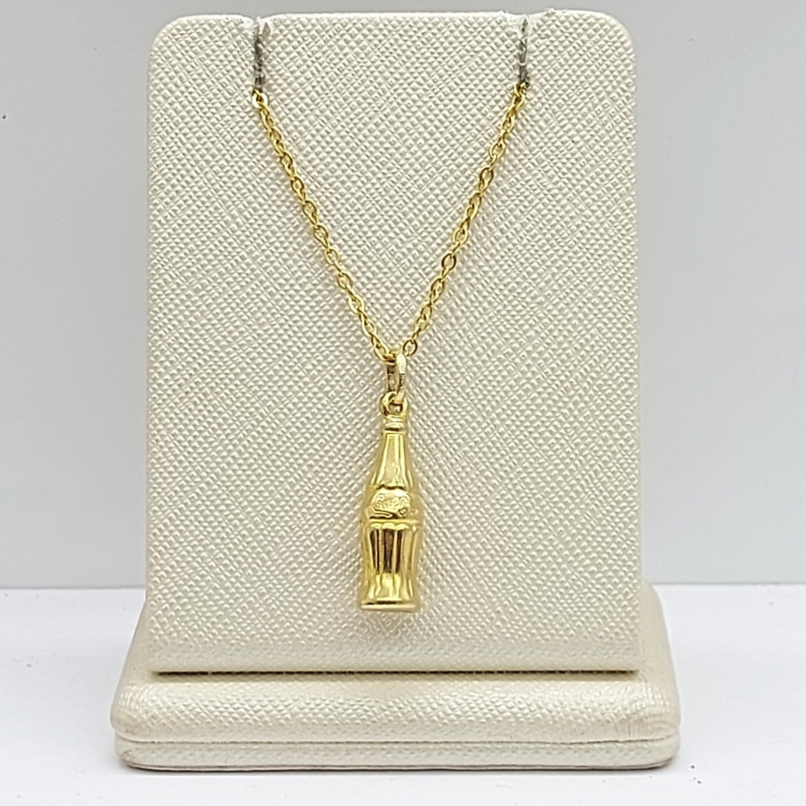 Welcome to the Gold and Diamond Exchange Store! - Sydney Based Store that has experience in the jewellery industry for over 30 years. - Specialising in: selling and buying jewellery, precious metals, coins, bullion, diamonds and watches. - Professionally assessed and tested using the most up to date equipment in our industry, including x-ray testing & diamond testers to ensure the quality and purity of our products. - Most of our items are brand new, from defunct jewellery stores. We offer wholesale and below pricing. Yellow Gold Coca Cola Bottle 9ct (375,9k) Unique Pendant This piece has been professionally polished and cleaned to look and function as new and is in immaculate condition. A very rare and well-made good condition. This pendant is hallmarked '375' indicting the purity of the gold. Pendant for sale only, chain not included!