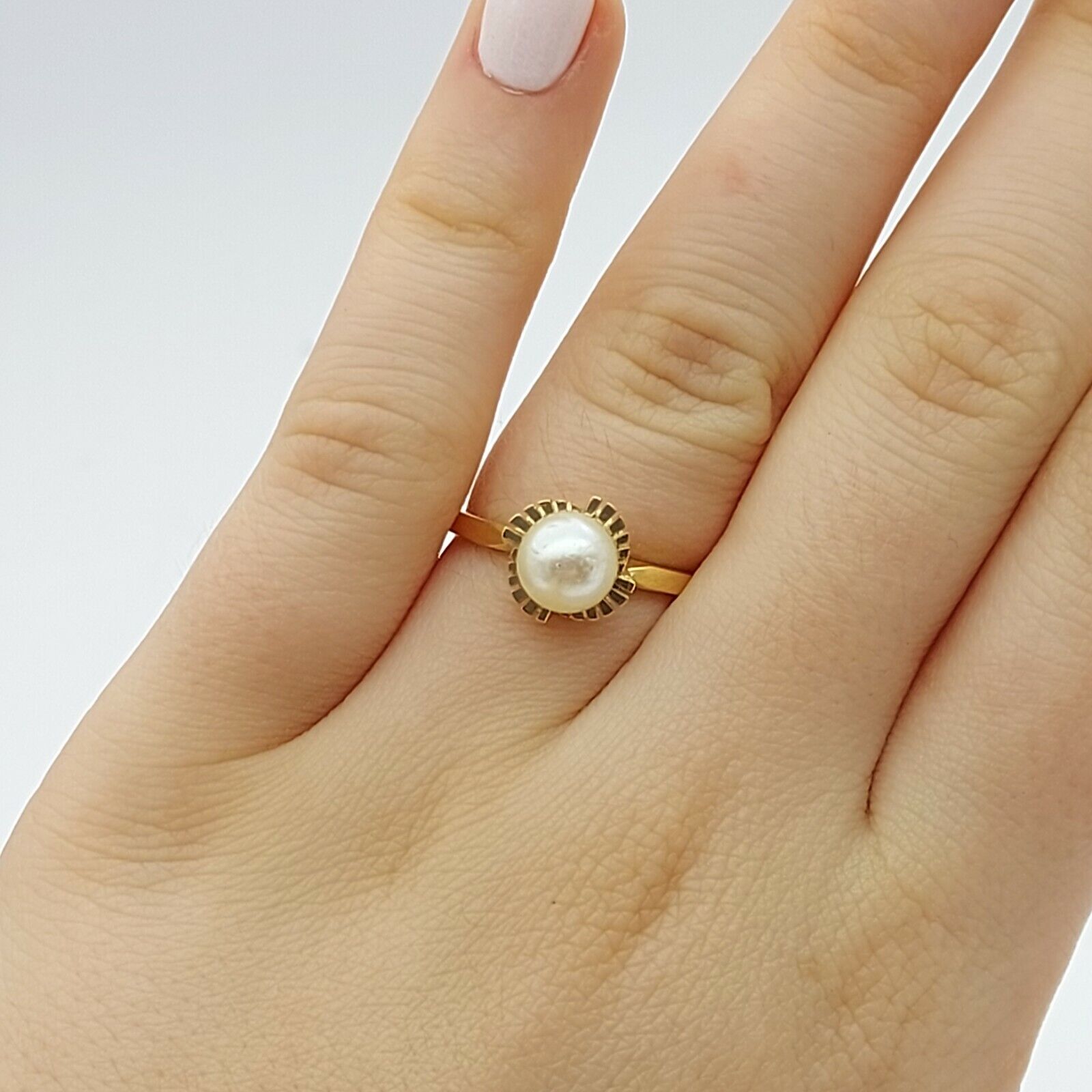 Ladies Pearl Ring 9ct (375, 9K) Yellow Gold Natural Pearl Dress Ring