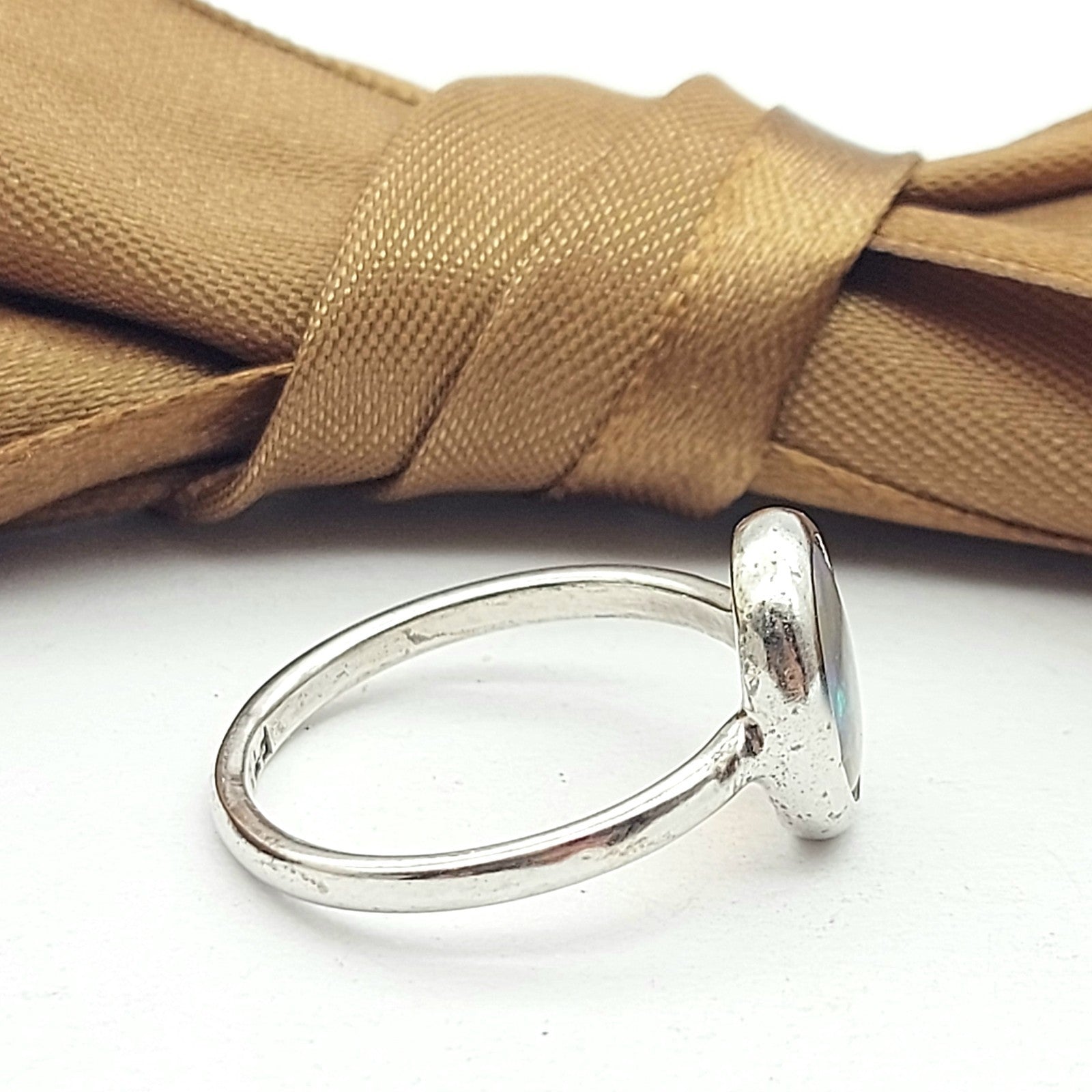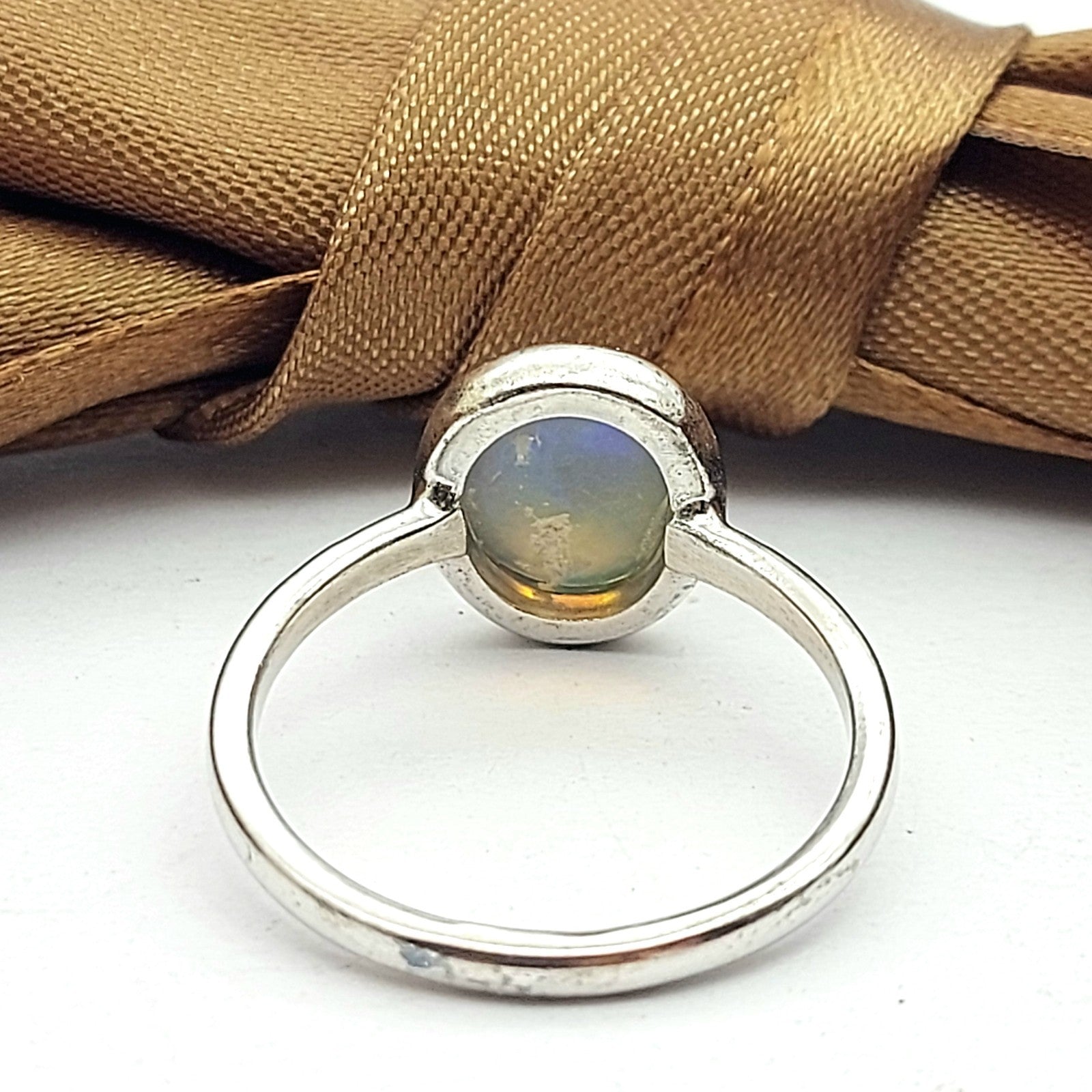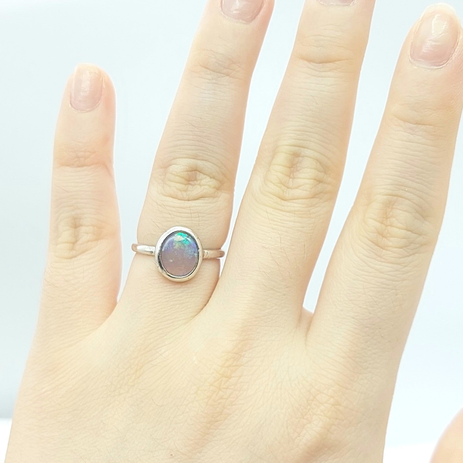 Ladies Sterling Silver (925) Solitaire Natural Flat Oval Opal Ring