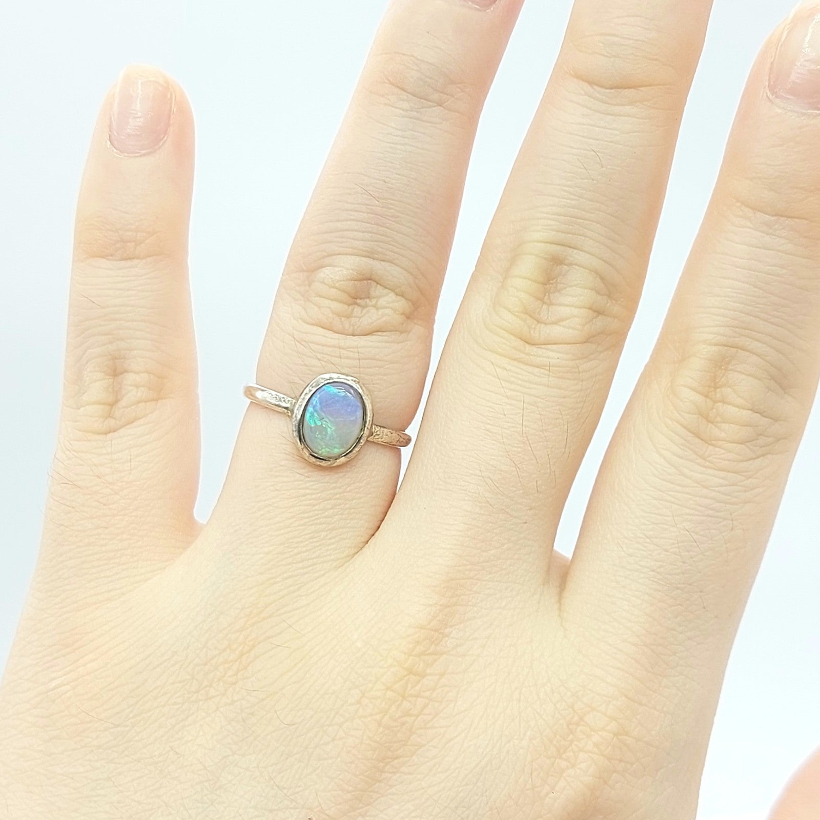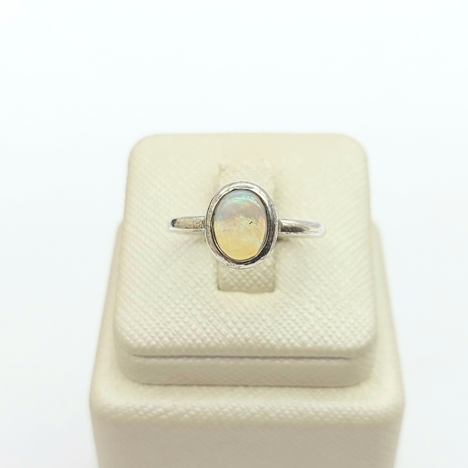 Ladies Sterling Silver (925) Solitaire Natural Small Oval Opal Ring