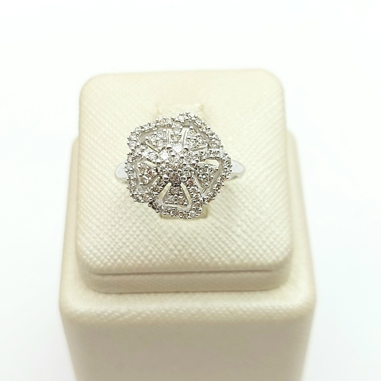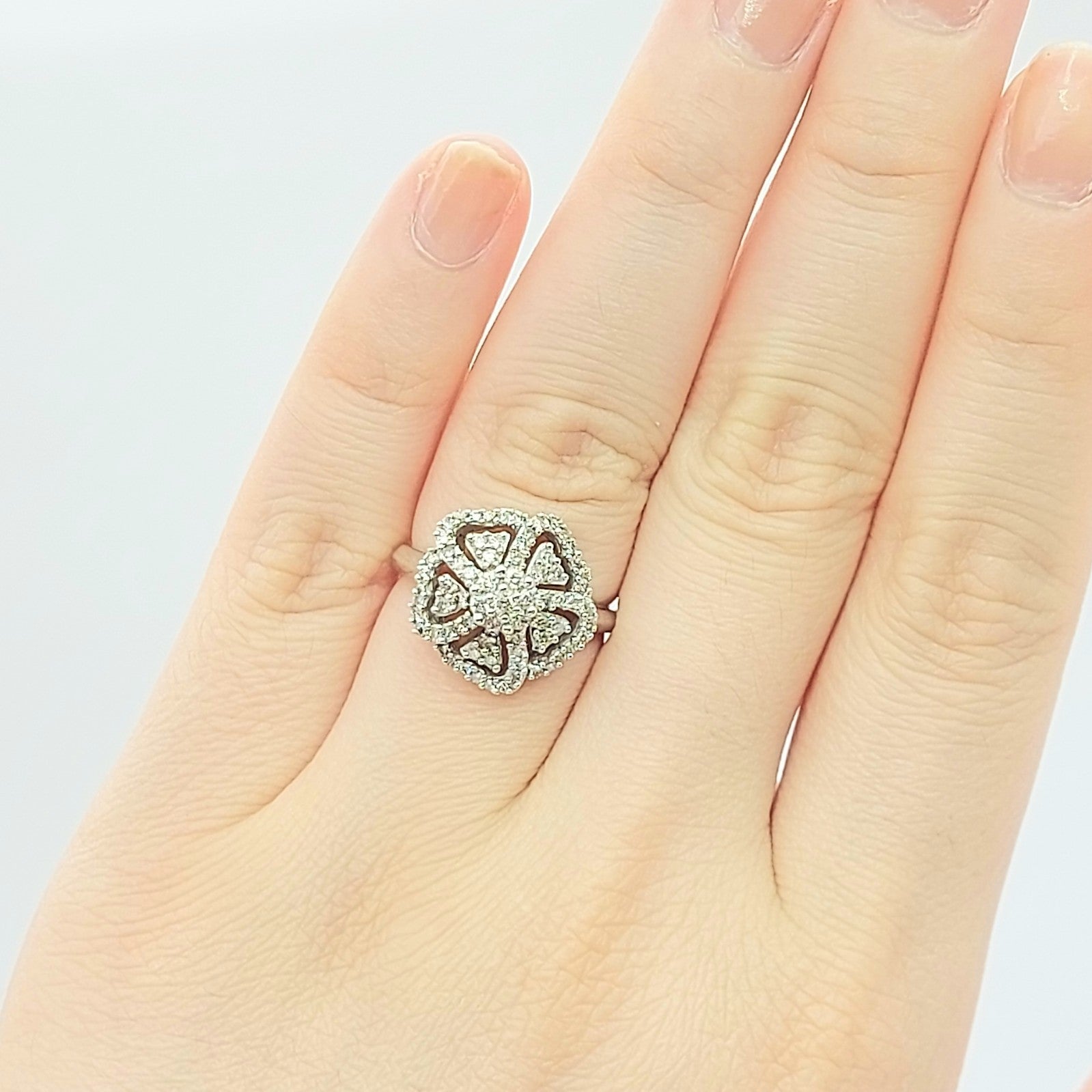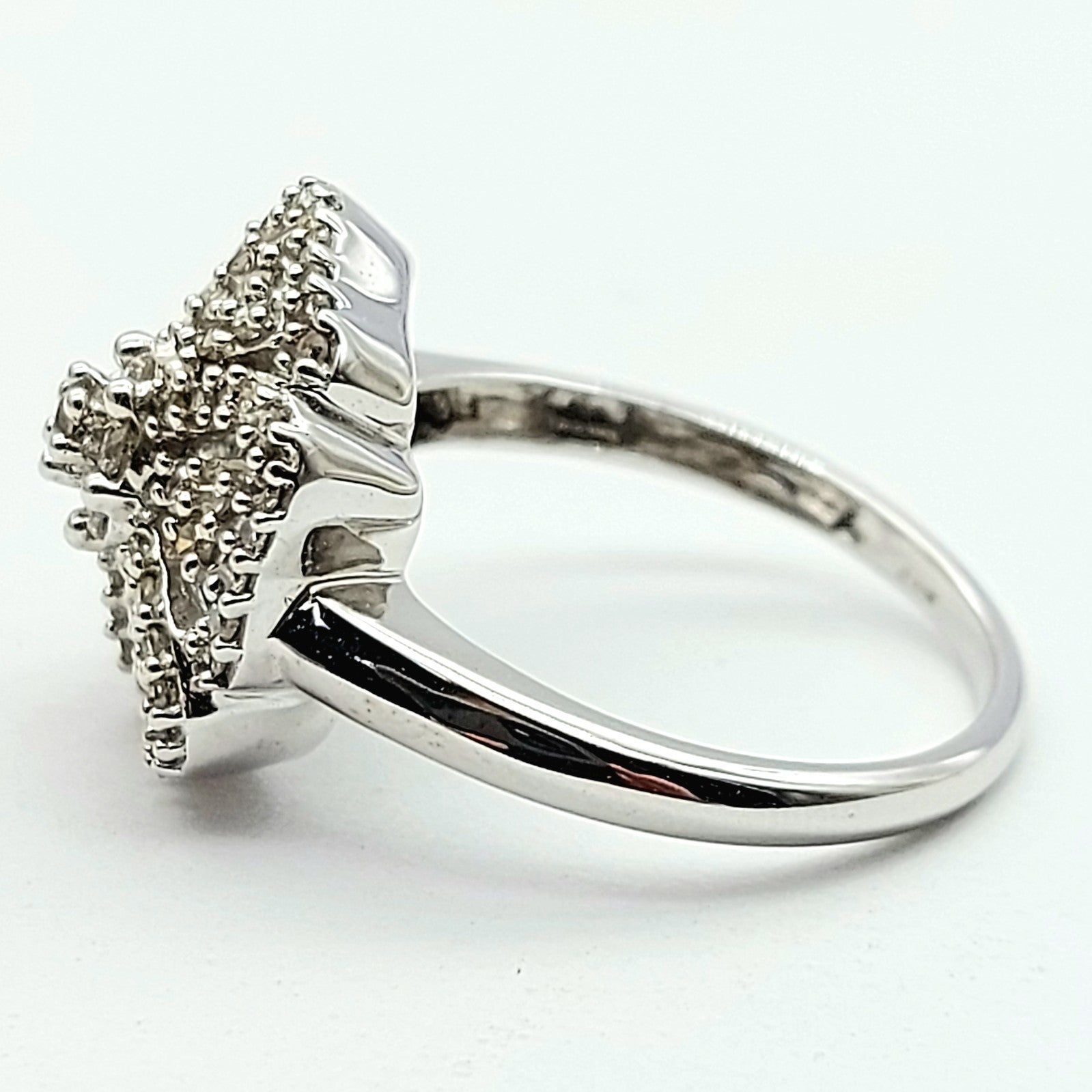 Ladies White Gold 10ct (417, 10K) Natural 0.54ct Diamonds Windmill Flower Ring