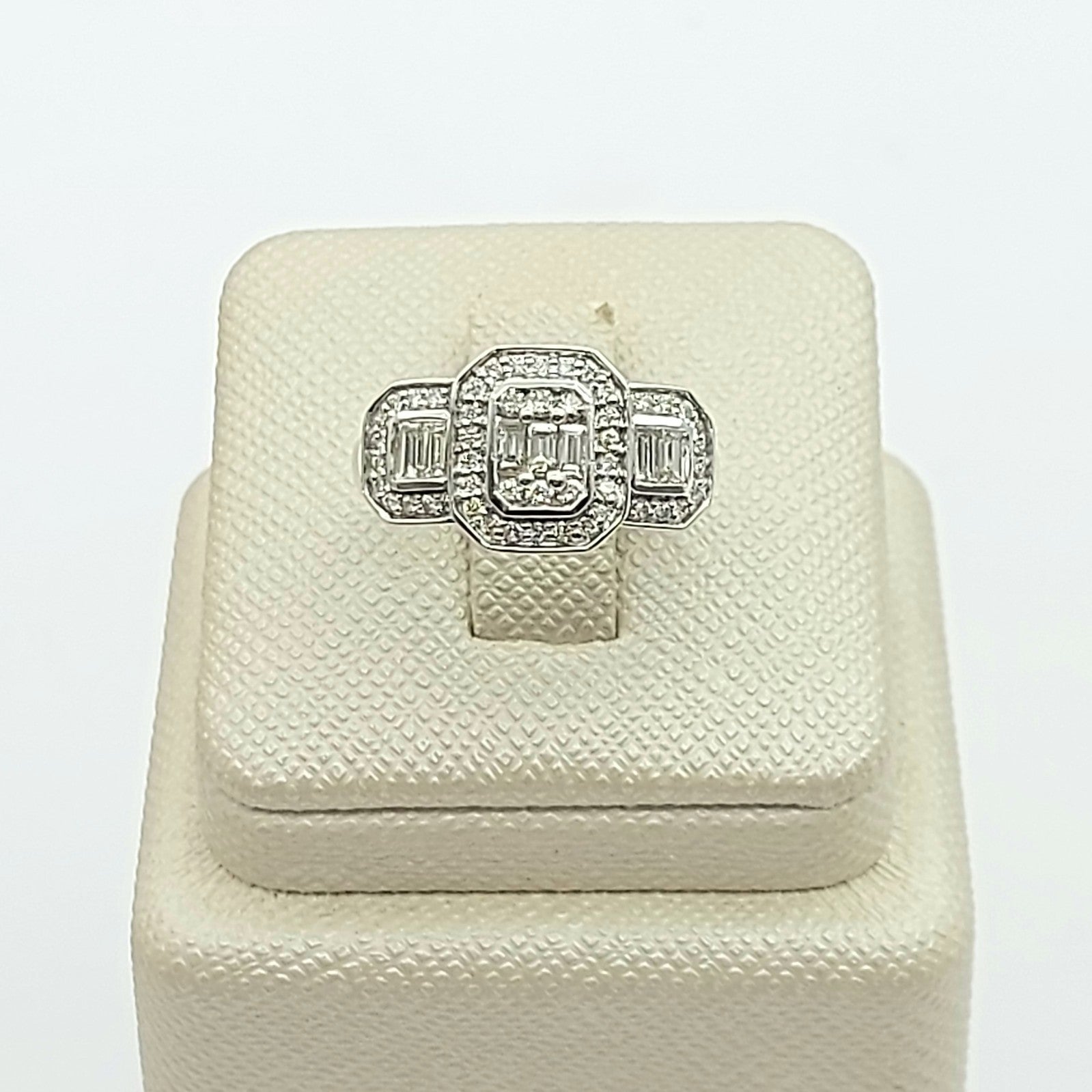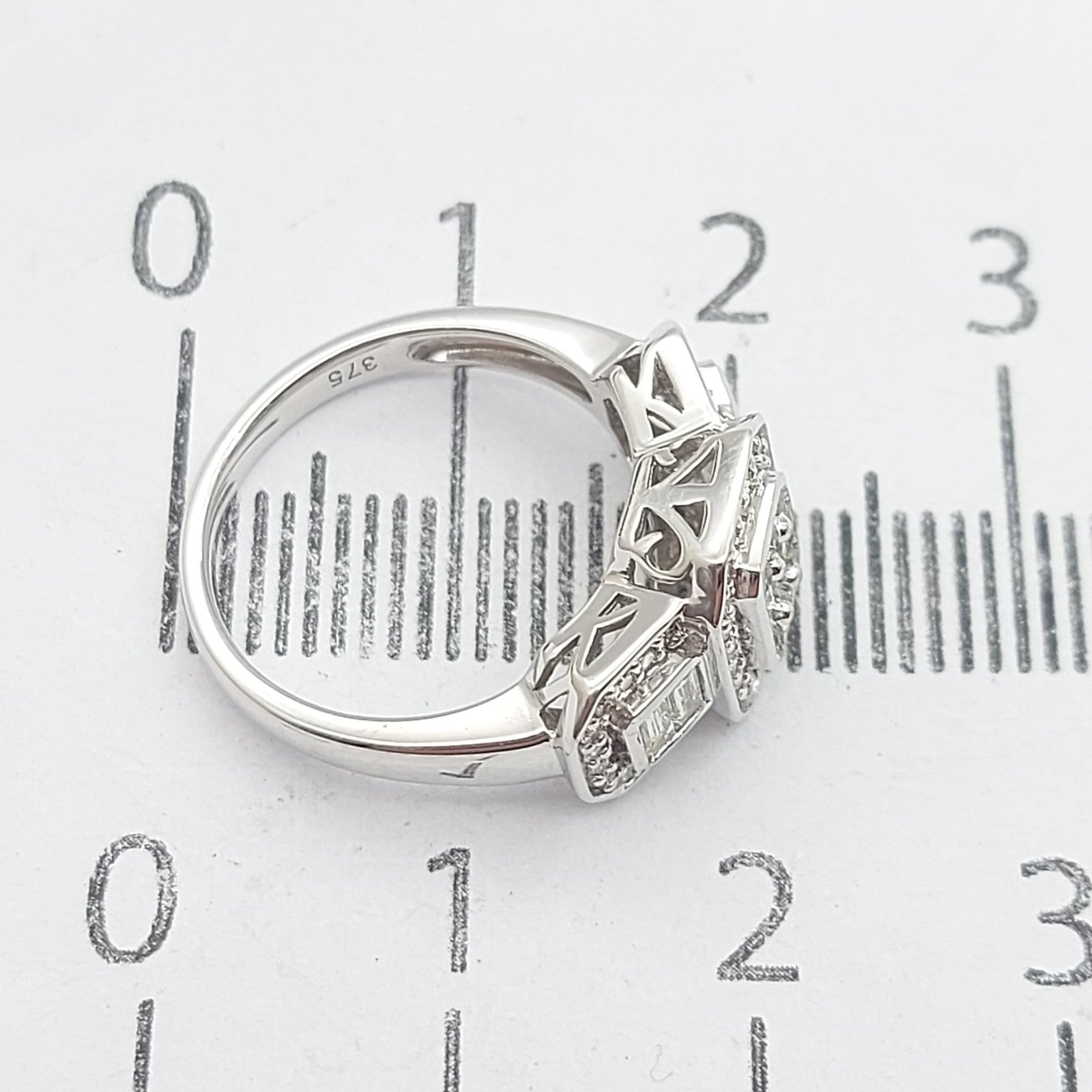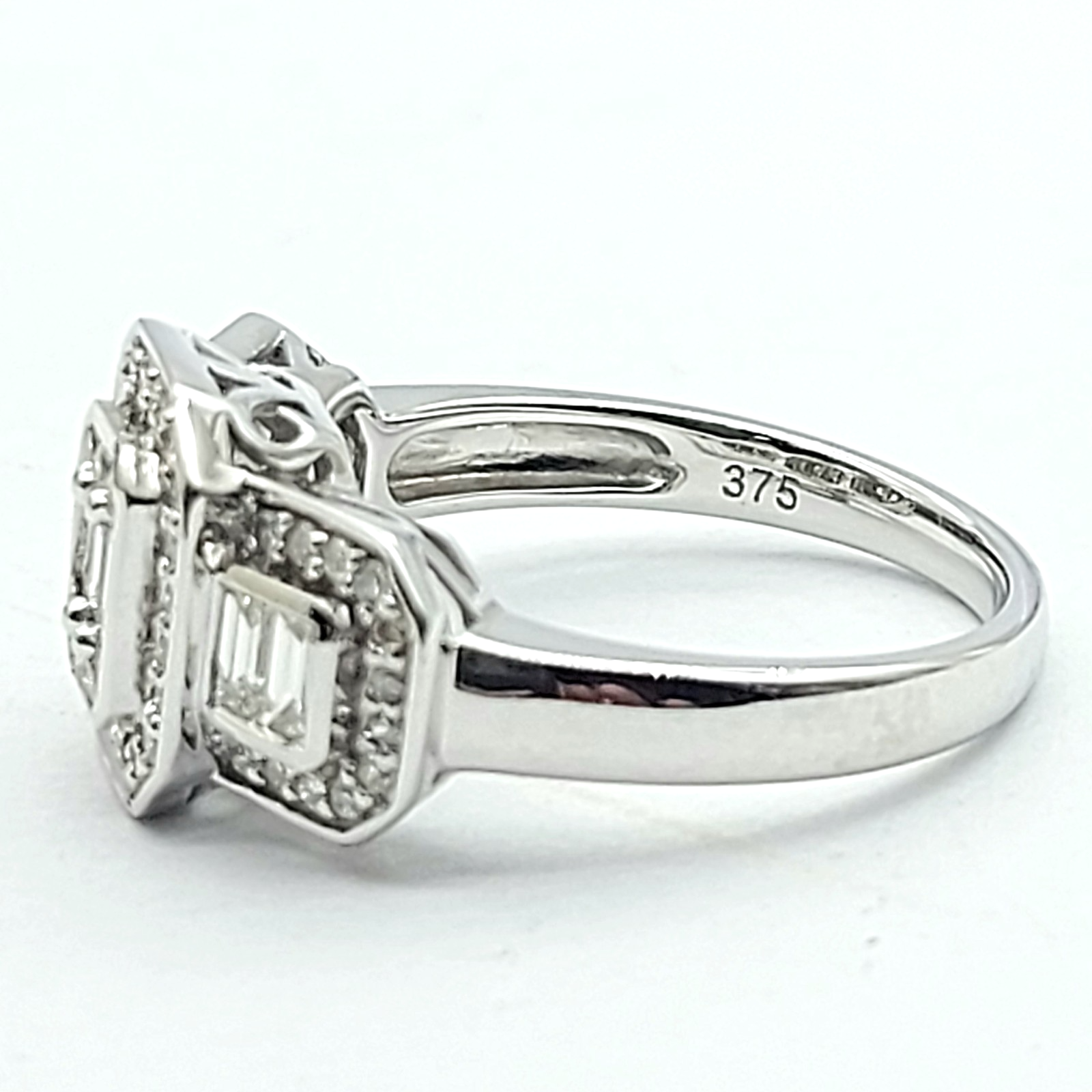 Ladies White Gold 9ct (375, 9K) Natural Cluster Diamonds Baguette Trilogy Ring